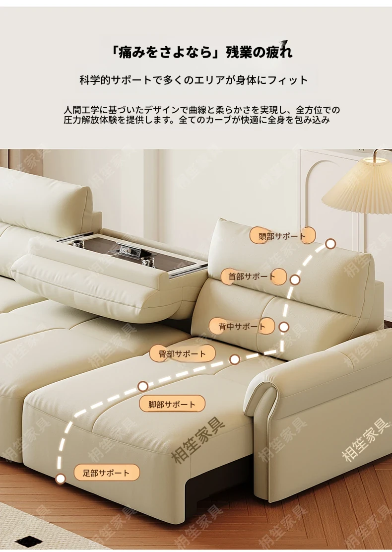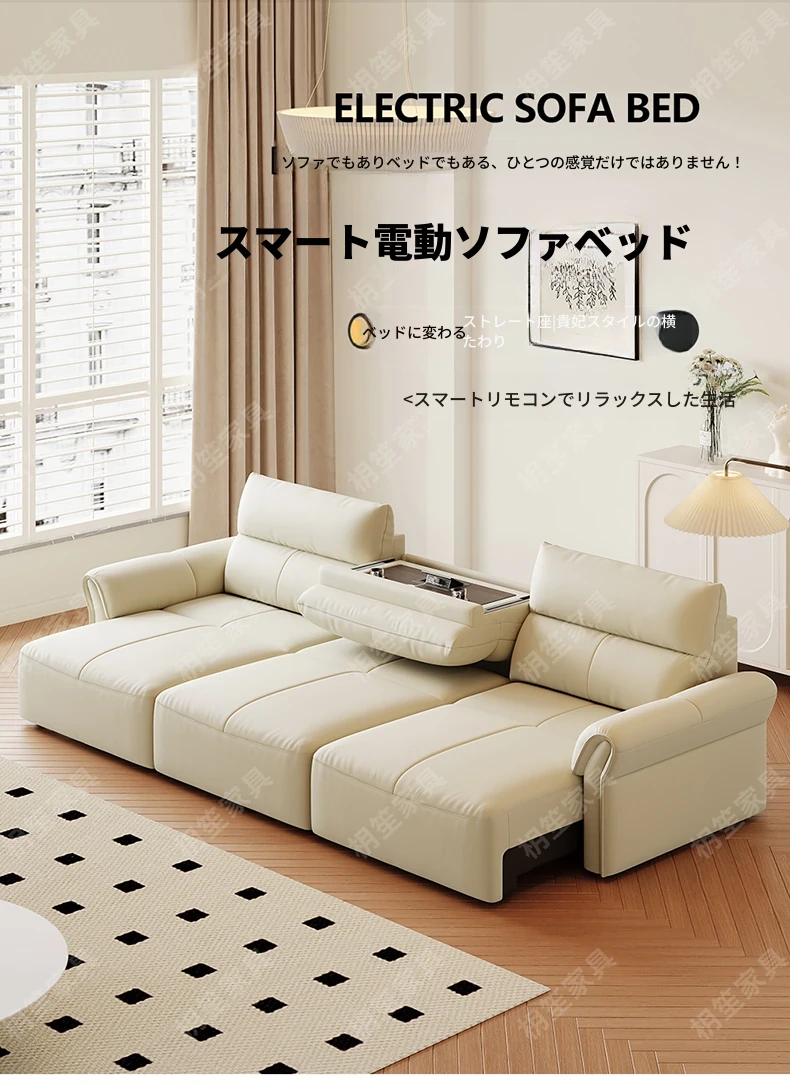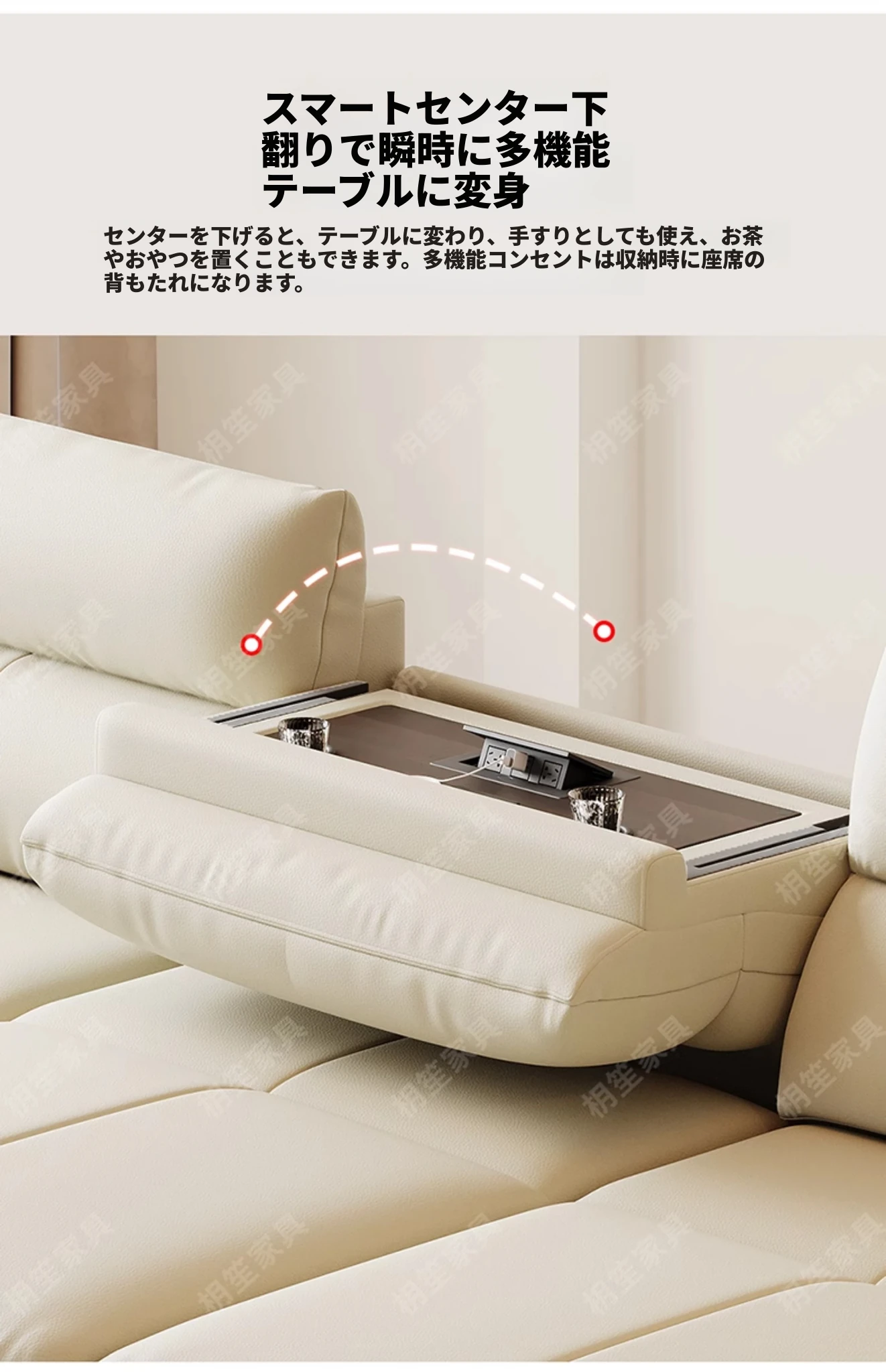 2.6m三電動位【接触面-加厚摔纹頭層牛皮/中位翻蓋茶几】