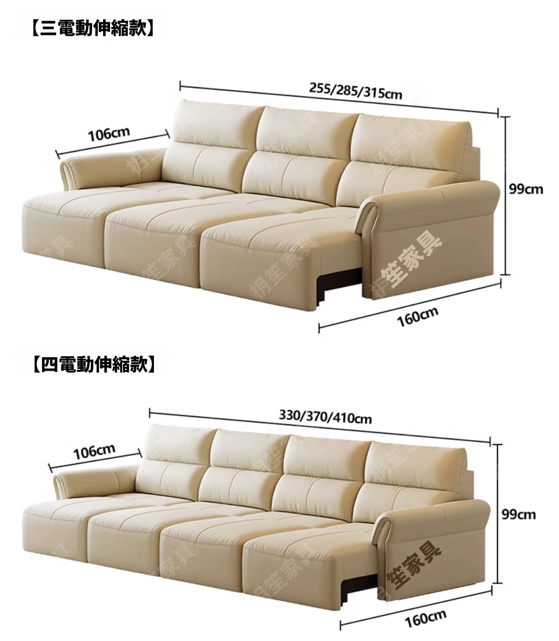 3.3m四電動位【全真皮-加厚摔纹頭層牛皮/電動伸縮款】