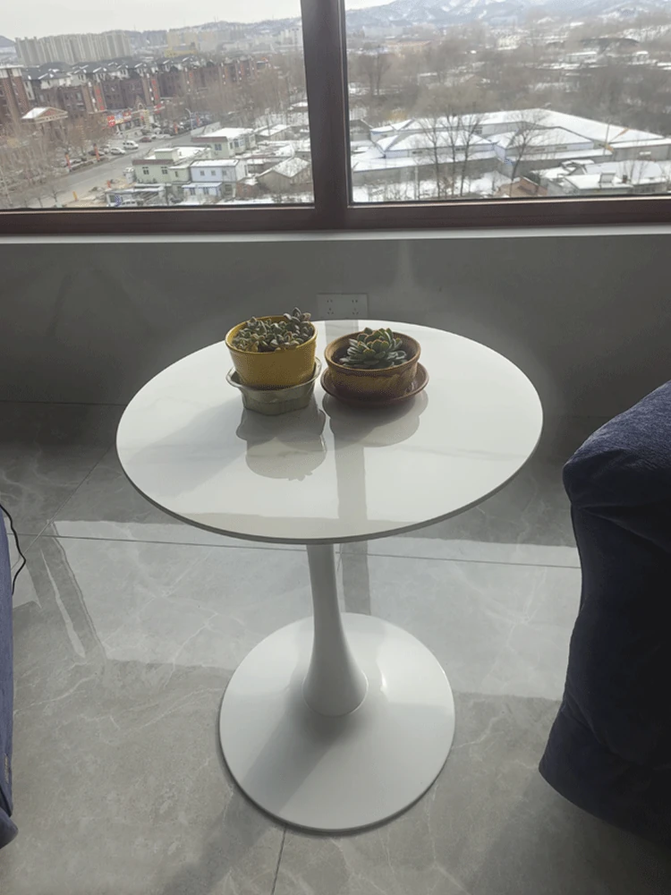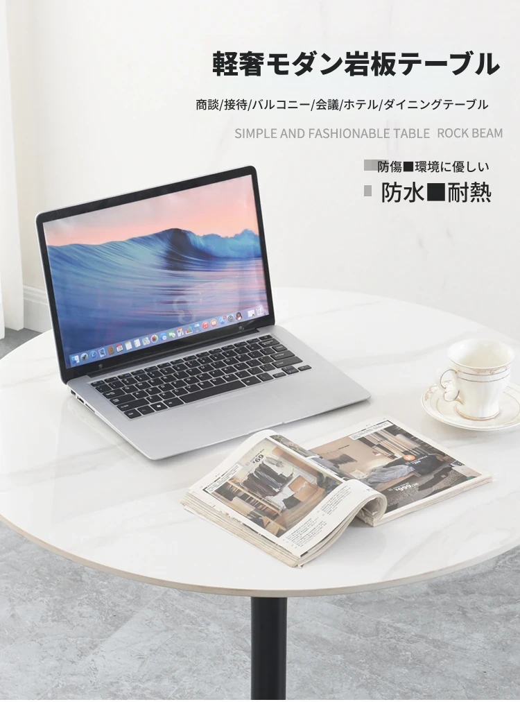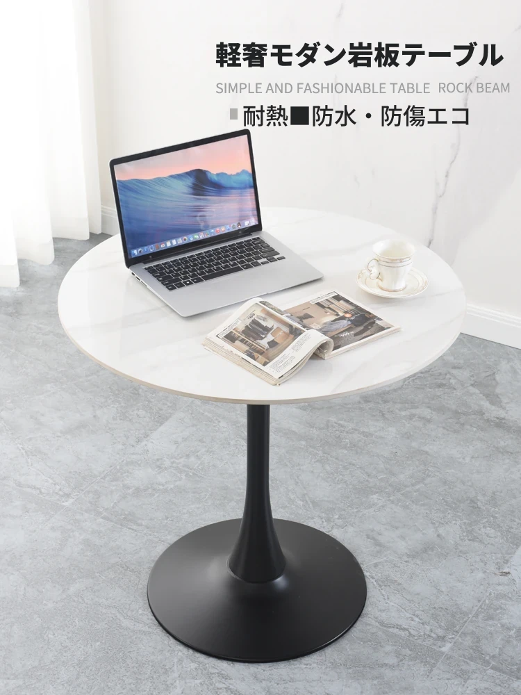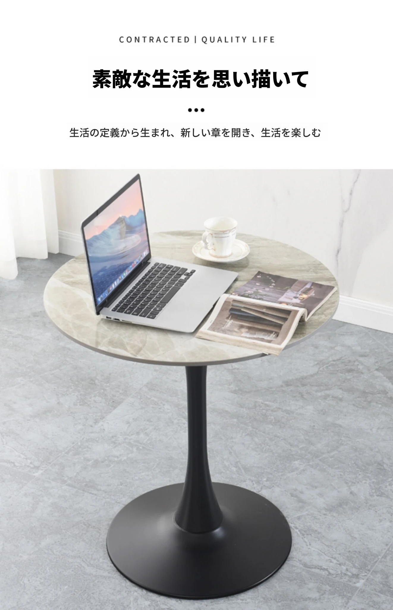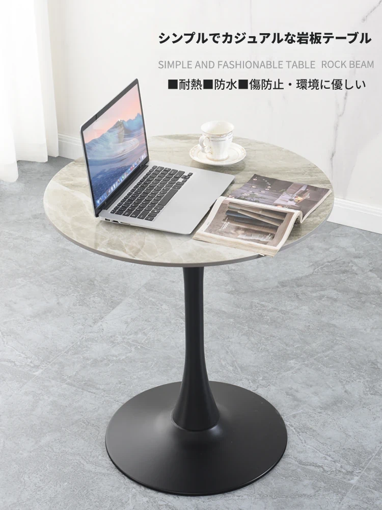 シンプルでスタイリッシュな小型ラウンドテーブル - コーヒーショップやカフェ、民宿に最適!リラックスしたひとときを提供する、家庭用バルコニーダイニングテーブル。
