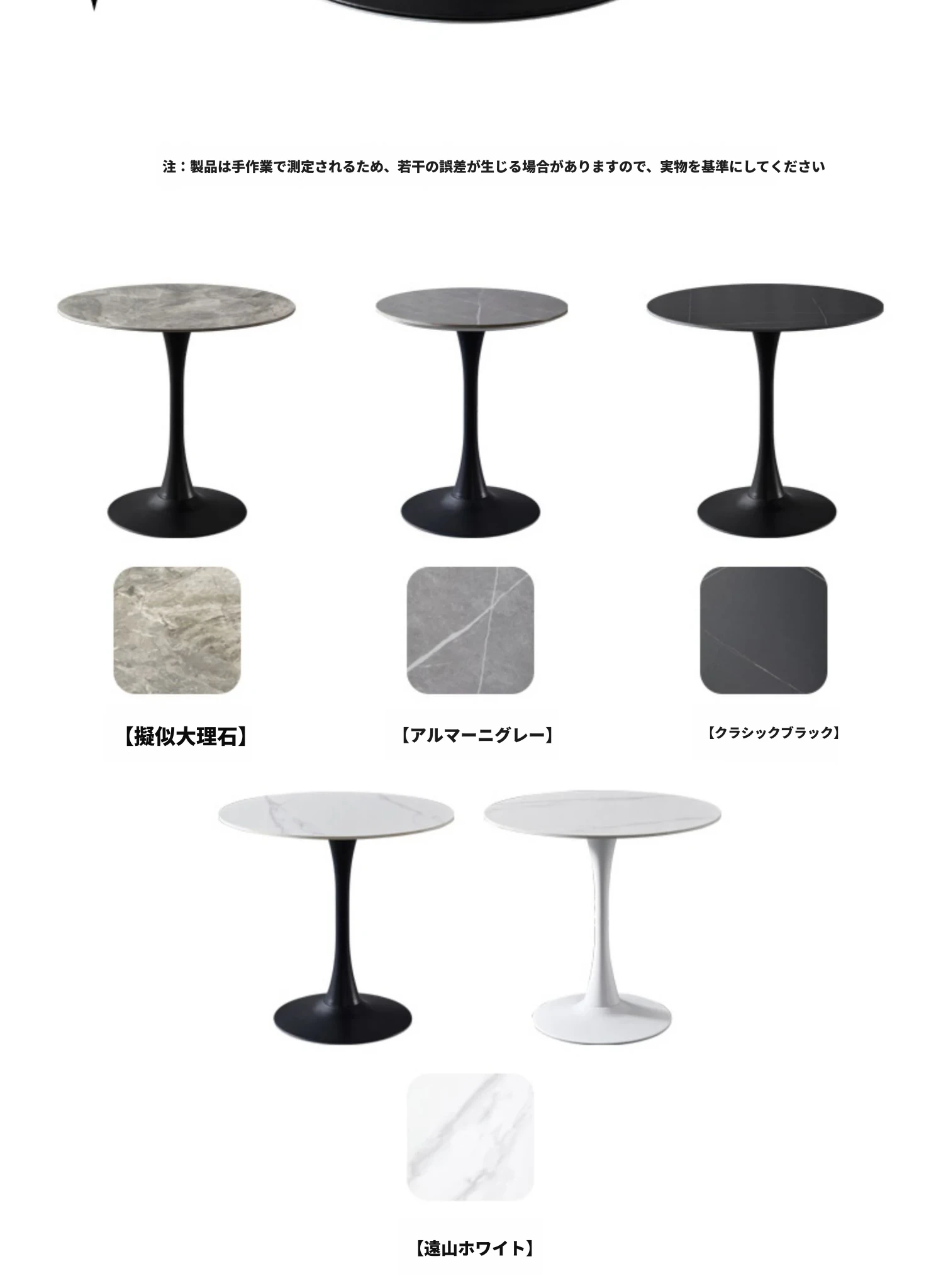 スノーマウンテンホワイトマットブラックレッグ-60直径74高さ 【ホワイトレッグの注文時に備考が必要】