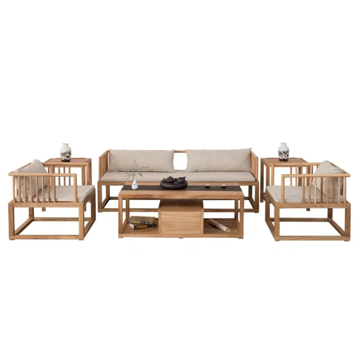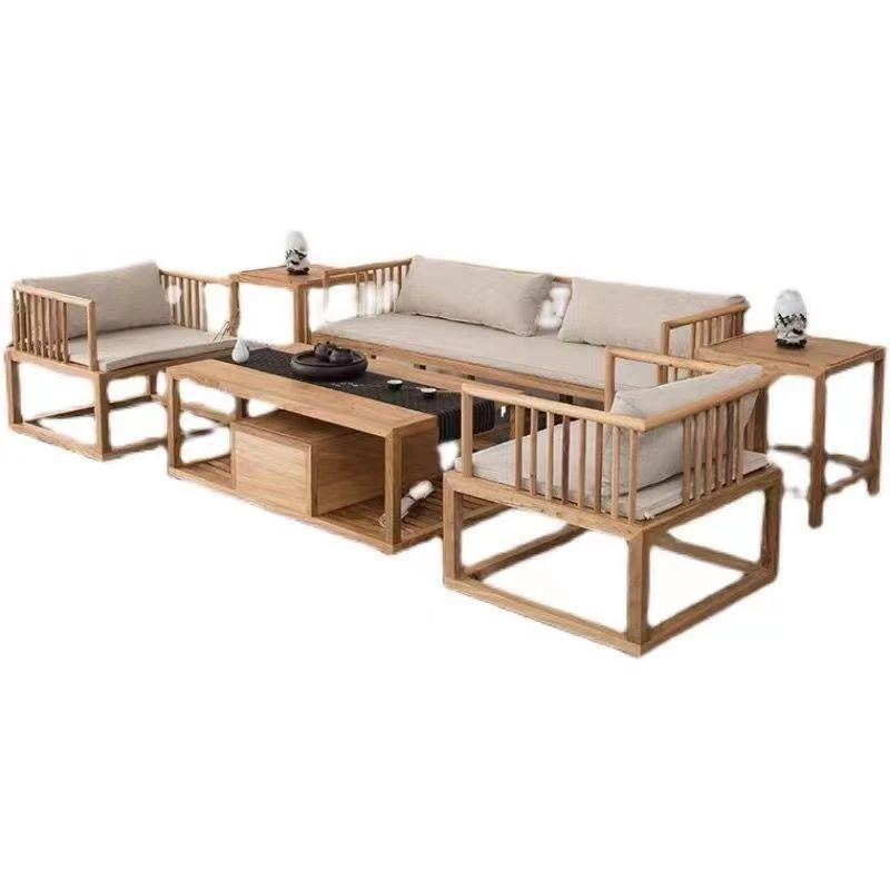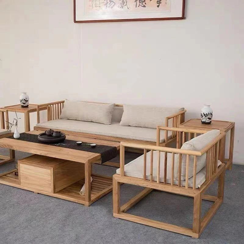 新中式スタイルの無垢材ソファセット - 老榆木使用、シンプルでモダンな禅の雰囲気を持つリビングルーム用、ナチュラルウッドカラーの一人掛けソファ。心を癒す優雅な空間を演出します!