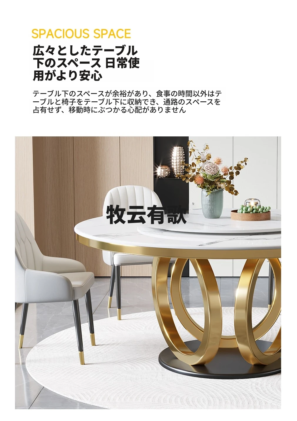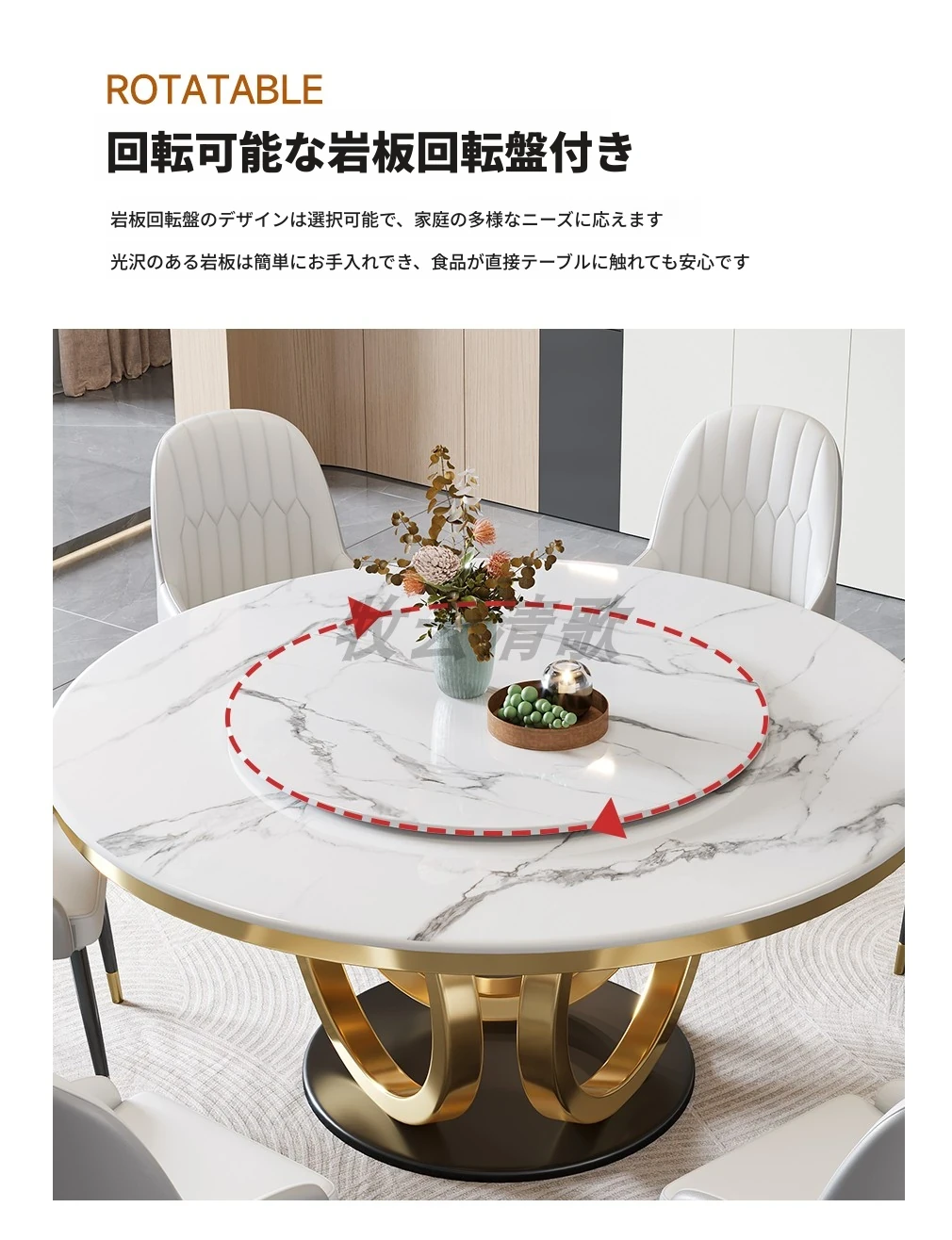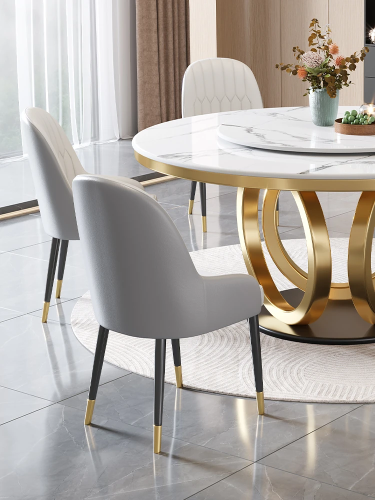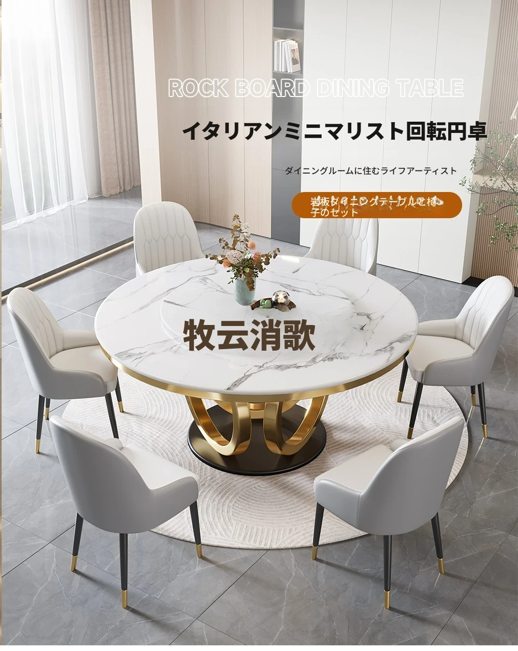 イタリアンミニマリズムのスレートダイニングテーブル&チェアセット - 新登場!モダンでシンプルなデザイン、コンパクトなリビングに最適な回転式ラウンドテーブル。おしゃれな空間を演出し、家族や友人との食事を楽しむのにぴったり!