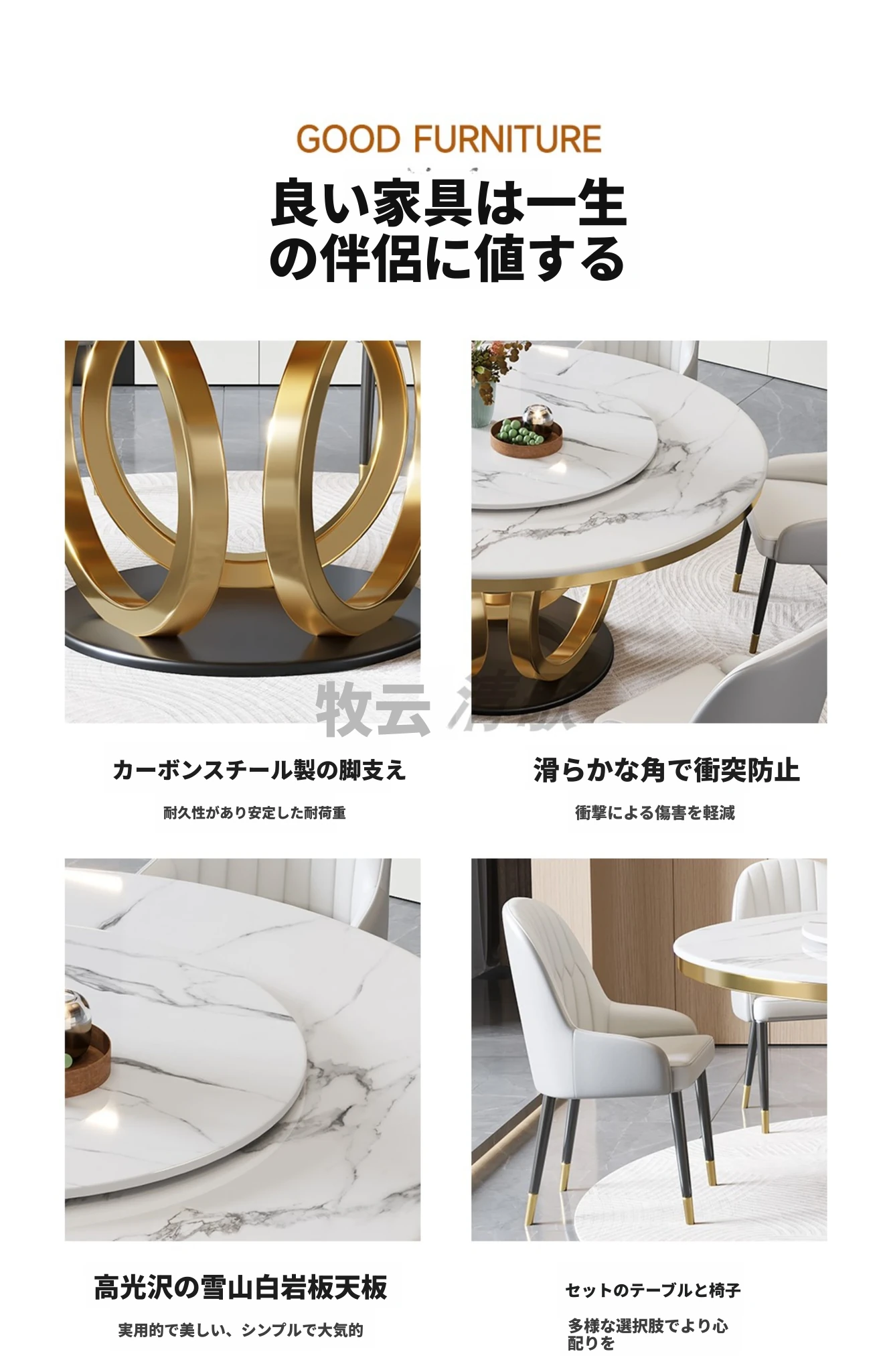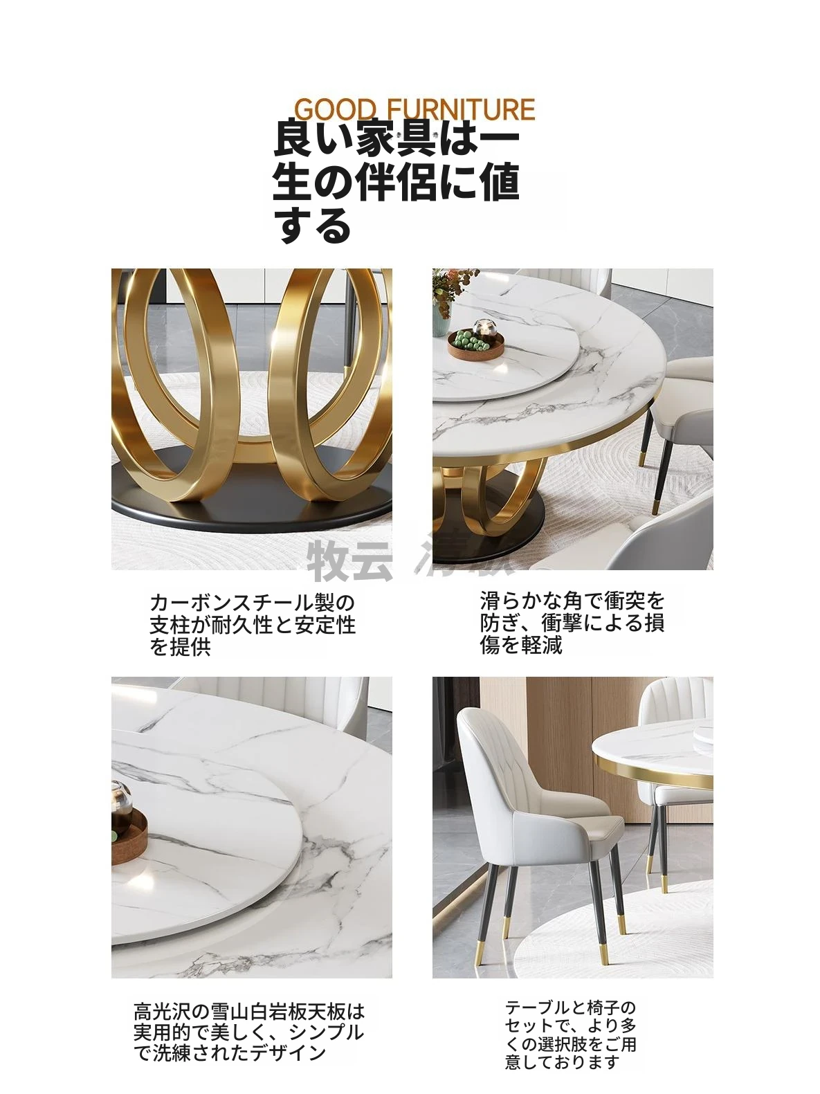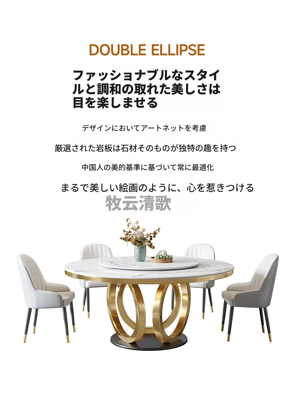 イタリアンミニマリズムのスレートダイニングテーブル&チェアセット - 新登場!モダンでシンプルなデザイン、コンパクトなリビングに最適な回転式ラウンドテーブル。おしゃれな空間を演出し、家族や友人との食事を楽しむのにぴったり!