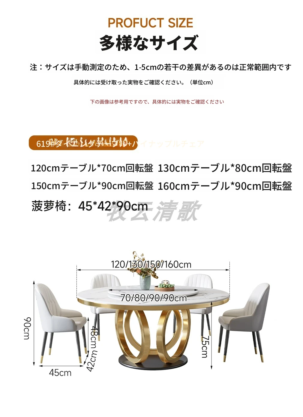 1.2メートル厚手の岩板ラウンドテーブル+4パイナップルチェア