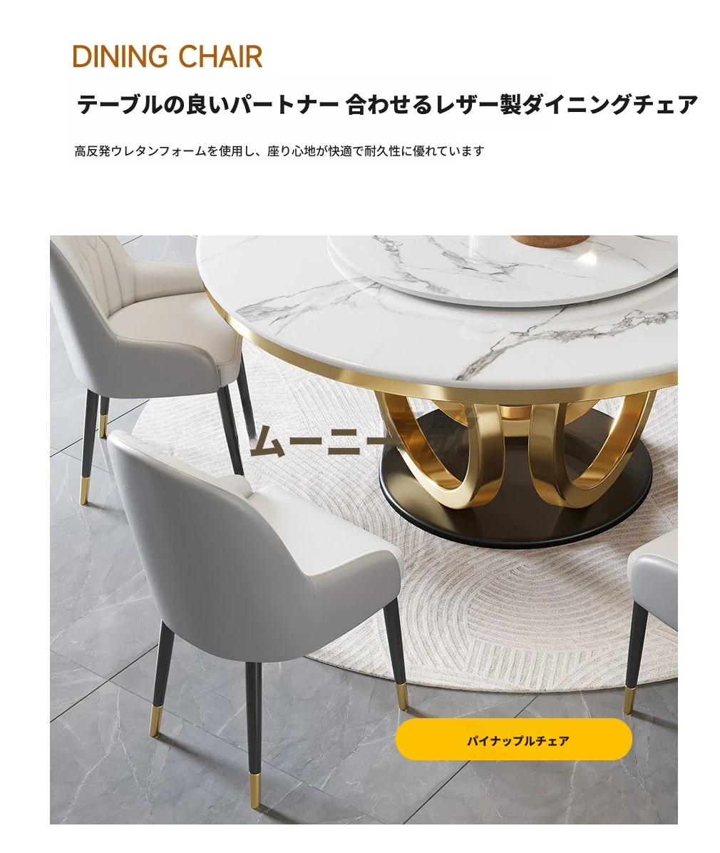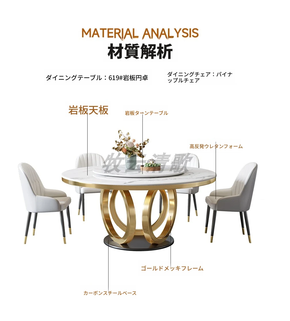 1.3メートル厚手の岩板ラウンドテーブル+8パイナップルチェア
