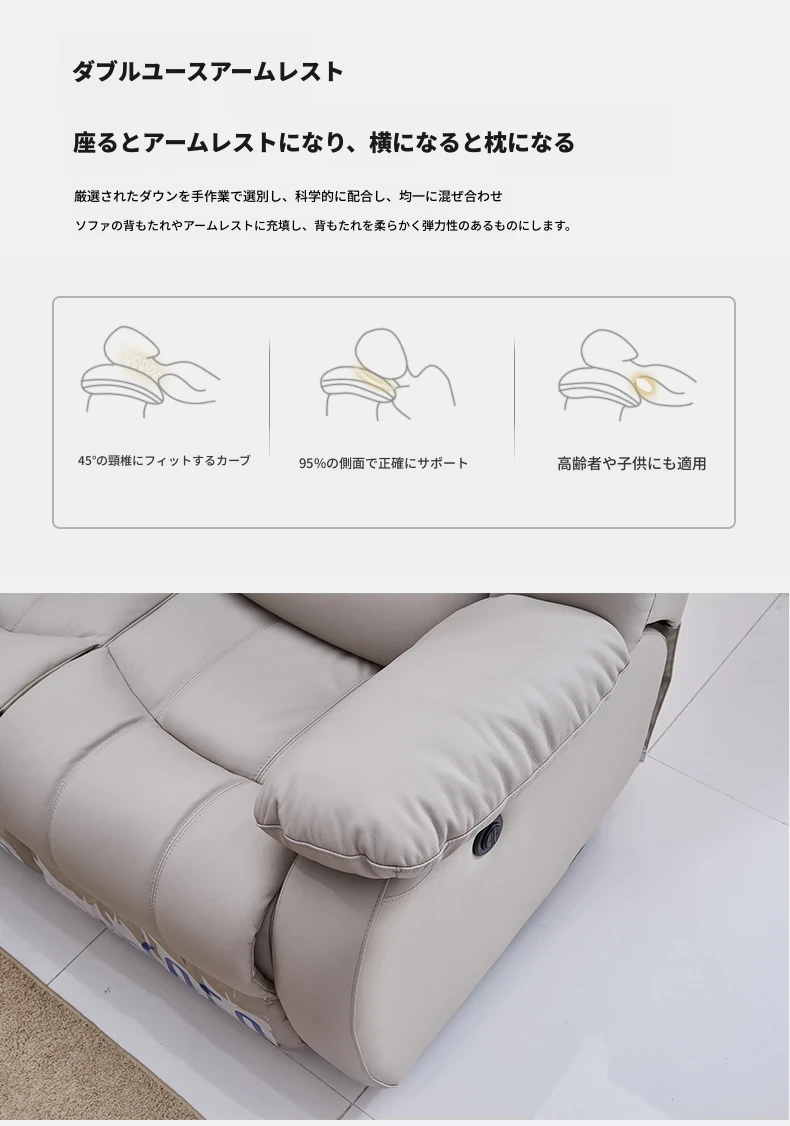 壁に寄せない機能性本革ソファ!イタリアンミニマルデザインの3人掛け電動リクライニングソファ。広い部屋にも小さな部屋にもぴったりの快適さを提供します。あなたのリビングを洗練された空間に変えましょう!