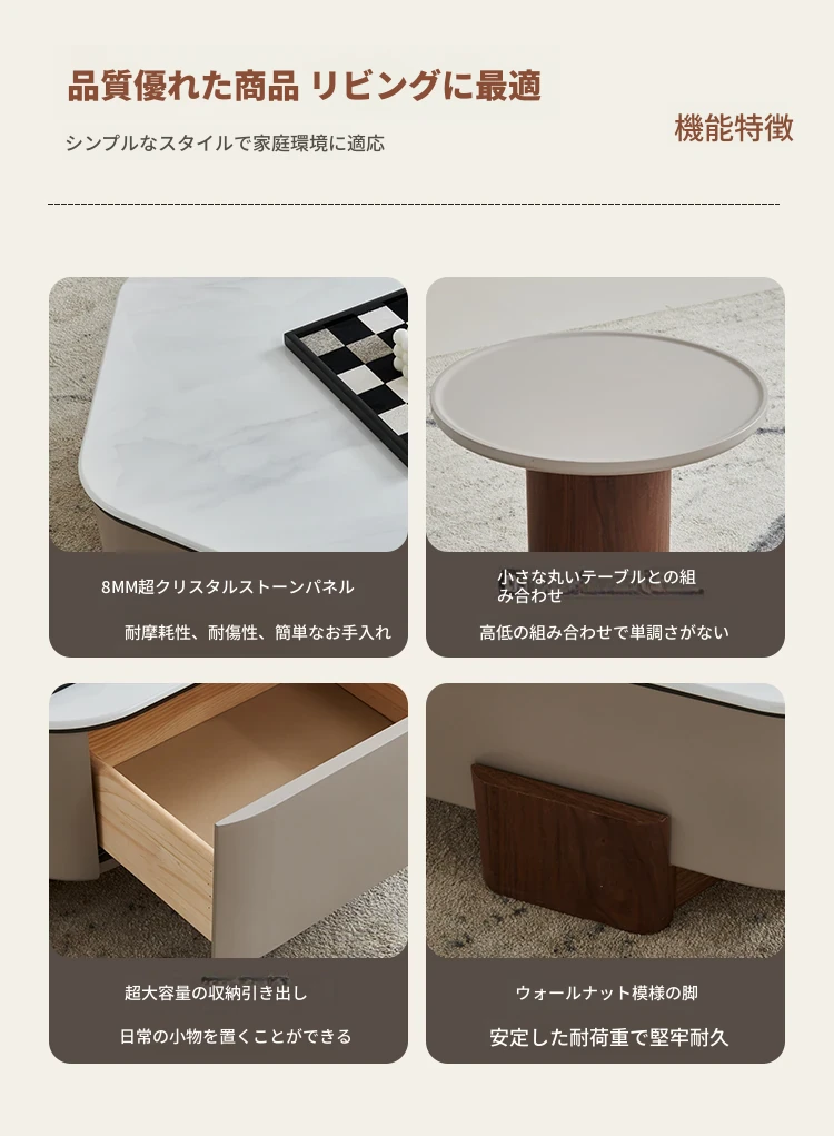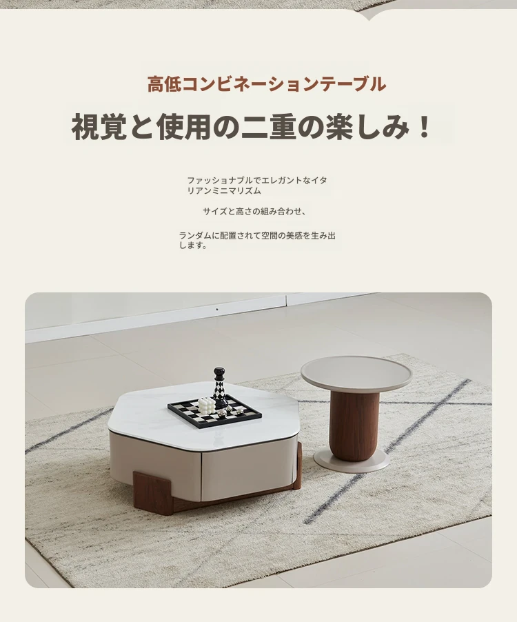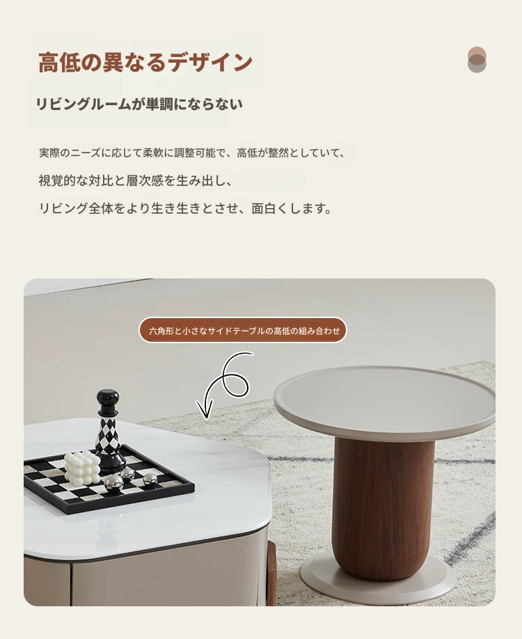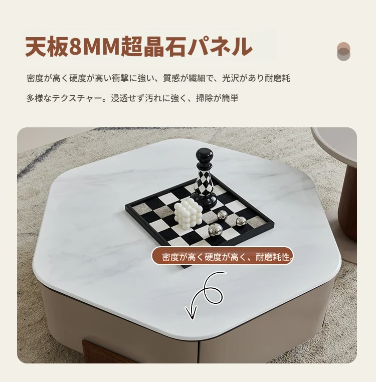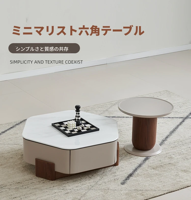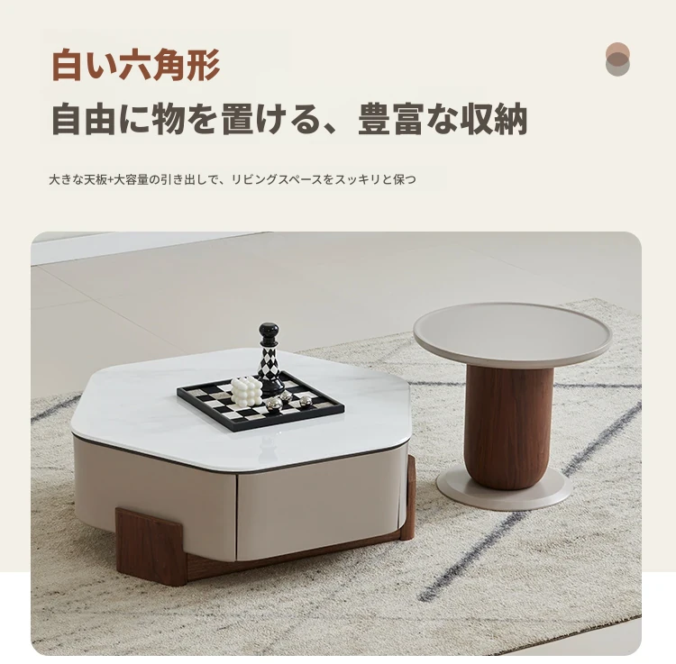モダンでシンプルなリビングにぴったり!高級感あふれる超クリスタルストーン六角形コーヒーテーブルセット - 美しい光沢のあるウッド仕上げ、小さいお部屋にも最適なデザイン!