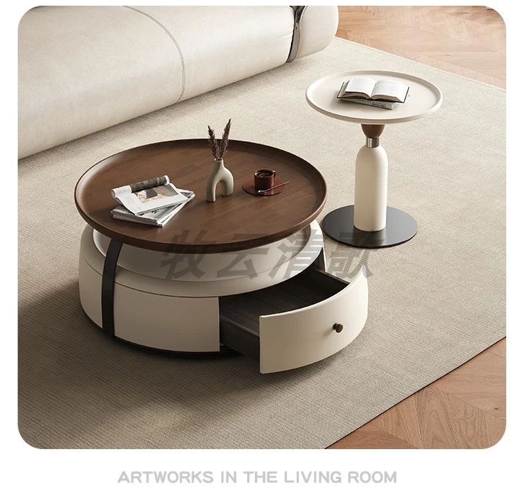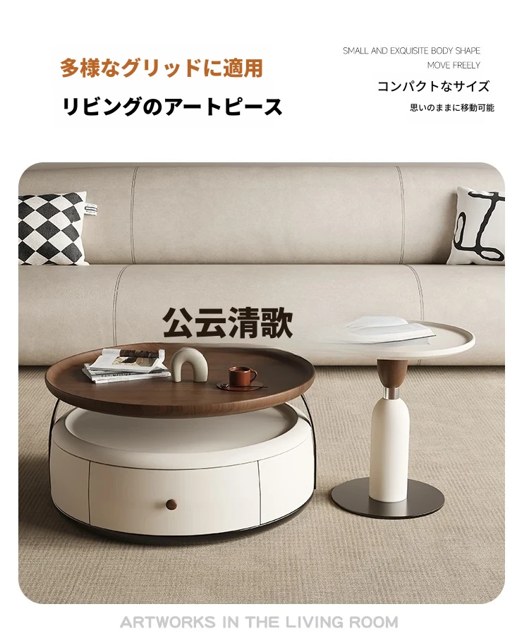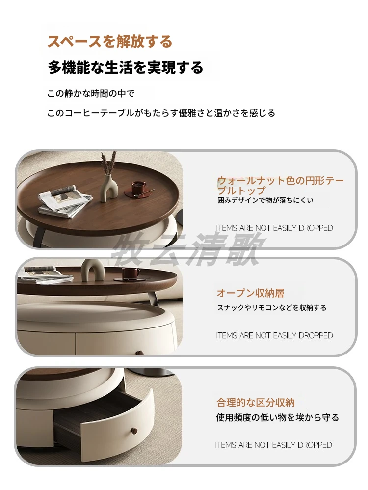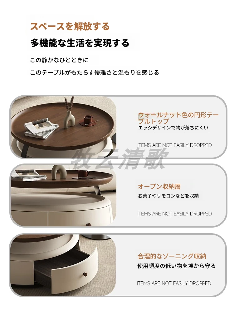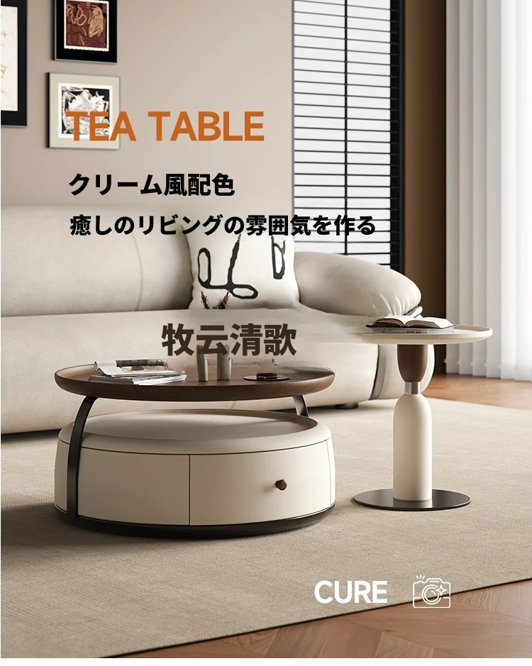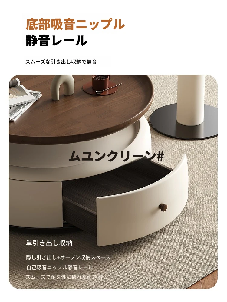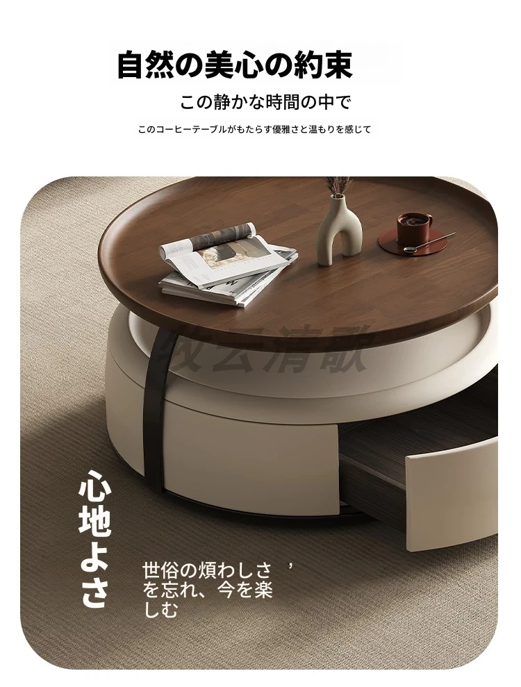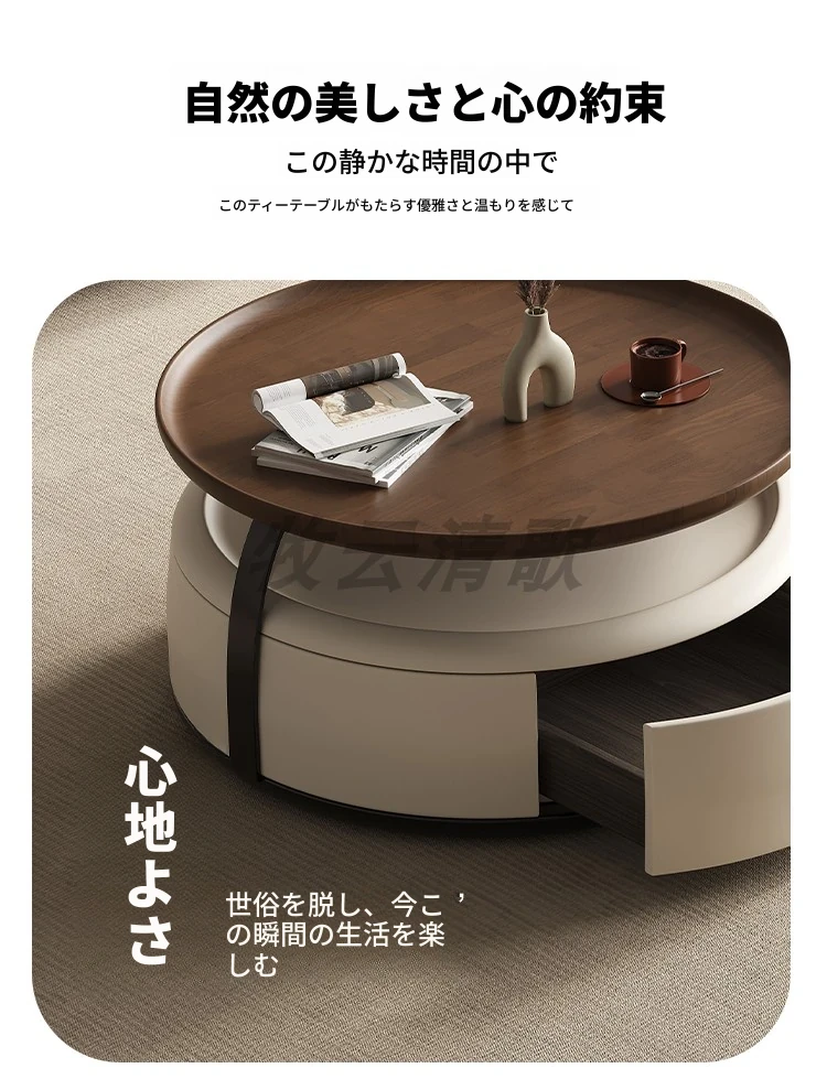 現代的シンプルな丸型無垢材のティーテーブルセット - ラグジュアリーなミニマリズムで小型リビングに最適な収納付き家用ティーテーブルとサイドテーブル!
