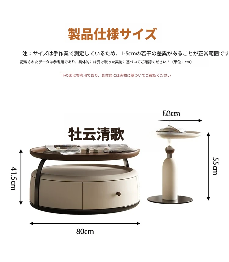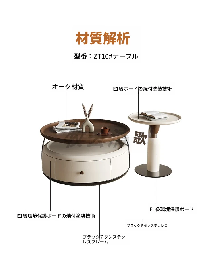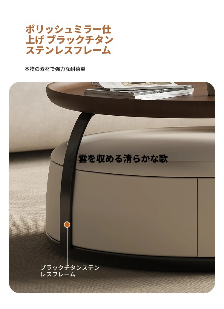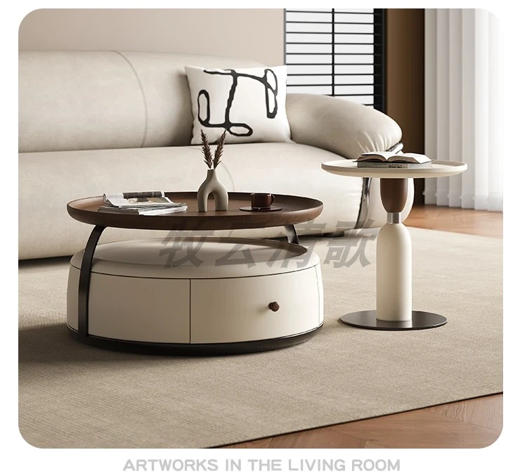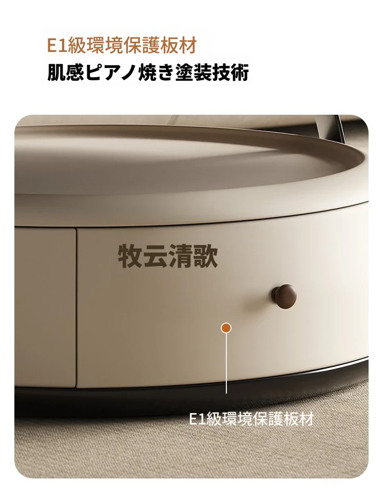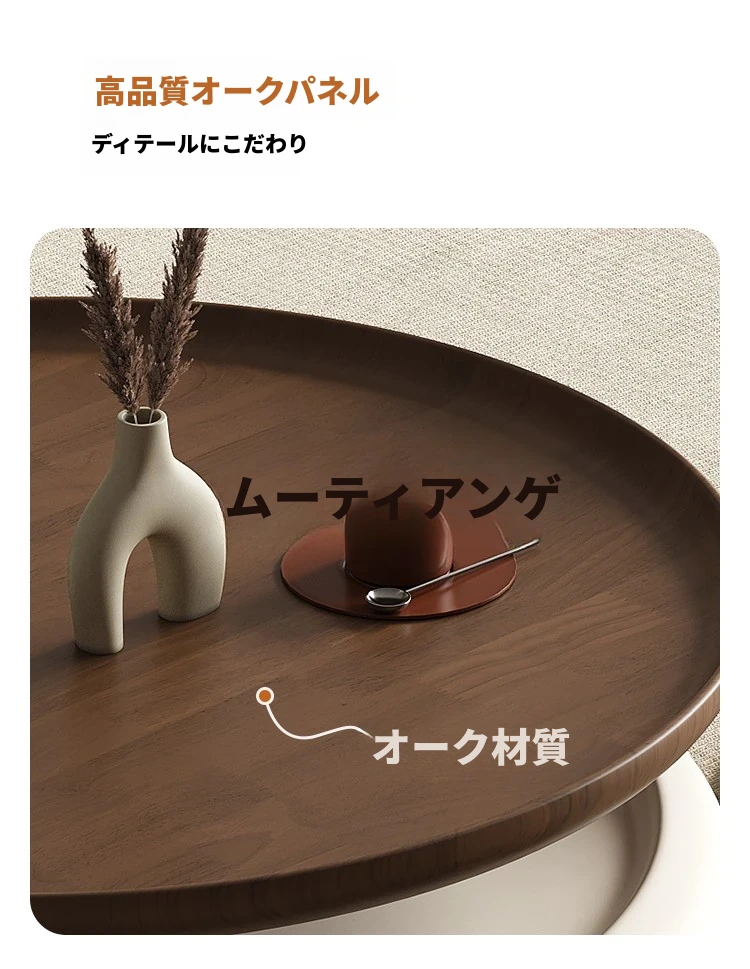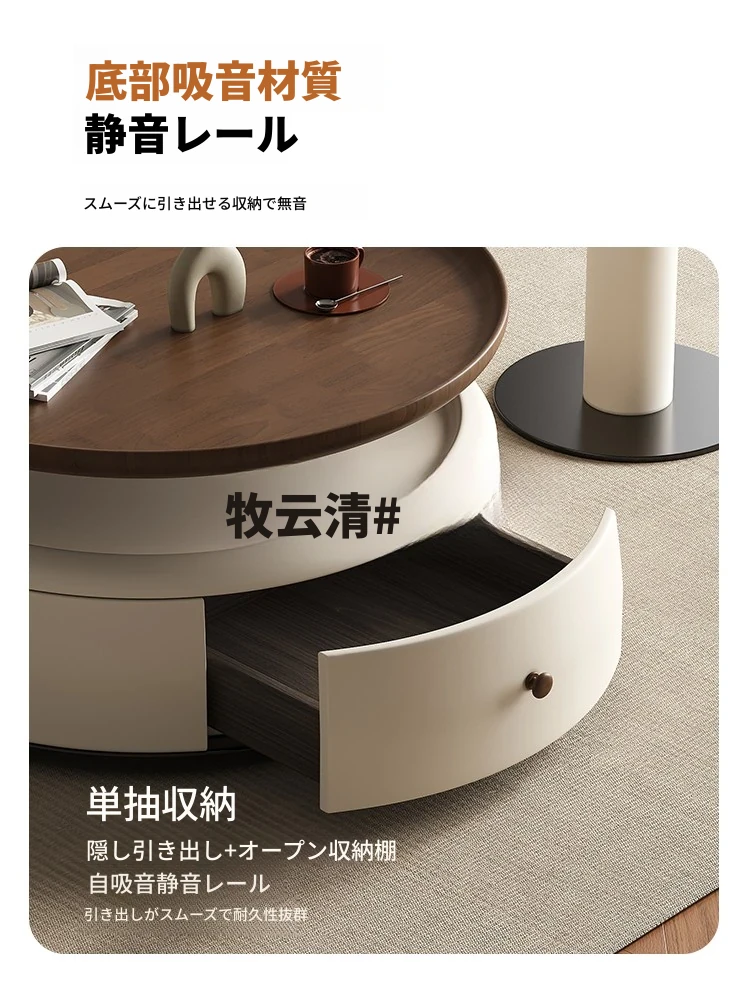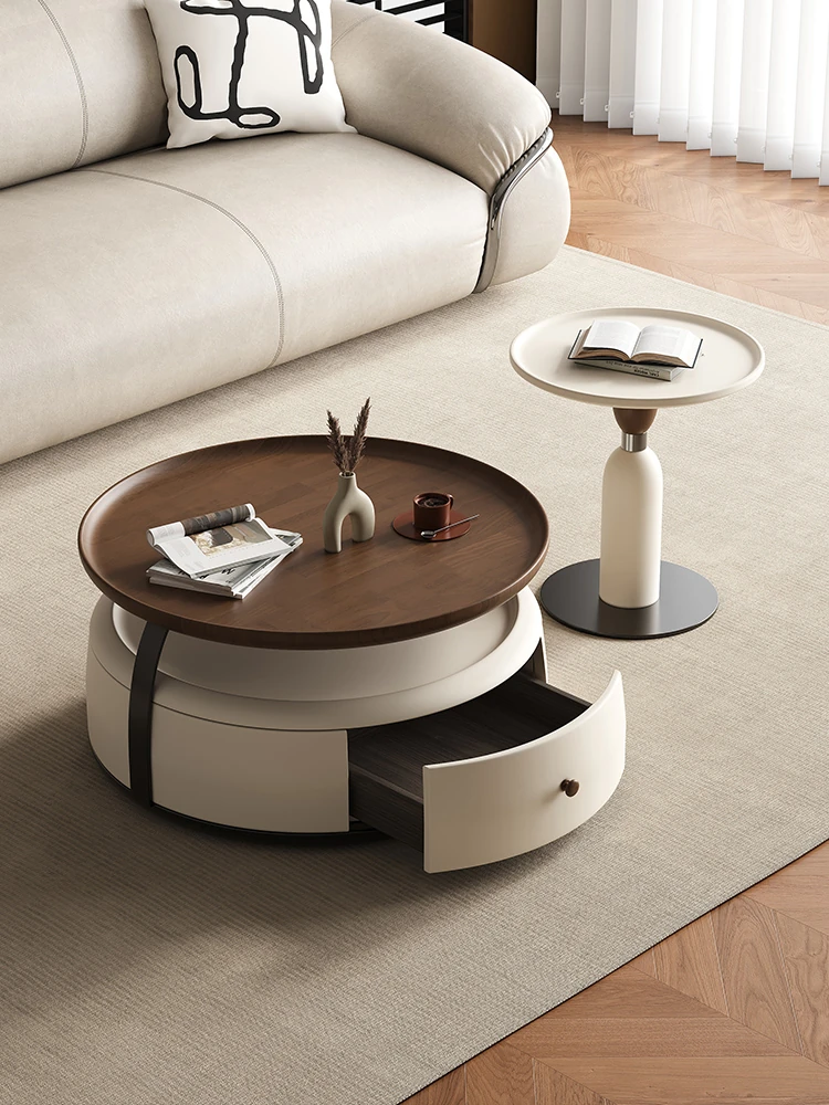 現代的シンプルな丸型無垢材のティーテーブルセット - ラグジュアリーなミニマリズムで小型リビングに最適な収納付き家用ティーテーブルとサイドテーブル!