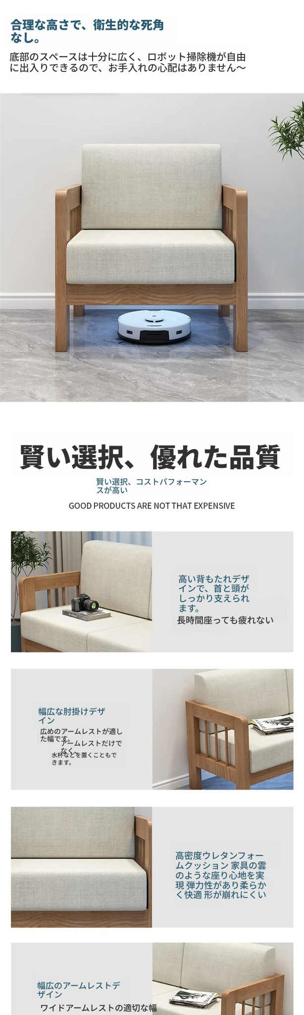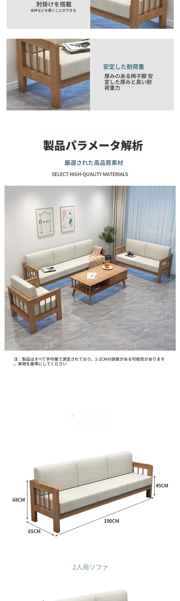 全実木製リビング用ソファ|モダンでシンプルなデザイン|家族や友人とのくつろぎに最適な多人数用布製カウチ|小型住宅にもぴったりな美しいファニチャー!
