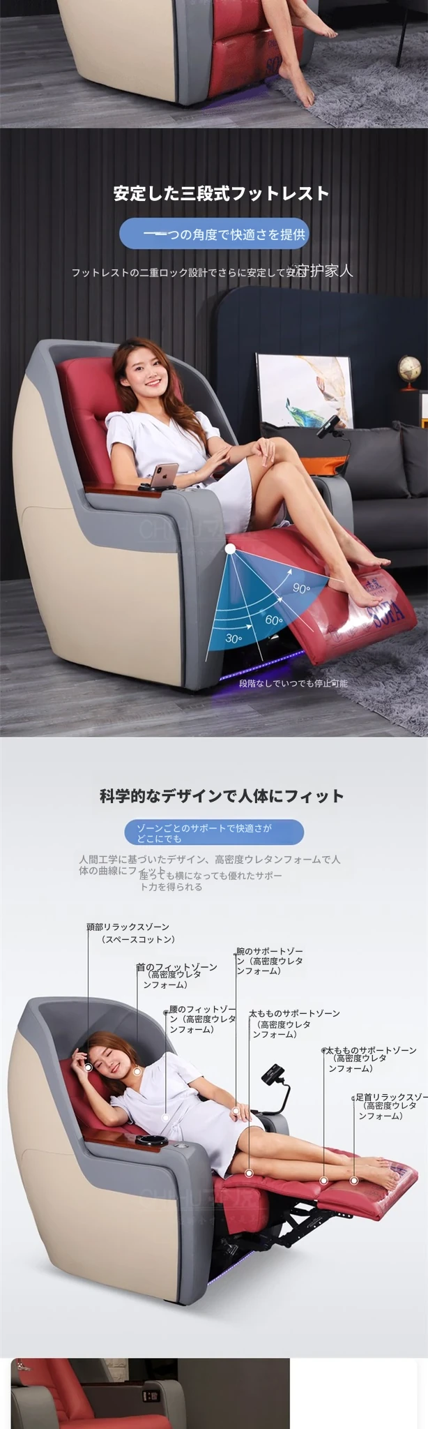 エグゼクティブスペースソファキャビン - 機能性リクライニングチェア、温熱マッサージ付き、リラックスできる電動一人用ソファ!快適さと贅沢を兼ね備えた、至福のひとときをお届けします。