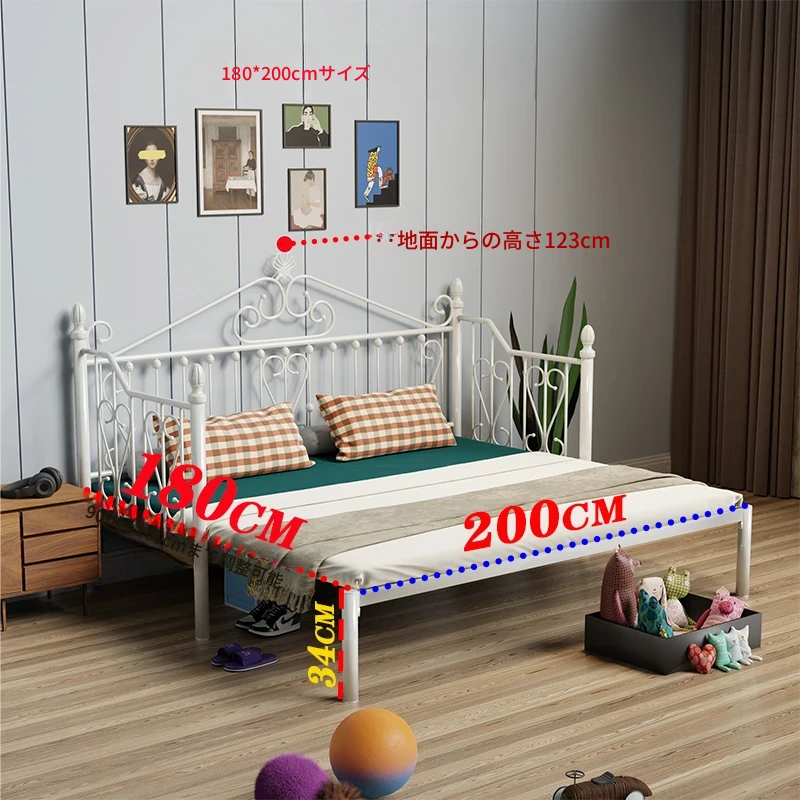 北欧スタイルのアイアン折りたたみダブルベッド!小型スペースに最適な多機能ソファベッド。リビングでの座る・寝るを兼ね備え、居心地の良い空間を実現します!