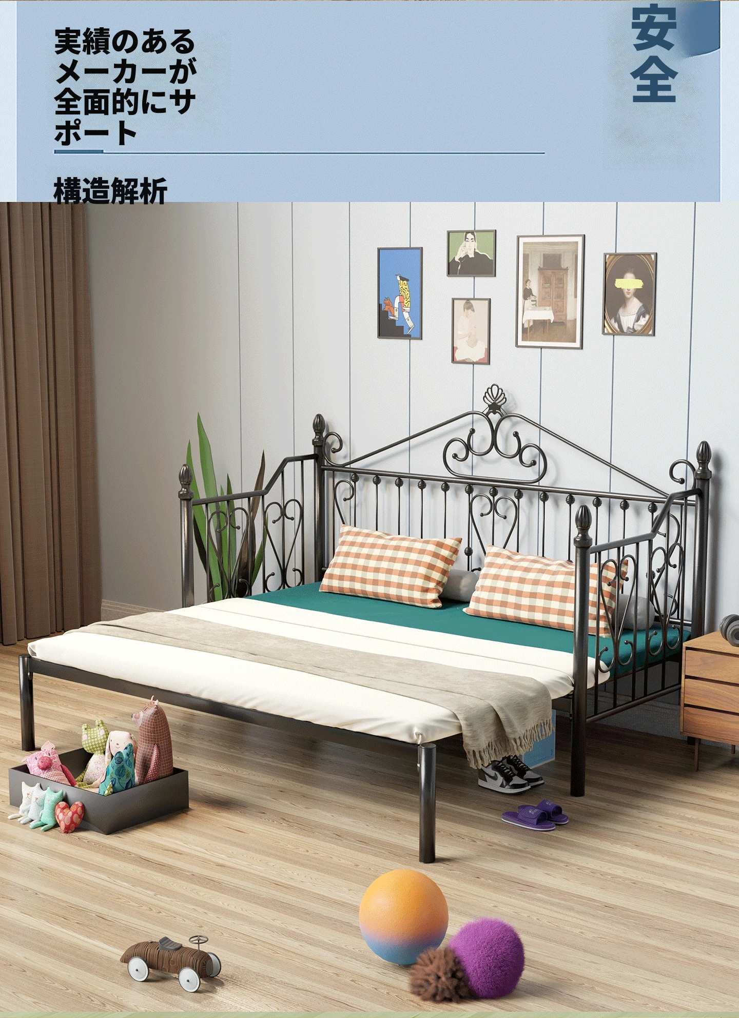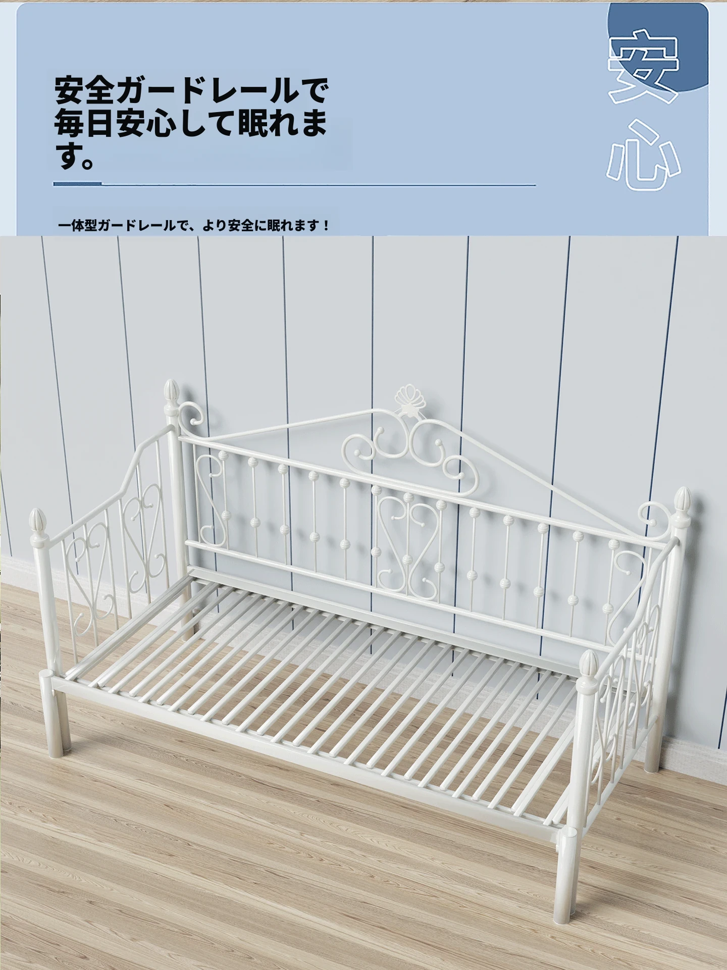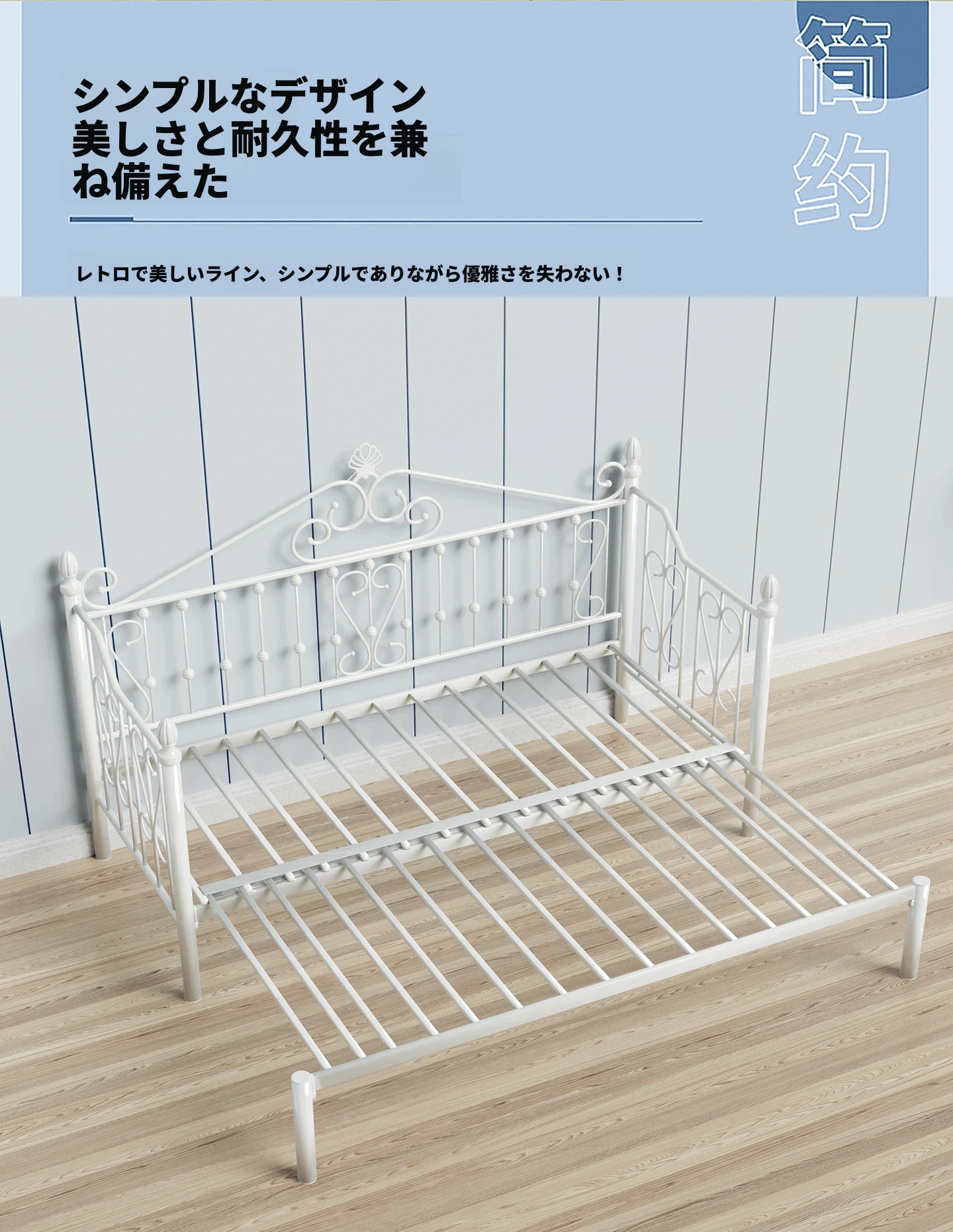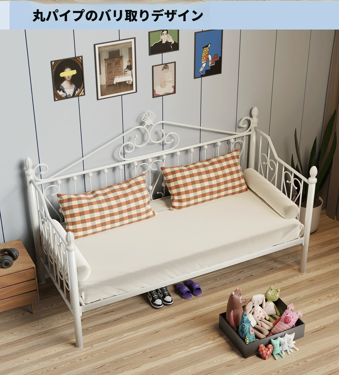 多機能折りたたみアイアン製ソファベッド - 1.2mのコンパクトサイズで、座る・寝る両用!ヘッドボードなしで、伸縮自在のスリムなデザイン。限られたスペースでも大活躍!