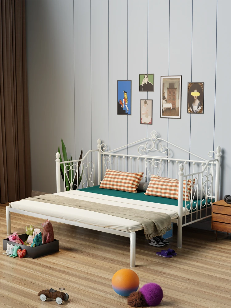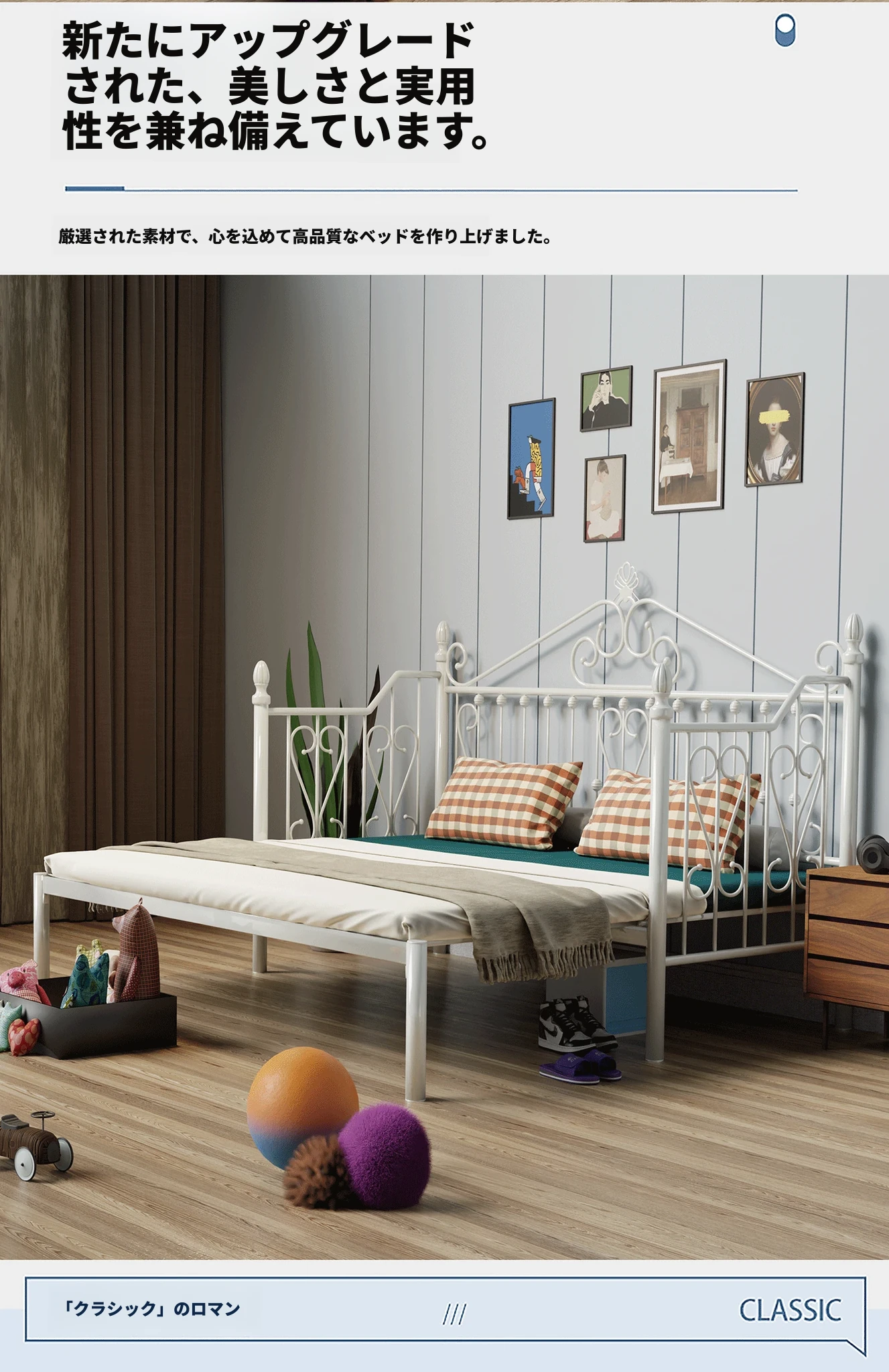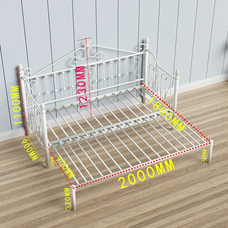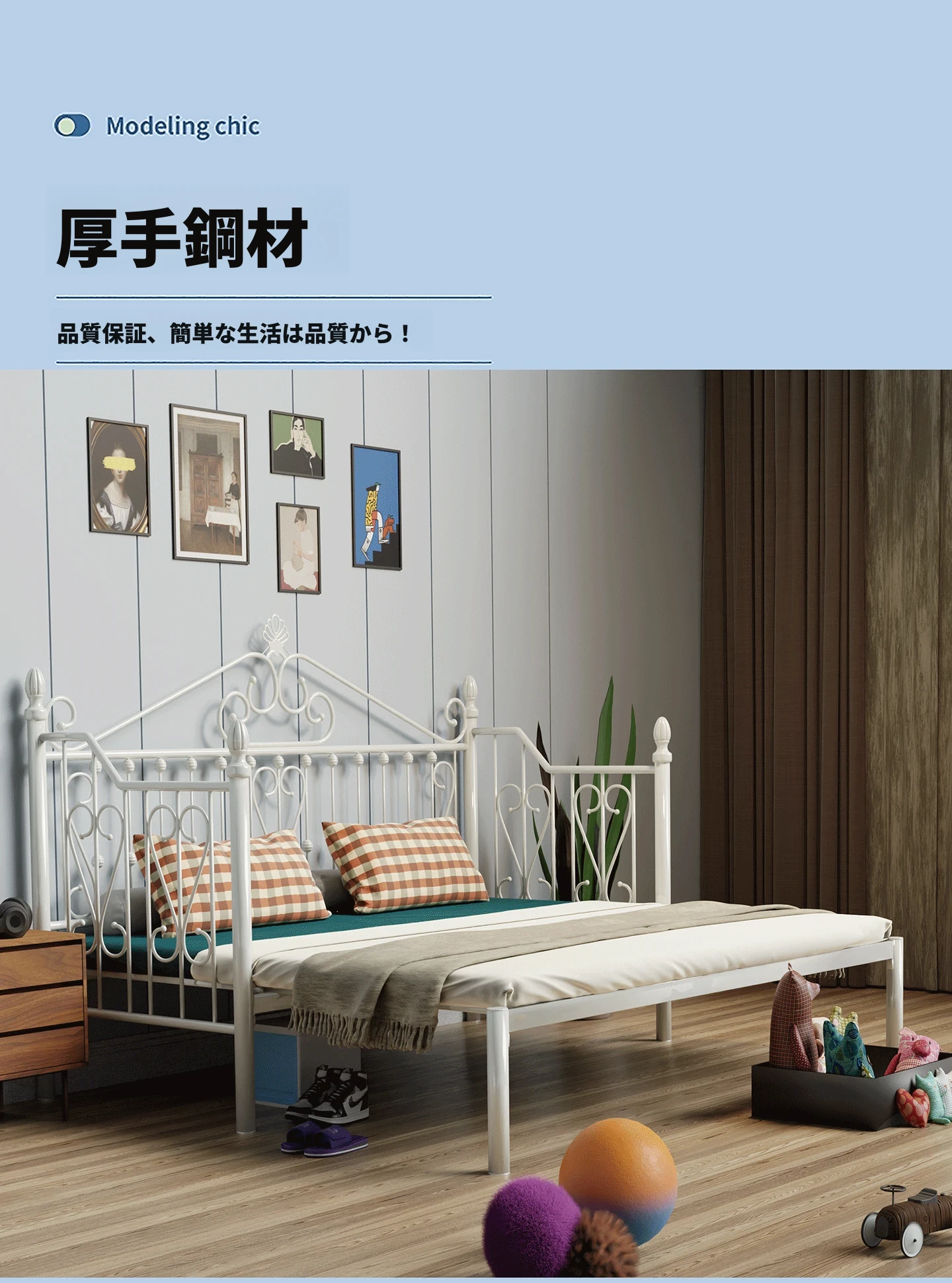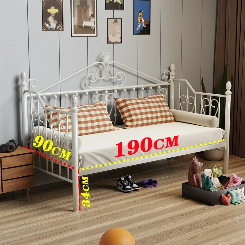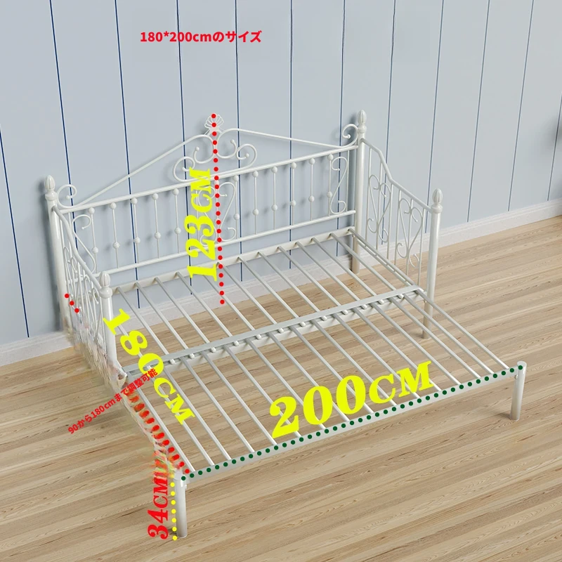 多機能折りたたみアイアン製ソファベッド - 1.2mのコンパクトサイズで、座る・寝る両用!ヘッドボードなしで、伸縮自在のスリムなデザイン。限られたスペースでも大活躍!