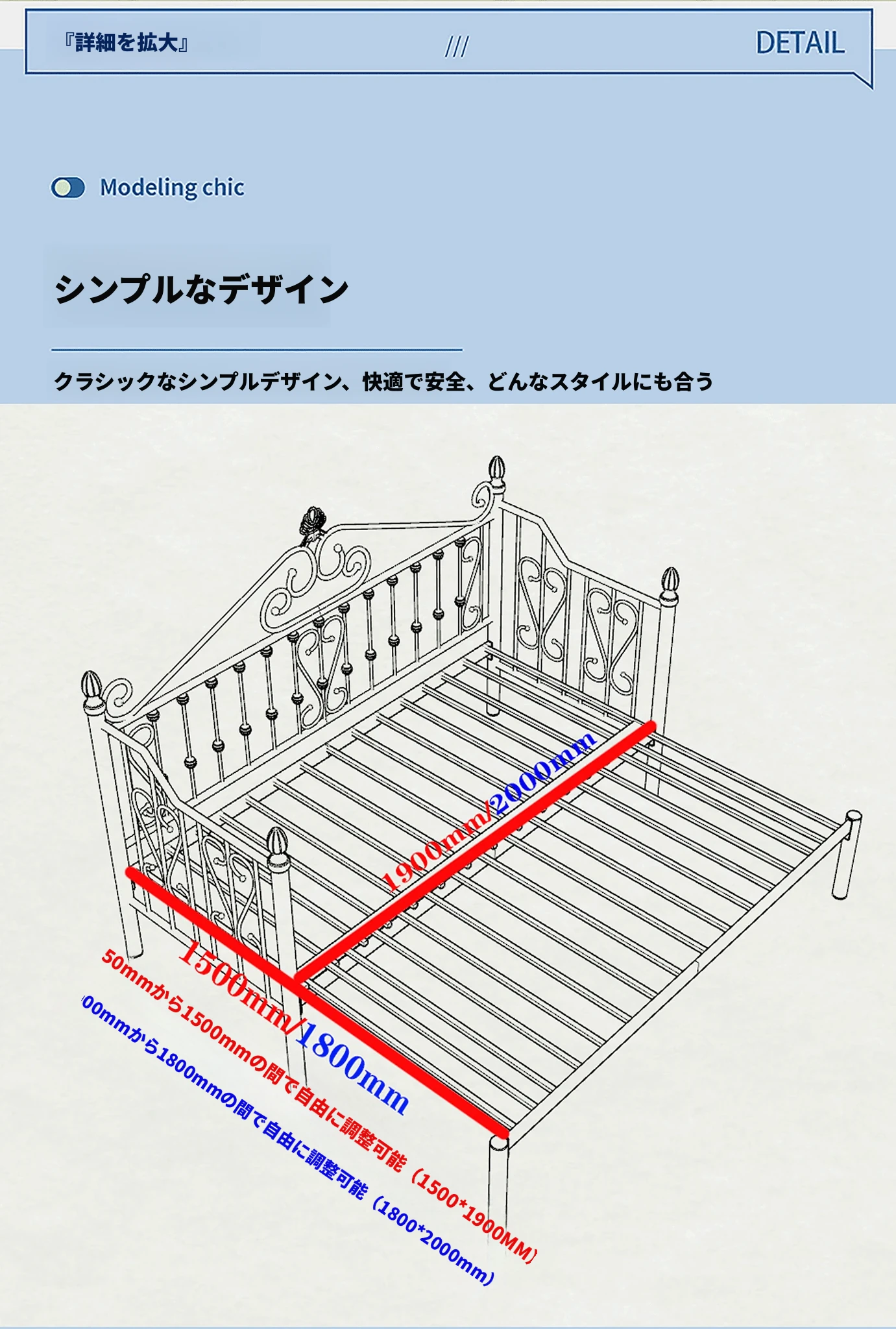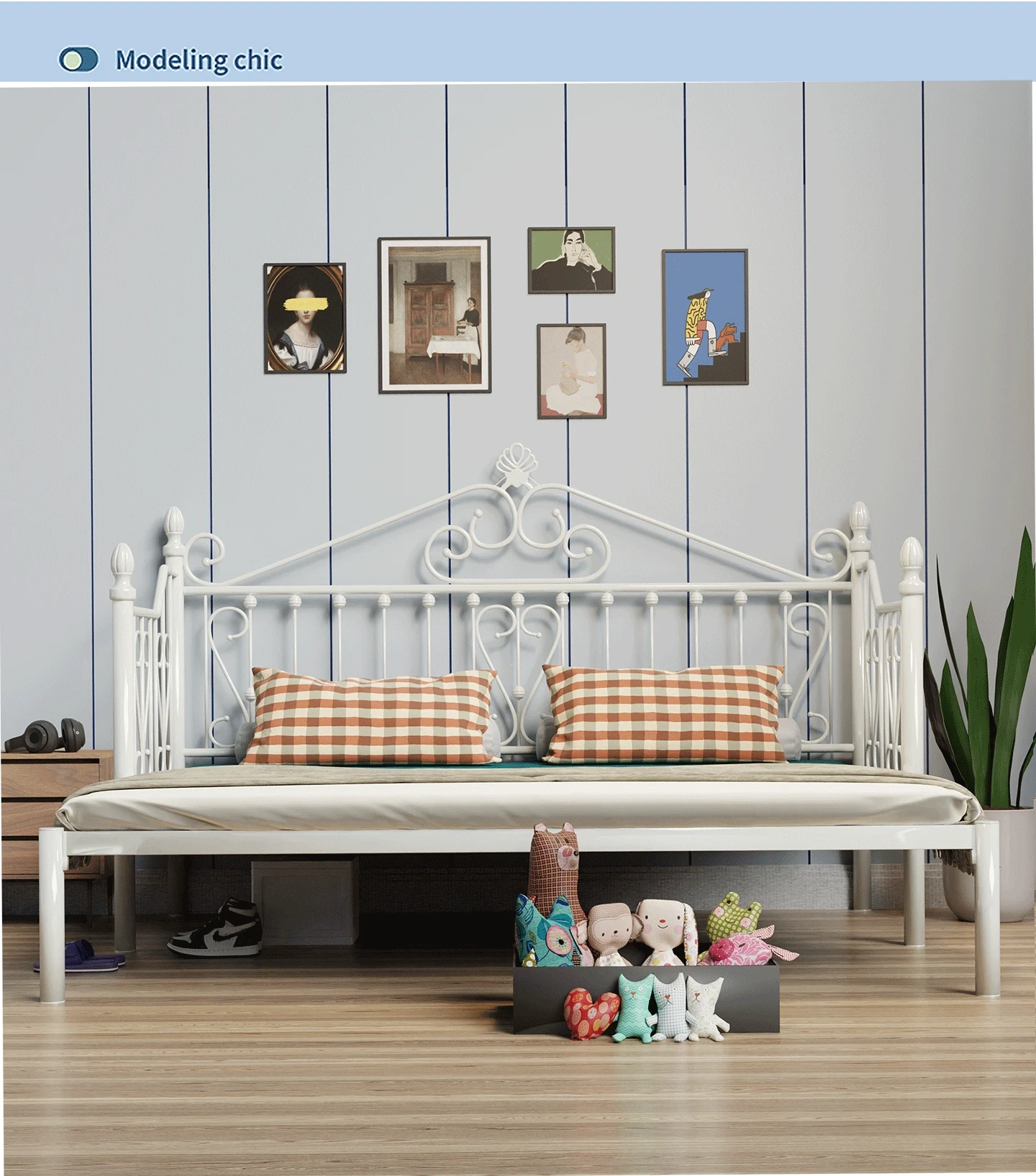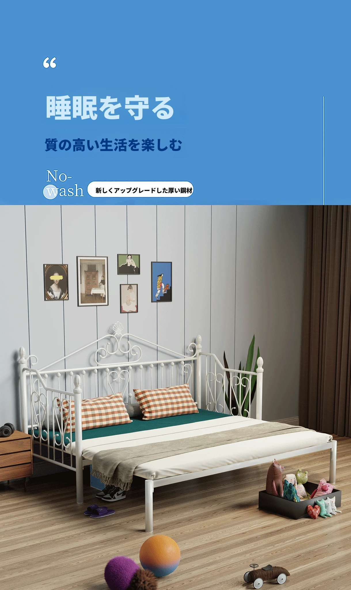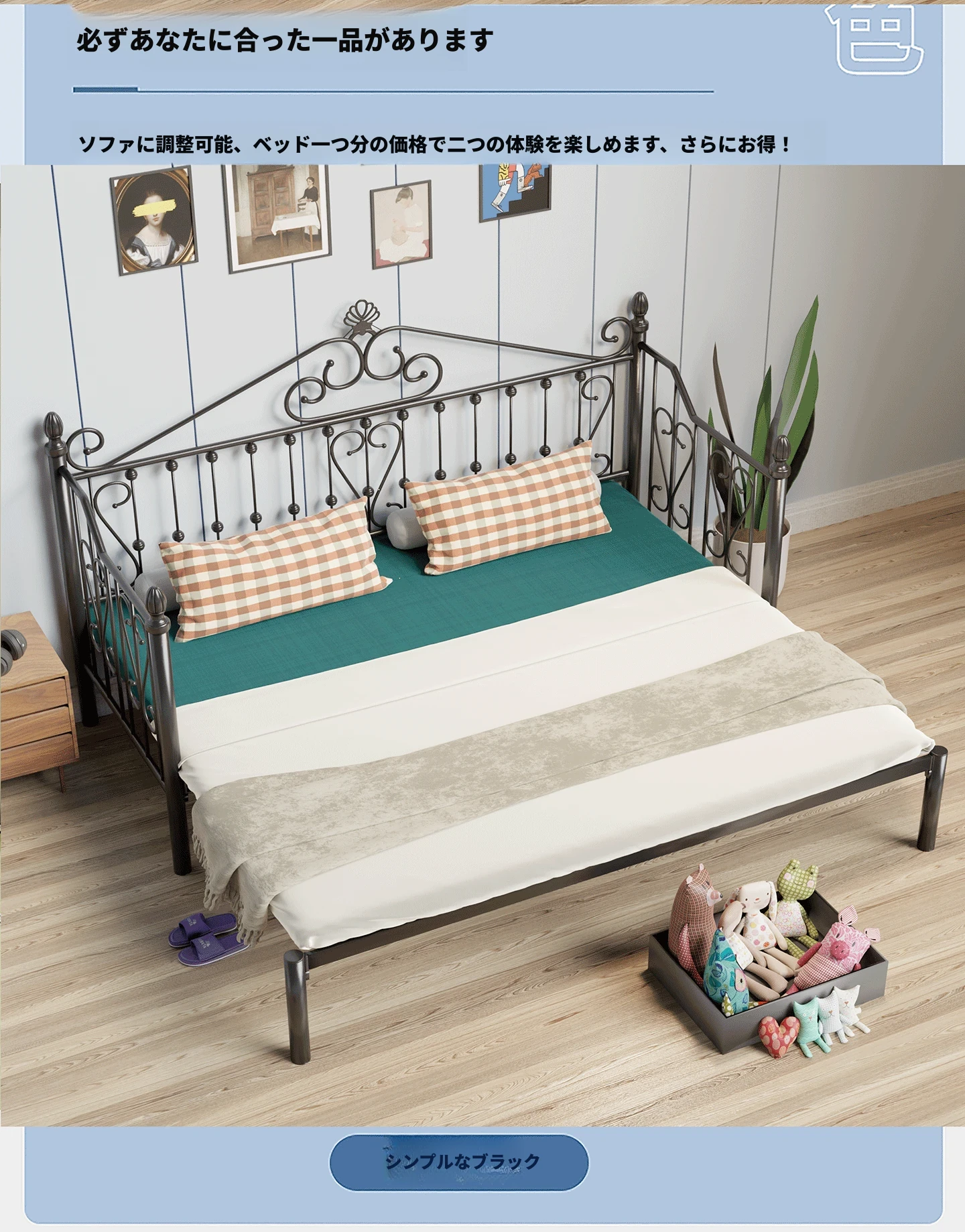 多機能折りたたみアイアン製ソファベッド - 1.2mのコンパクトサイズで、座る・寝る両用!ヘッドボードなしで、伸縮自在のスリムなデザイン。限られたスペースでも大活躍!