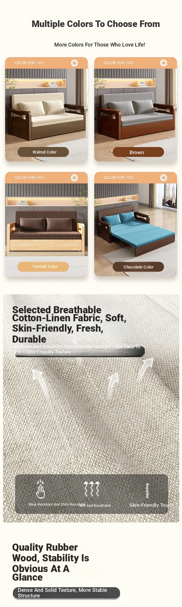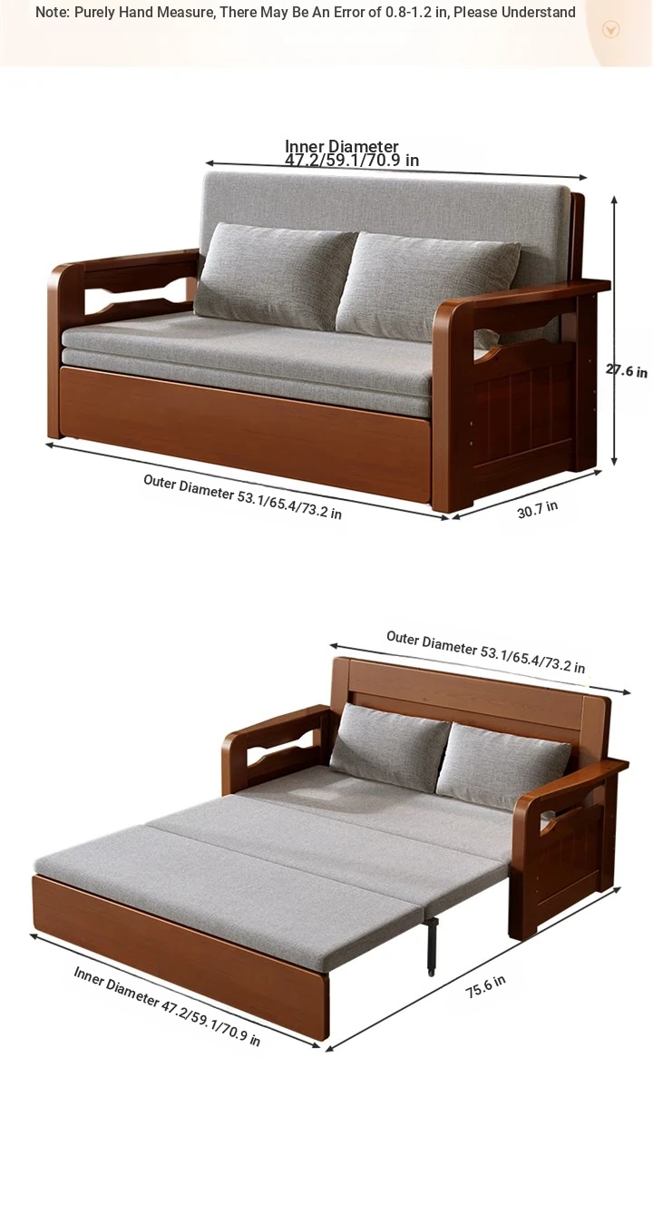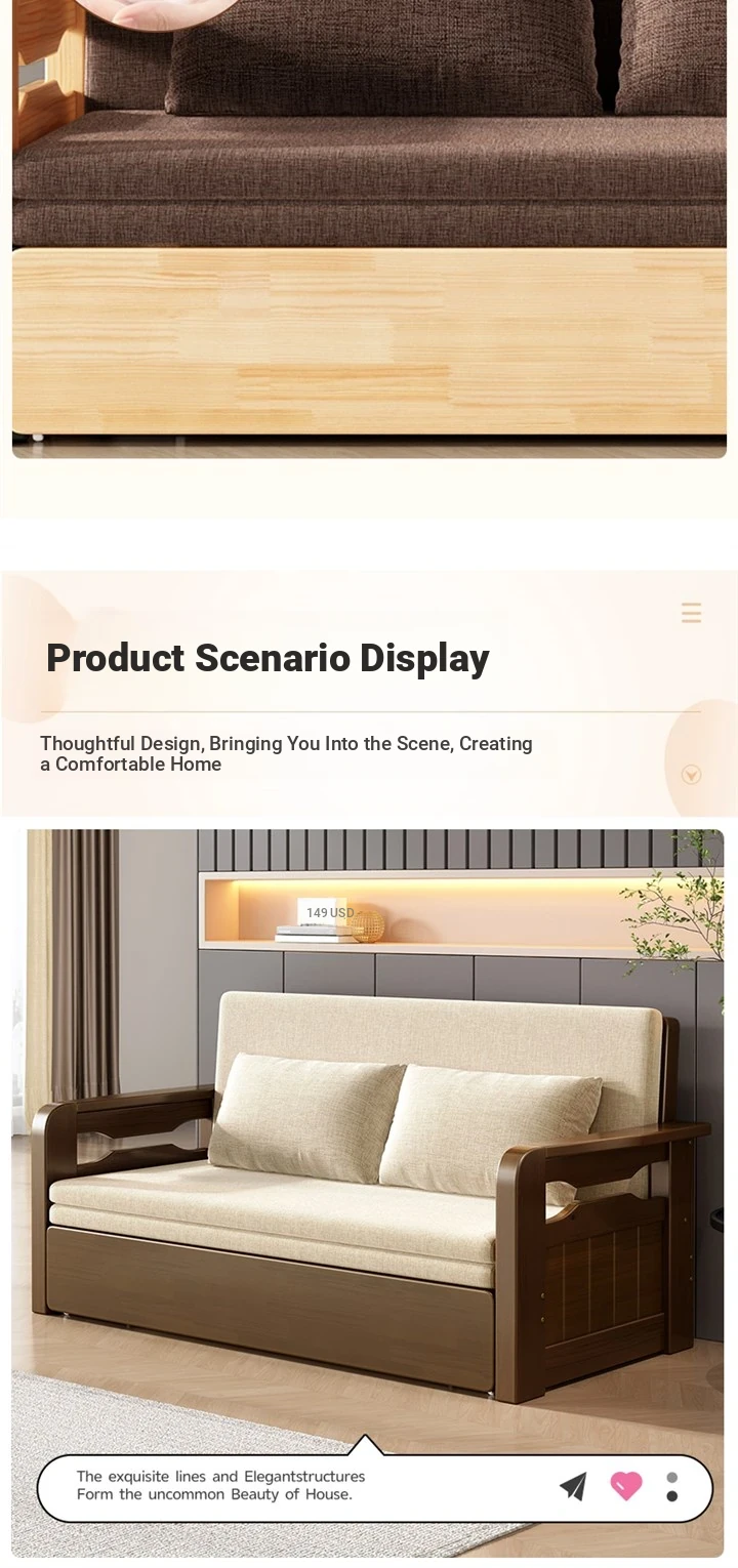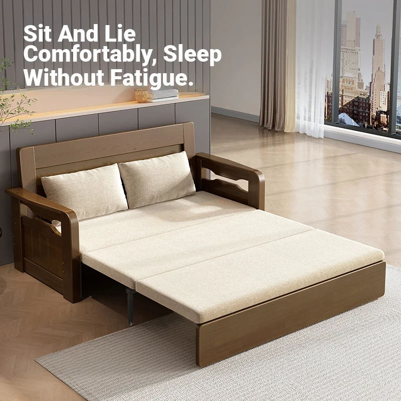 Multifunctional Foldable Sofa Bed for Small Spaces - 1.5m Twin Size with Storage, Ideal for Living Rooms, Made of Solid Wood, Perfect for Guests and Everyday Use
