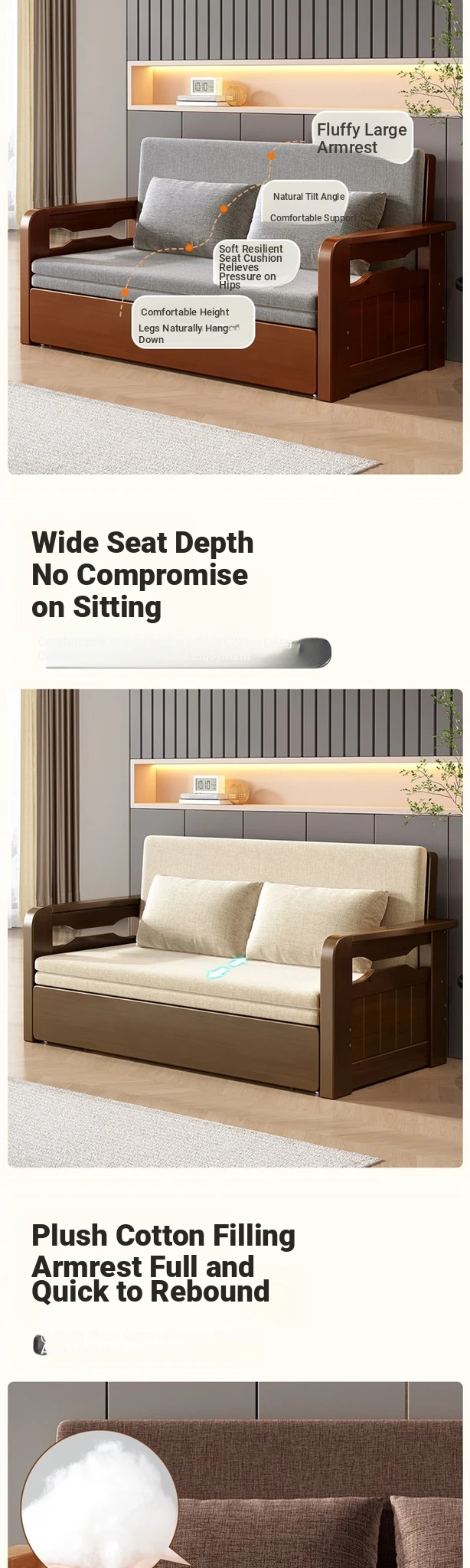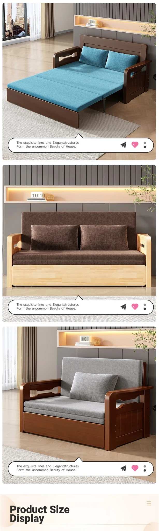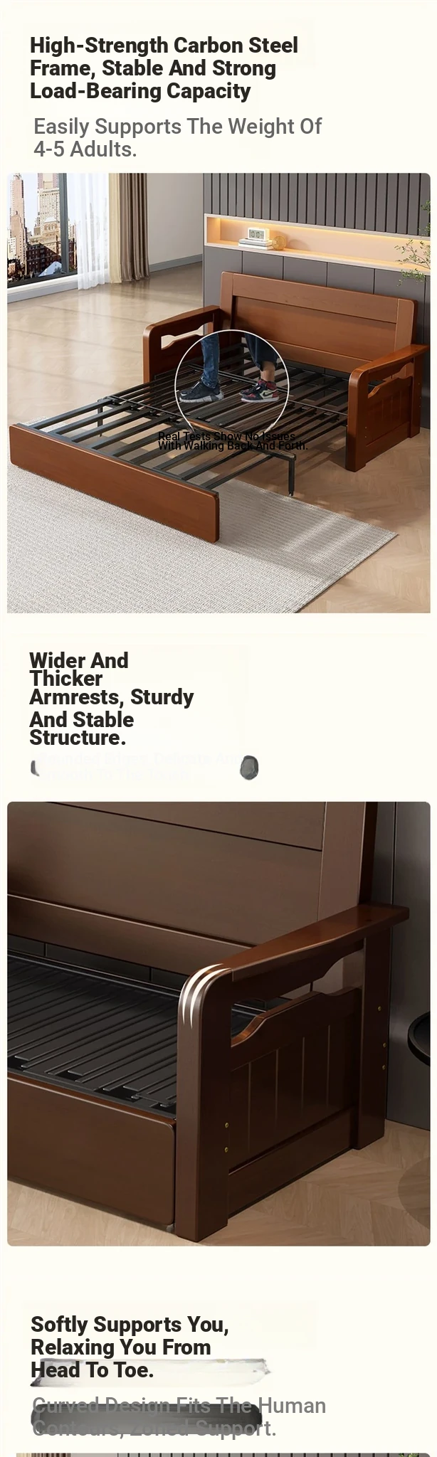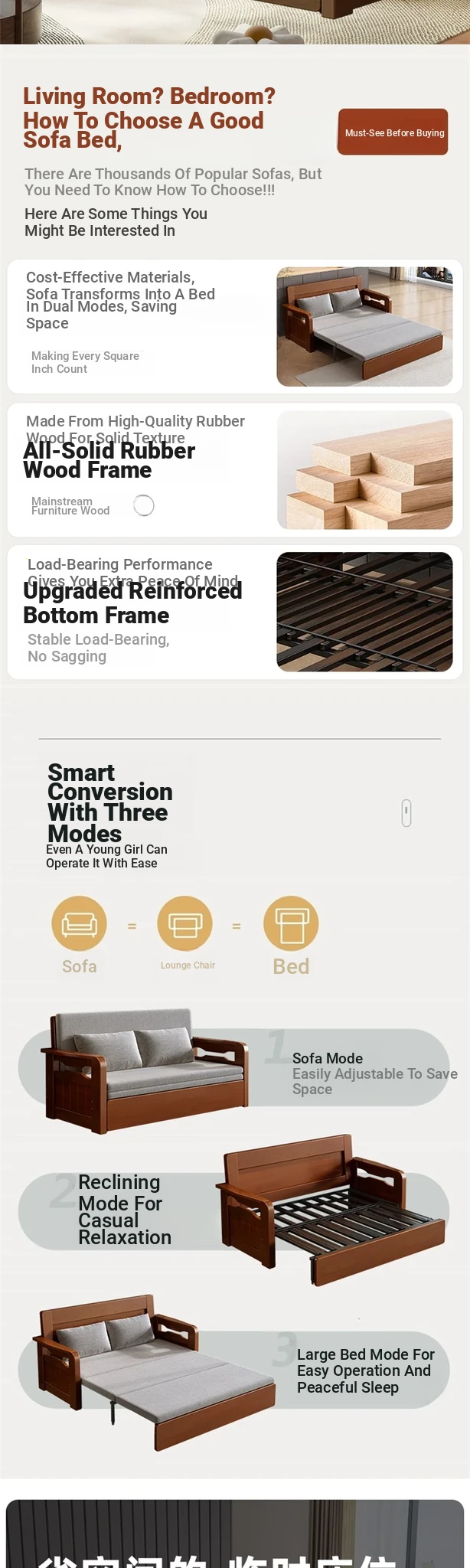 Multifunctional Foldable Sofa Bed for Small Spaces - 1.5m Twin Size with Storage, Ideal for Living Rooms, Made of Solid Wood, Perfect for Guests and Everyday Use