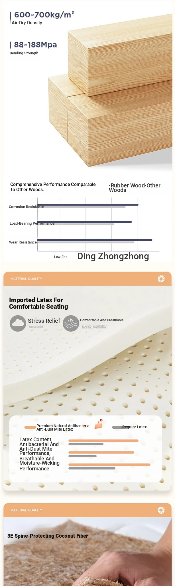 [Latex] 70.87 in Walnut + Mattress + Pillow