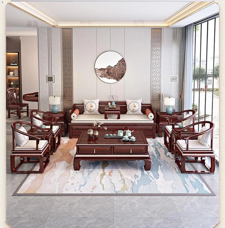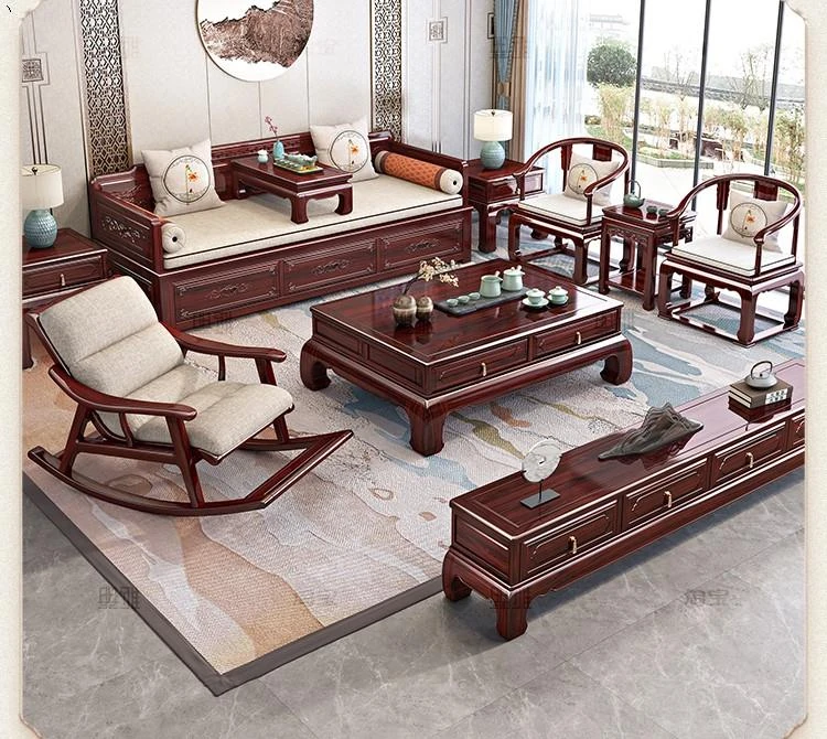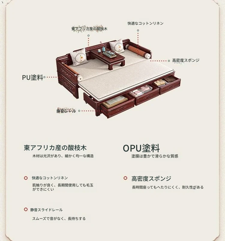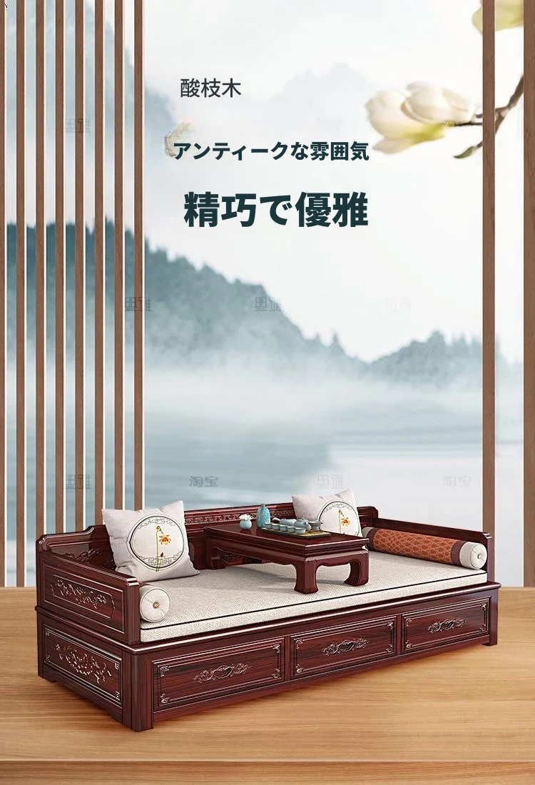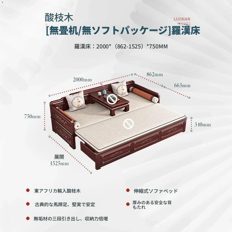 新中式ロハンベッド!プルダウン機能付きの高品質無垢材ソファベッド。小型住宅にもぴったりな酸枝木製、リビングルームでの多用途使用が可能。おしゃれな空間を演出し、快適な眠りを提供します!