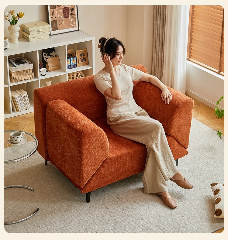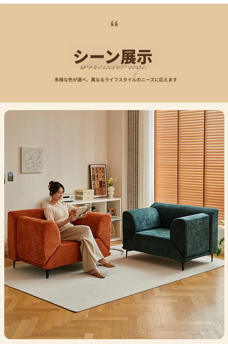 新作!一人用ソファーチェア - リビングやバルコニーにぴったりのカジュアルチェア。コンパクトサイズで回転可能、シンプルなファブリックデザインが魅力のリラックスできる小さなソファ。おしゃれな空間を演出します!