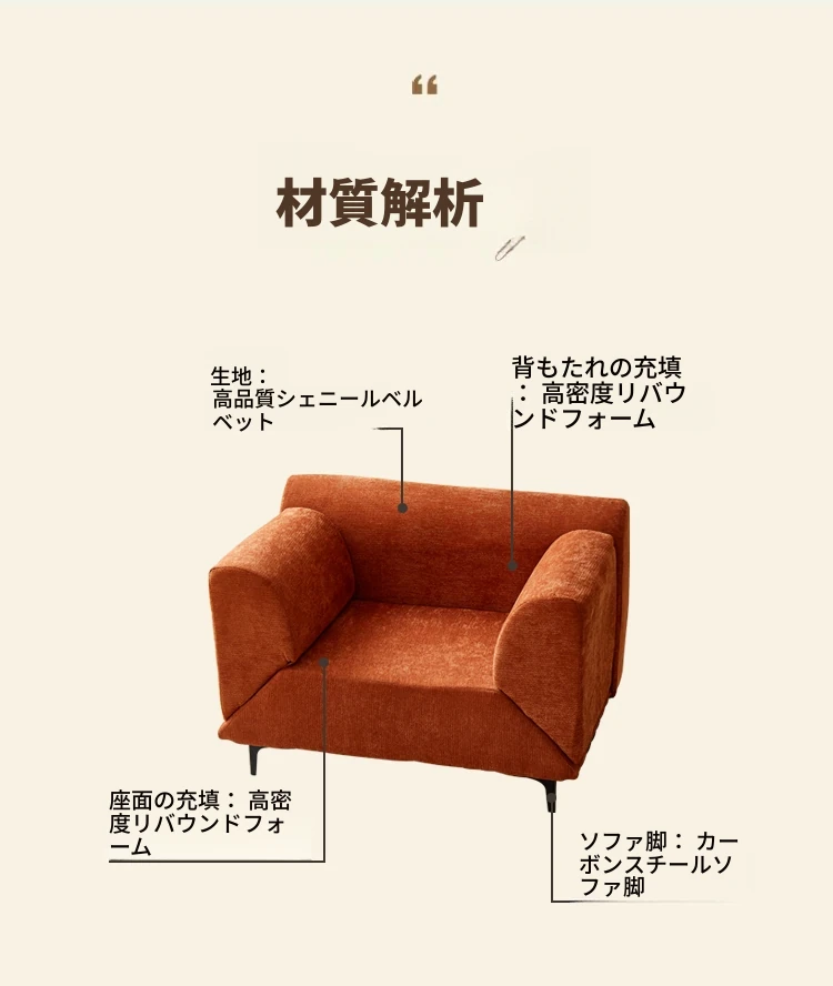 アイマオレンジ-スキンフレンドリーなシェニールベルベット【固定アーム】