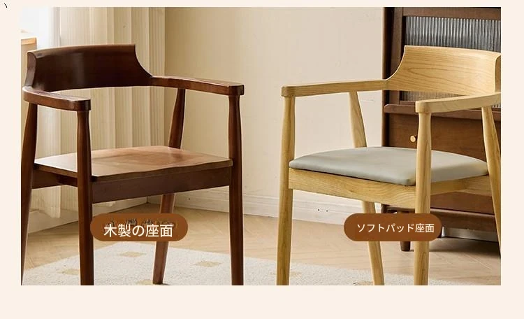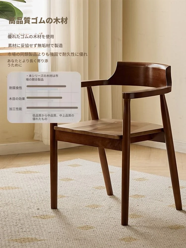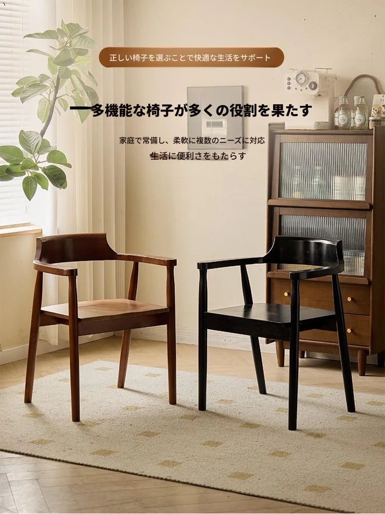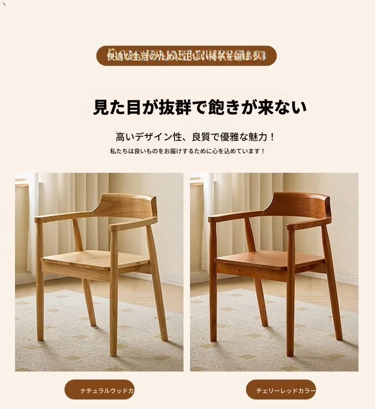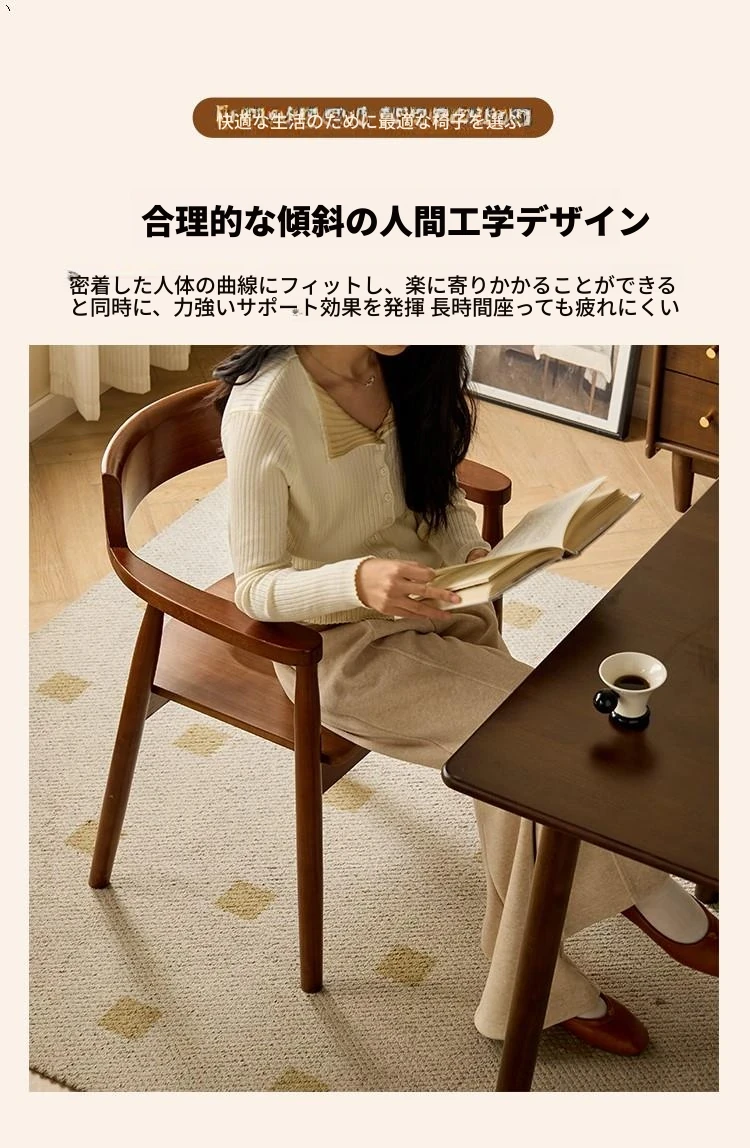 北欧風の天然木製ダイニングチェア|広島シュメイトのアームチェア|モダンでシンプル、リラックスできるカフェスタイルの家庭用椅子!