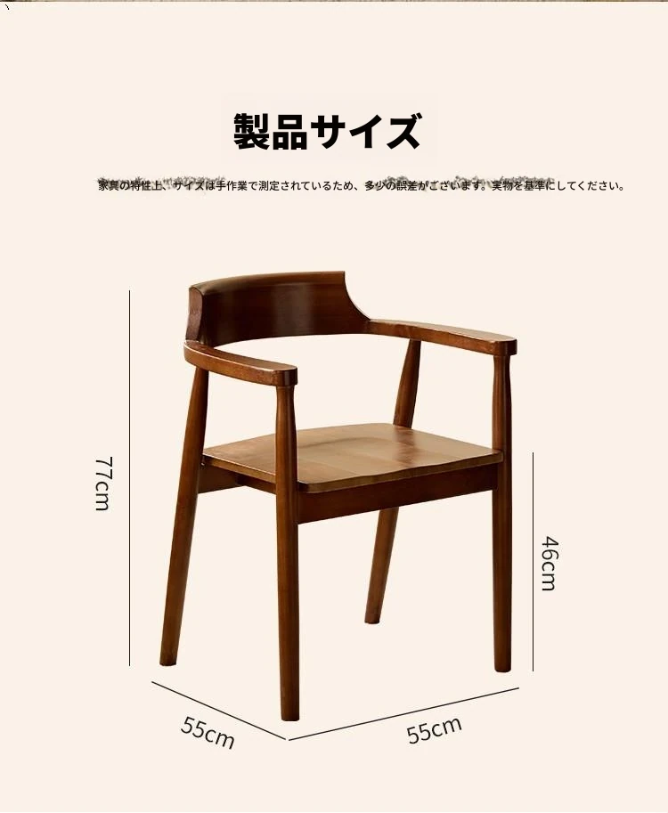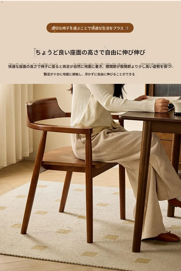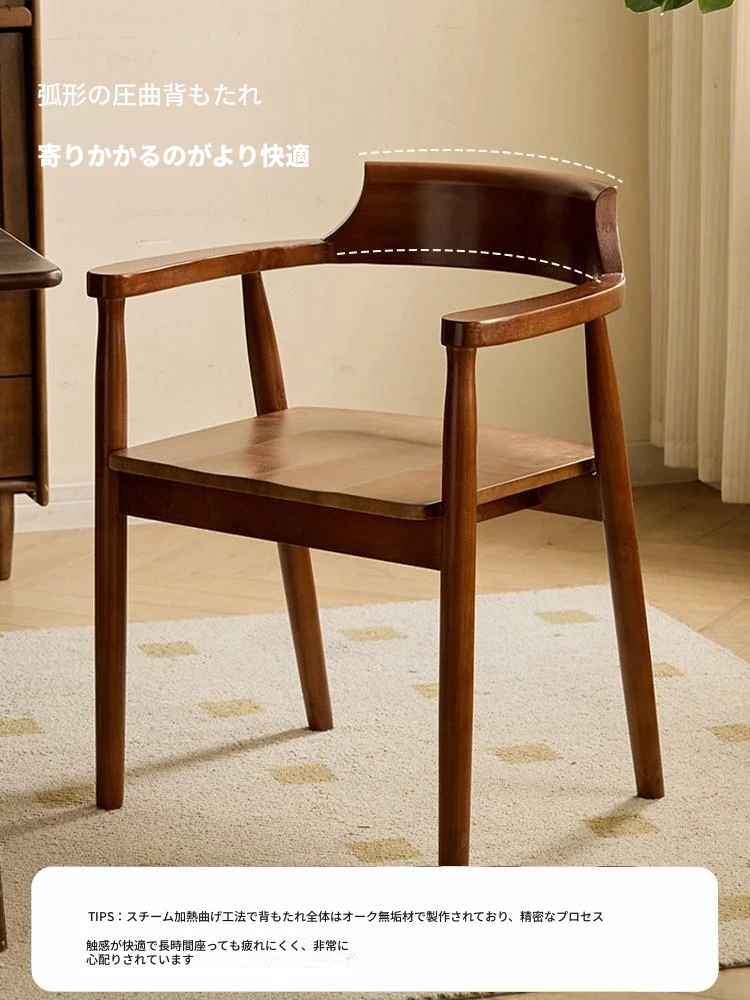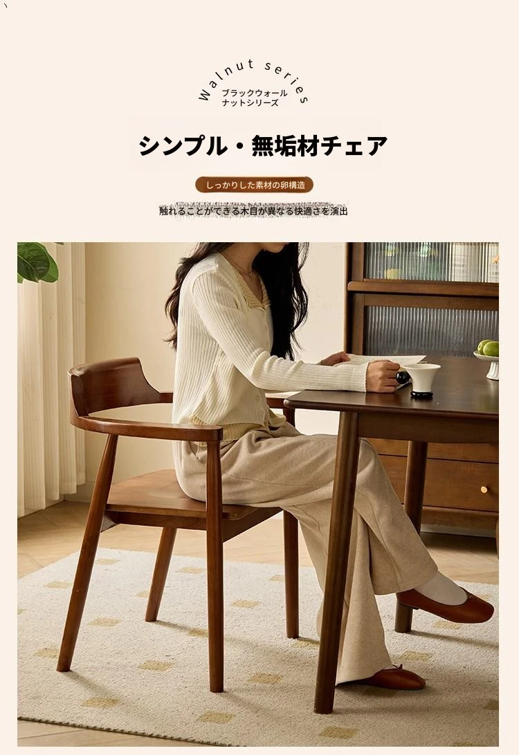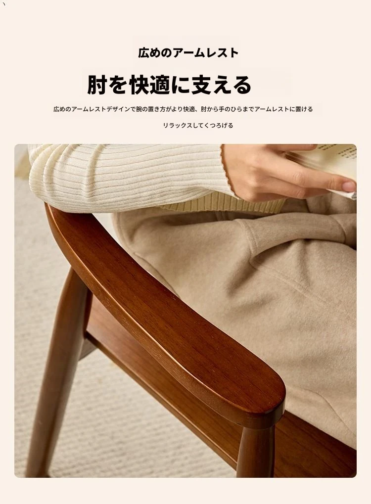 北欧風の天然木製ダイニングチェア|広島シュメイトのアームチェア|モダンでシンプル、リラックスできるカフェスタイルの家庭用椅子!
