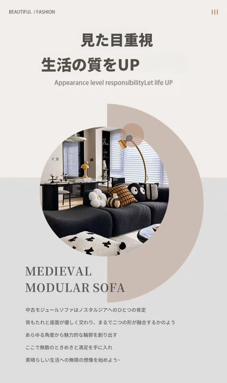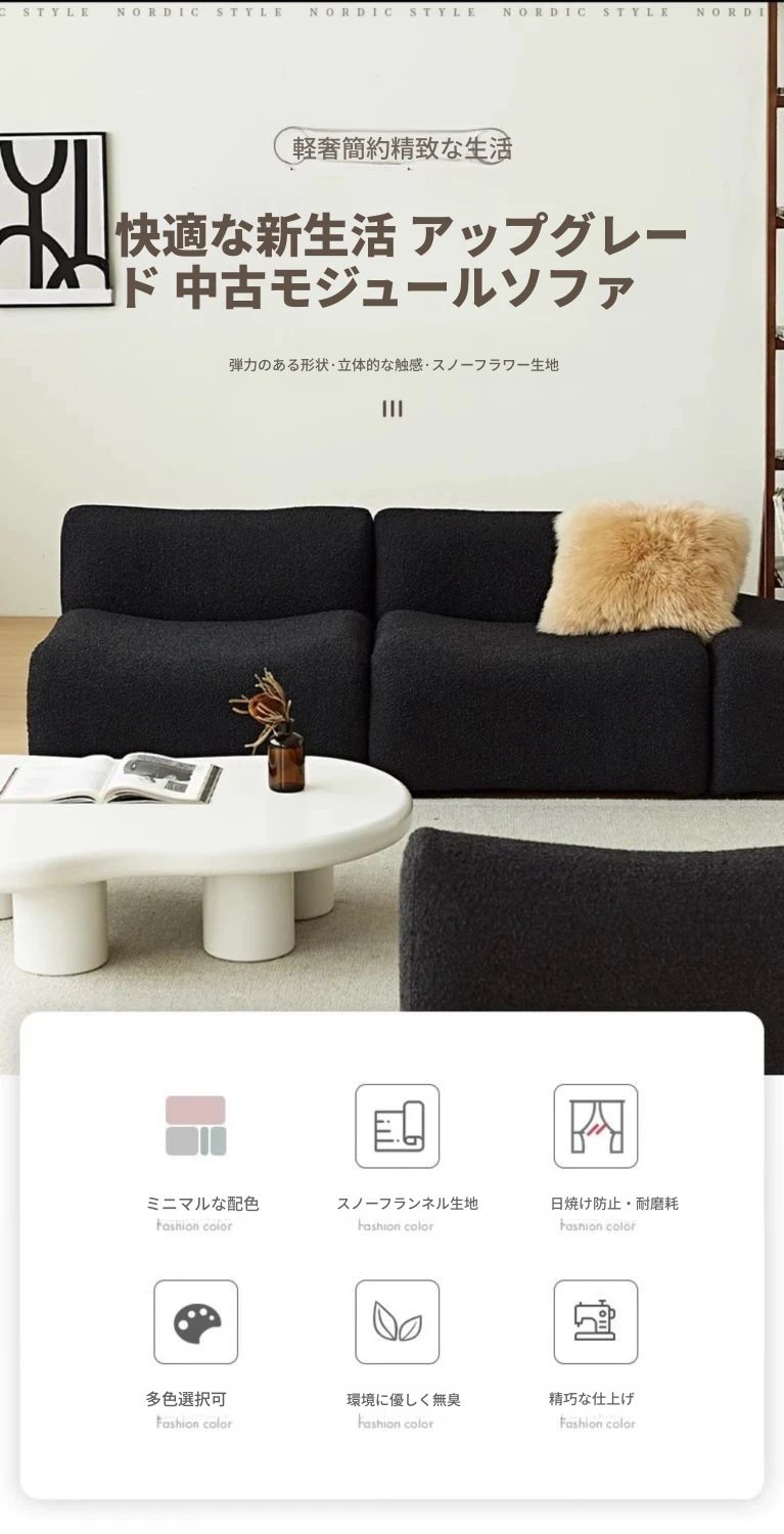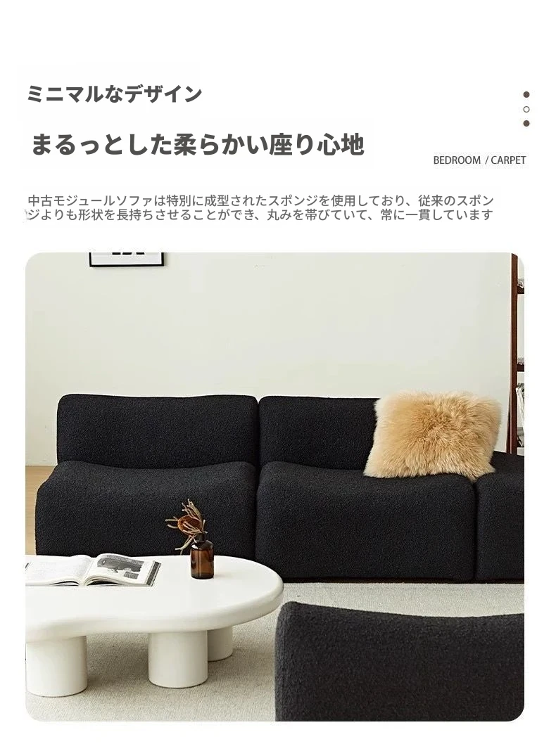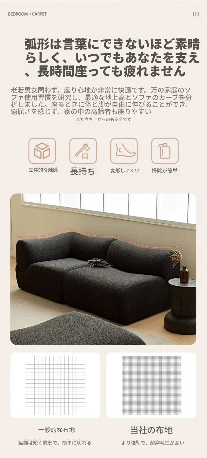 レトロな布製アーチ型モジュラーソファ - 羊毛のようなフワフワ感とクリエイティブなデザインで、竹のような柔らかなラインを持つ快適なリビングルーム用ソファ。リラックスしたひとときをお楽しみください!