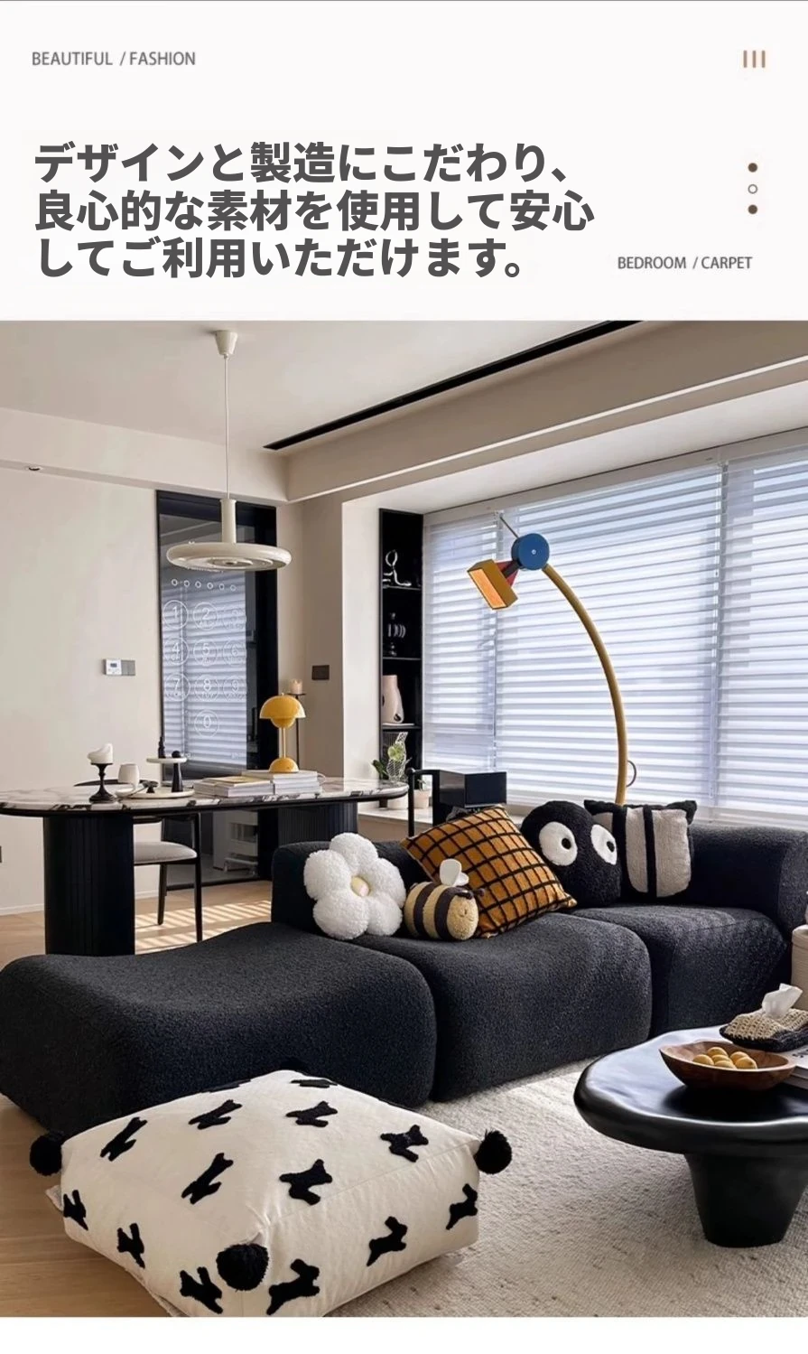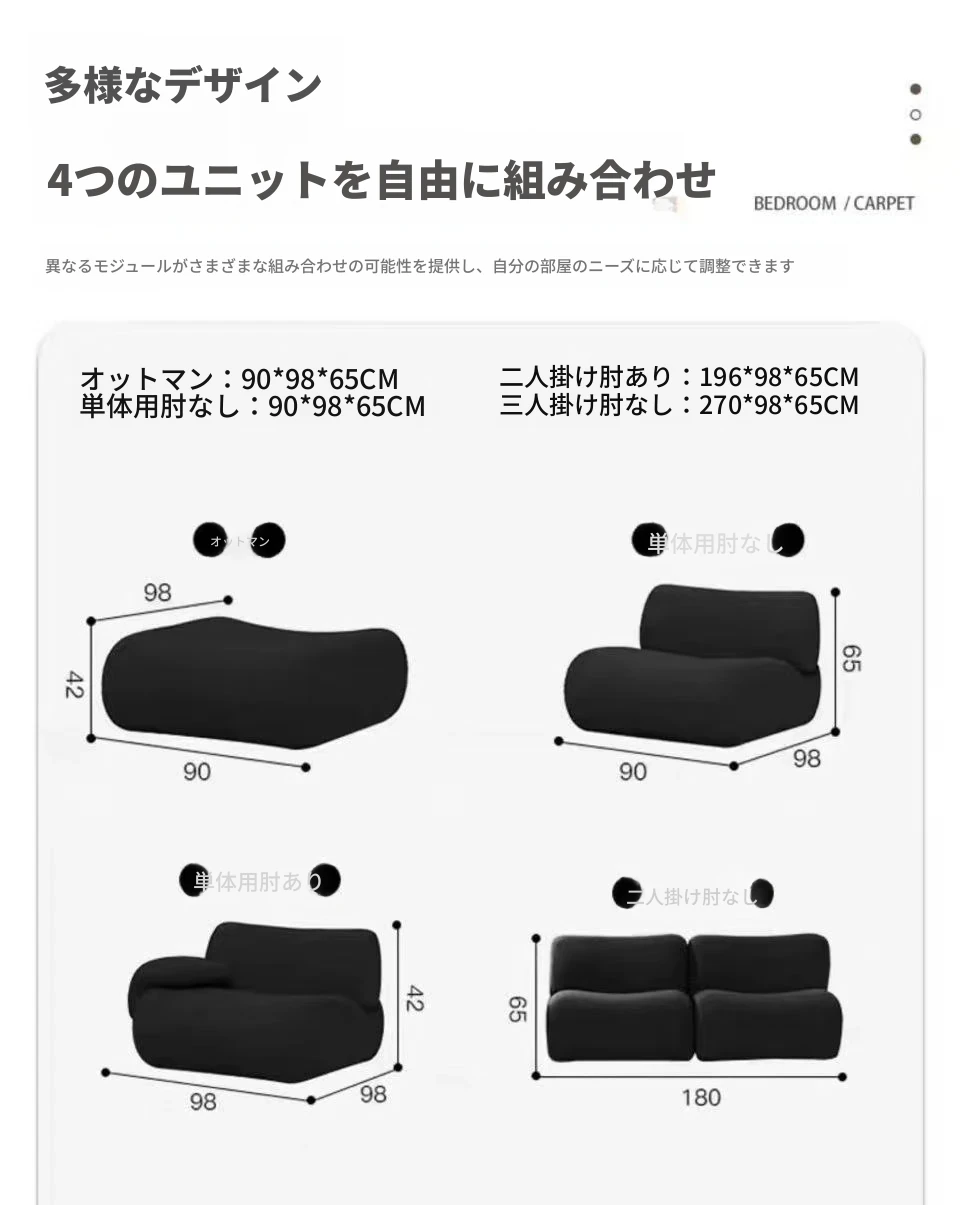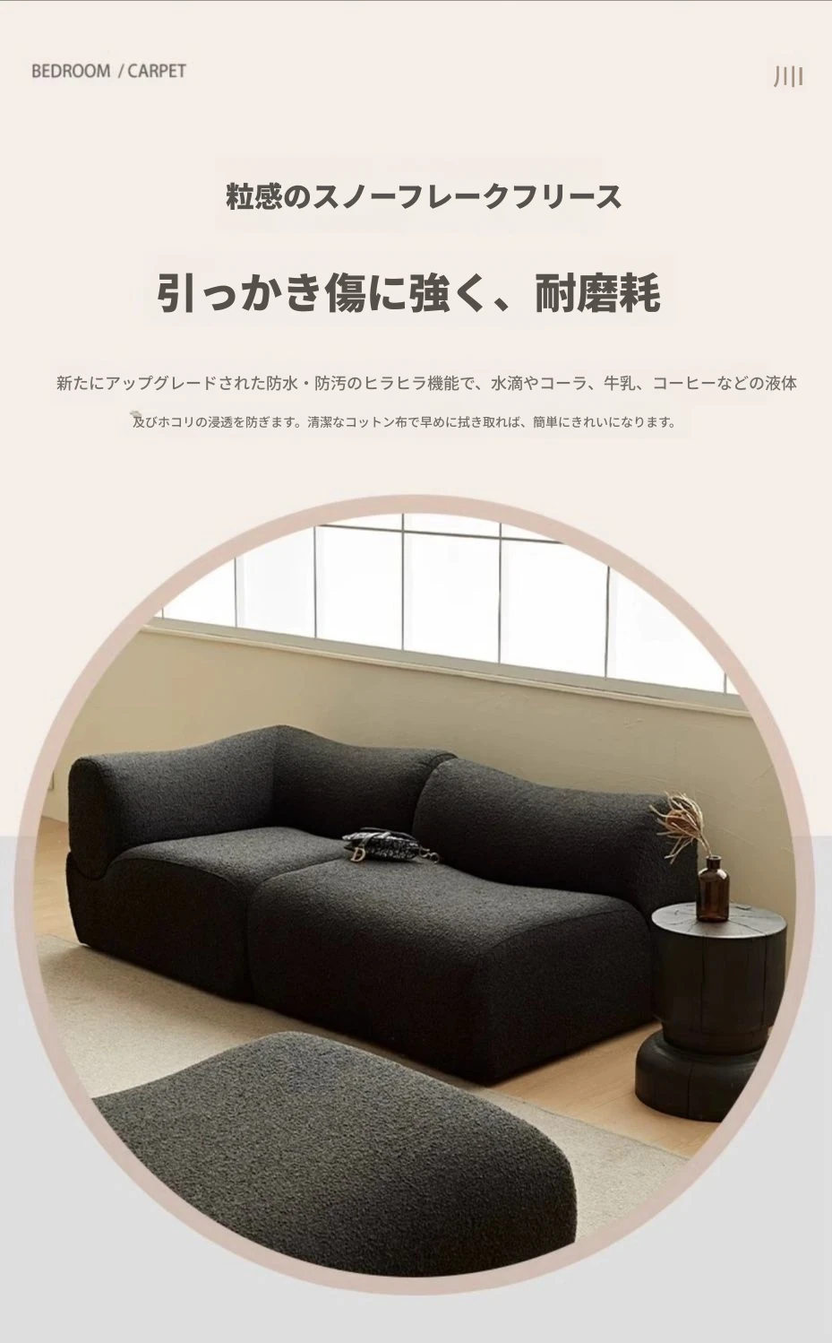 レトロな布製アーチ型モジュラーソファ - 羊毛のようなフワフワ感とクリエイティブなデザインで、竹のような柔らかなラインを持つ快適なリビングルーム用ソファ。リラックスしたひとときをお楽しみください!