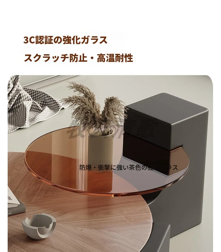 【90CMクルミのパッチワーク工芸コーヒーテーブル+3Cガラスサイドテーブル】