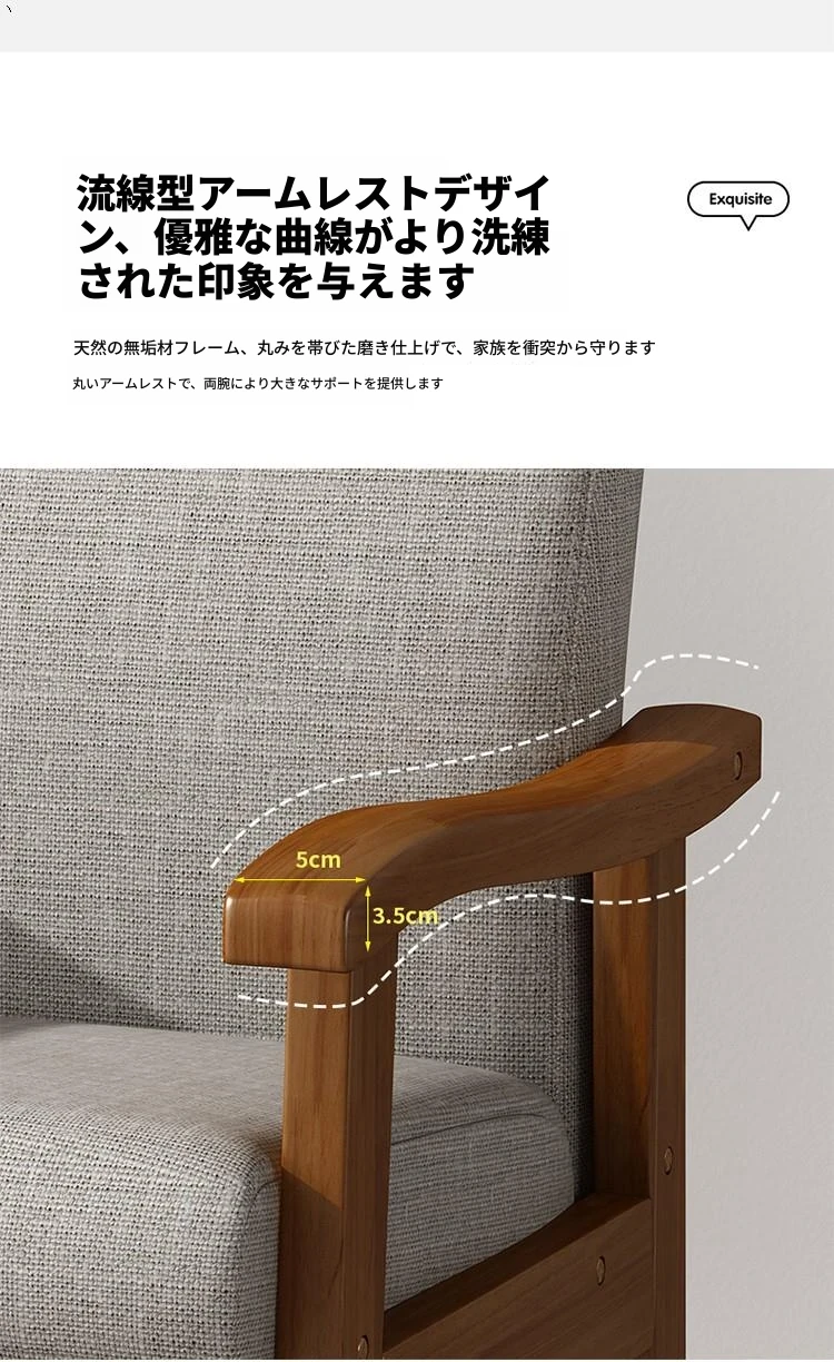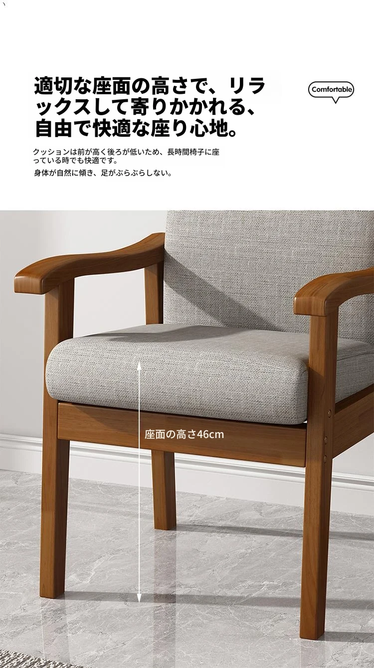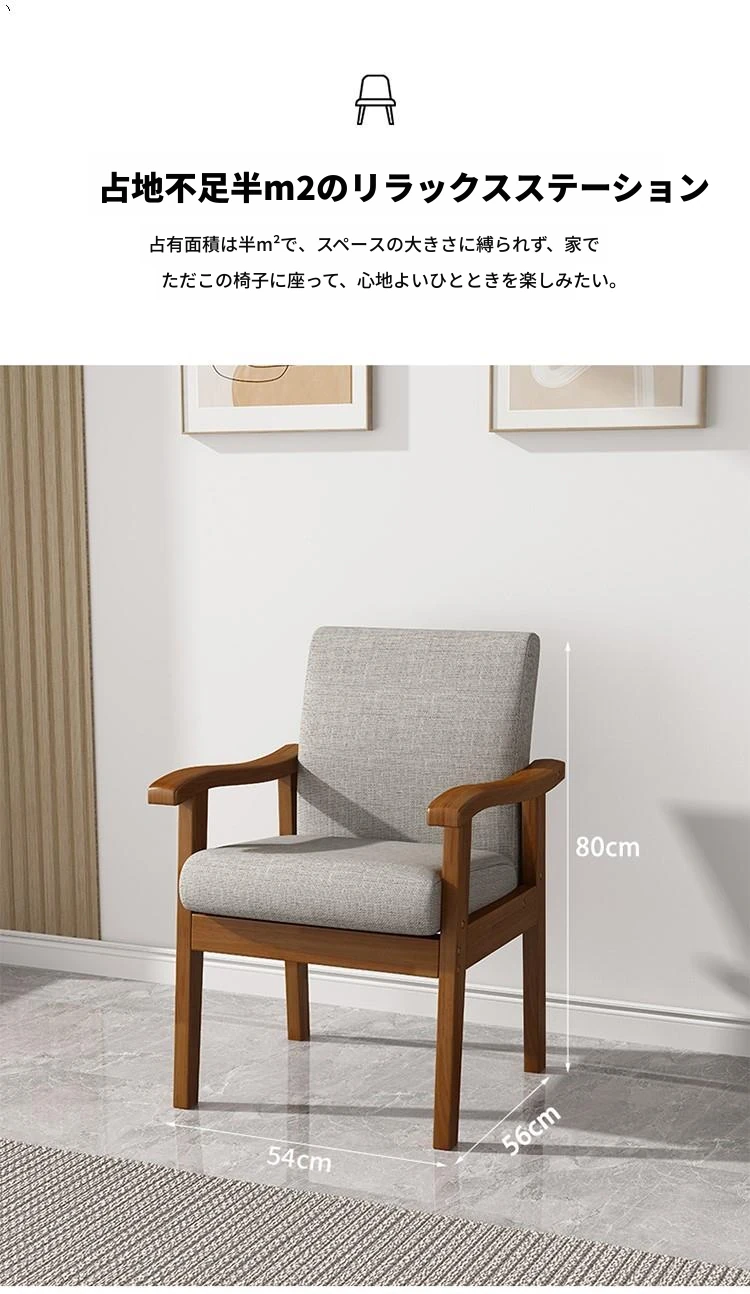 高級天然木製シングルソファー - 居心地抜群のリビングルーム用、書斎やバルコニーに最適!リラックスできるアームチェア、麻雀や高齢者向けにもおすすめです。