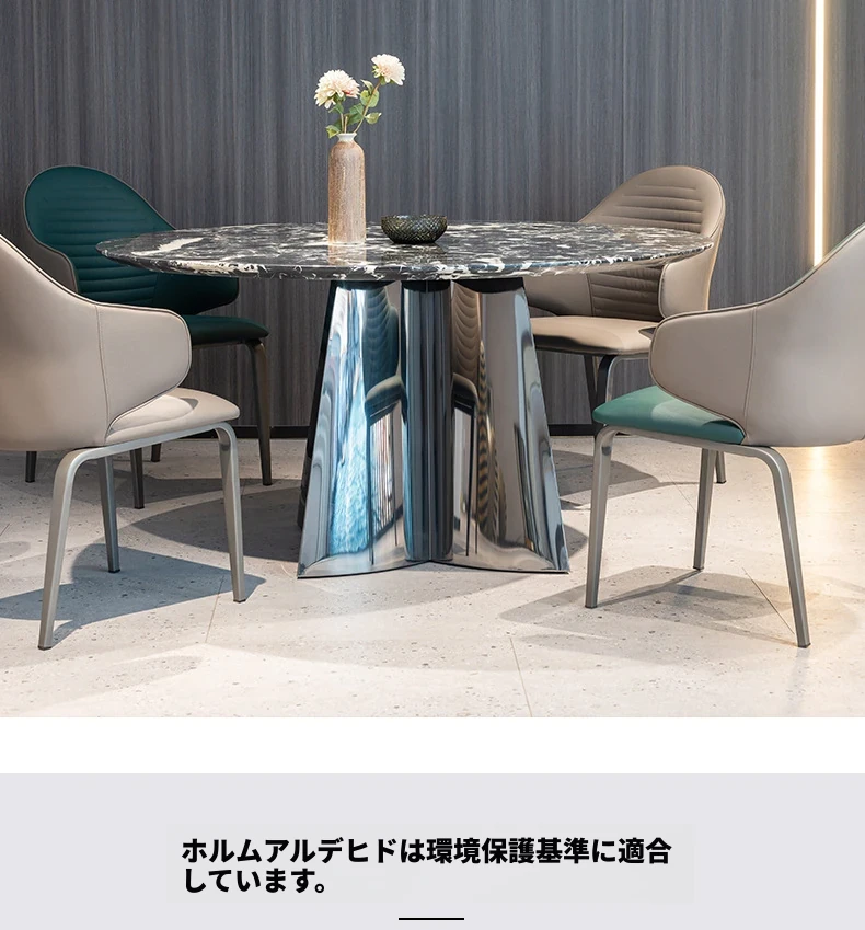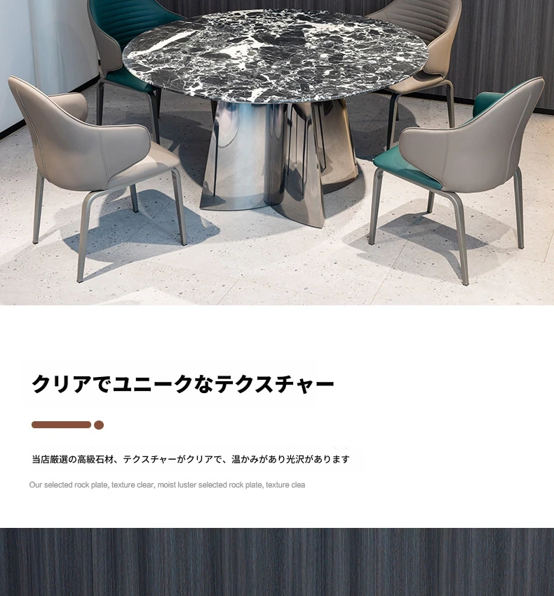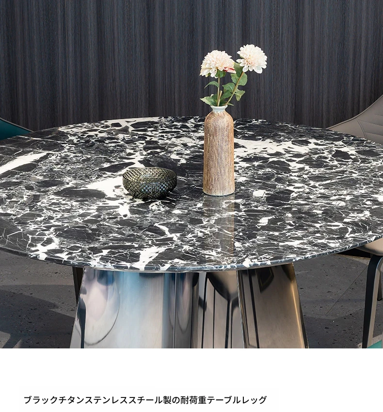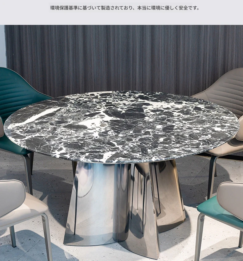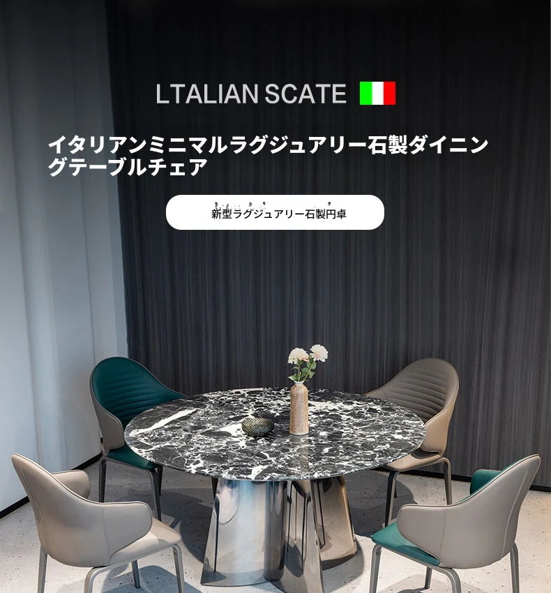 新作!シンプルで洗練されたイタリアンスタイルの大理石ダイニングテーブル&チェアセット - 小さなスペースにもぴったり!軽やかなラグジュアリー感を演出する円形テーブルで、食事を楽しむひとときを。