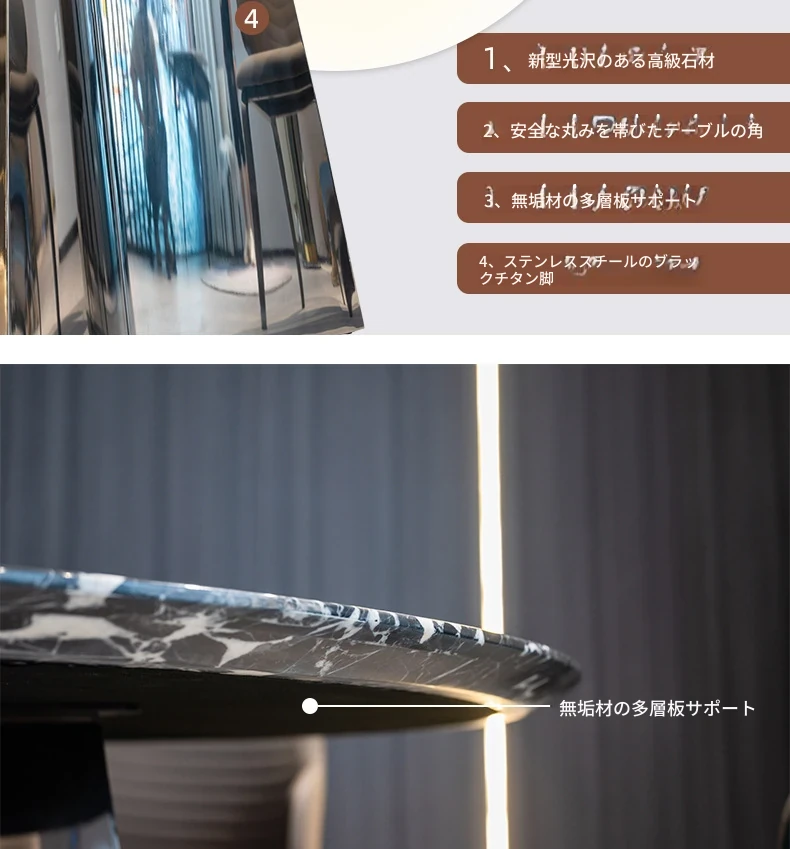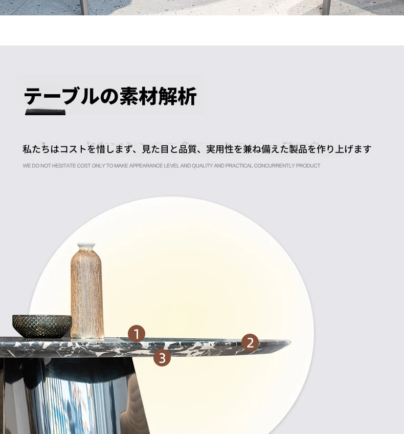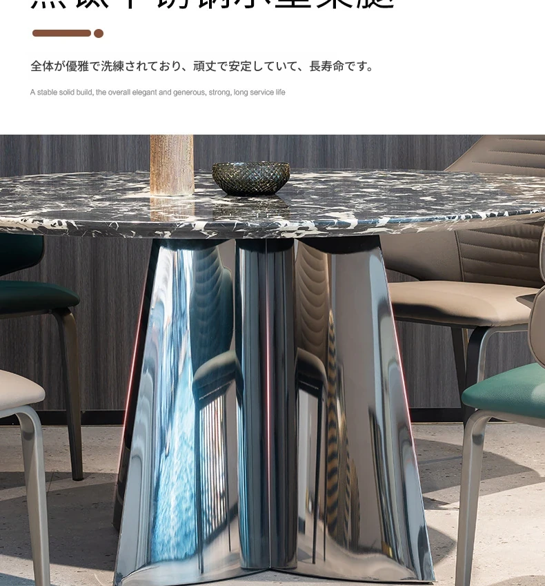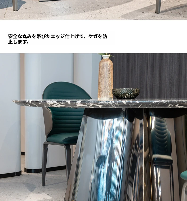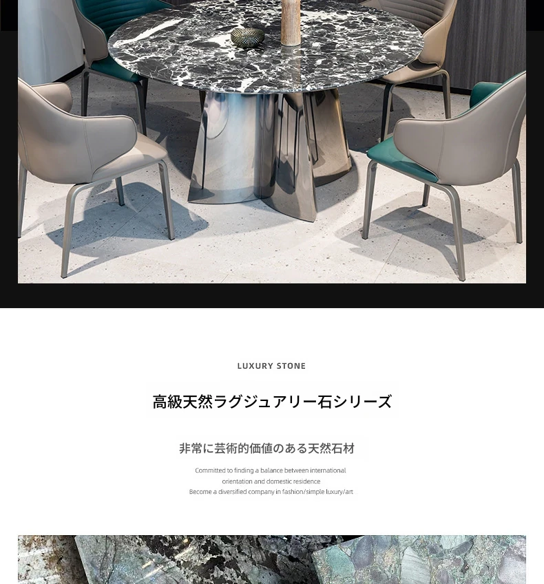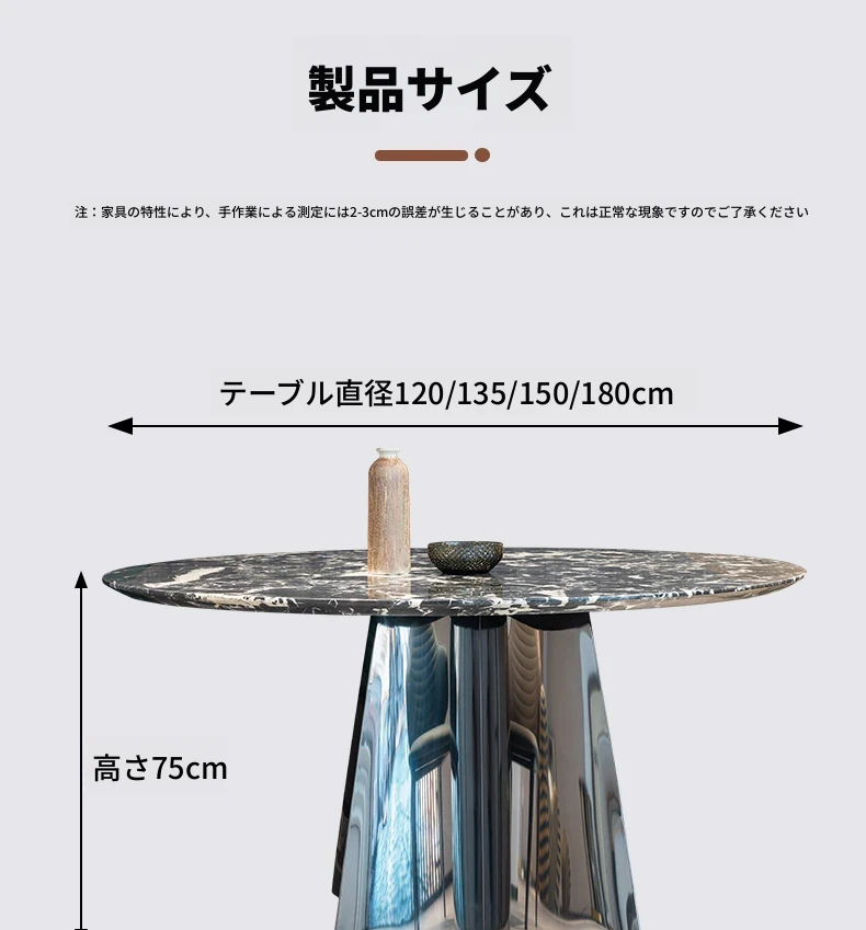 新作!シンプルで洗練されたイタリアンスタイルの大理石ダイニングテーブル&チェアセット - 小さなスペースにもぴったり!軽やかなラグジュアリー感を演出する円形テーブルで、食事を楽しむひとときを。