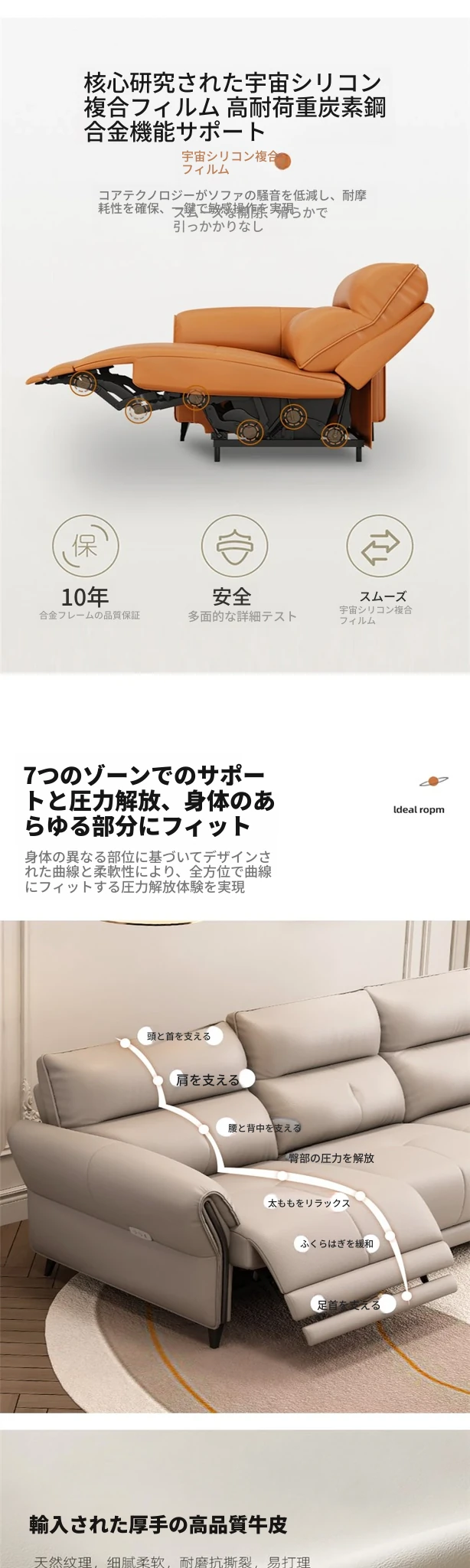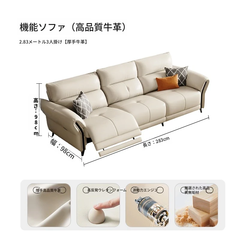 人気の電動ソファ!本革使用のイタリアンモダンデザイン、シンプルでスタイリッシュなリビングにぴったり。3人掛けで調節可能、伸縮機能付きのスペースキャビン風。快適な座り心地をぜひ体験してください!