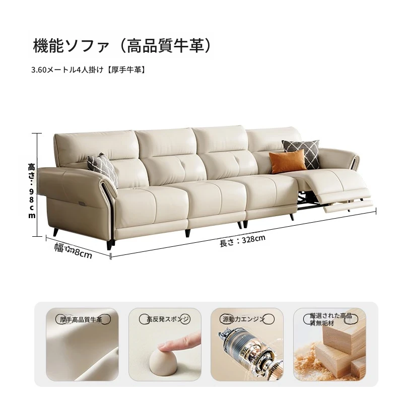 3.60メートル4人用【単機能】厚手トップグレインレザー