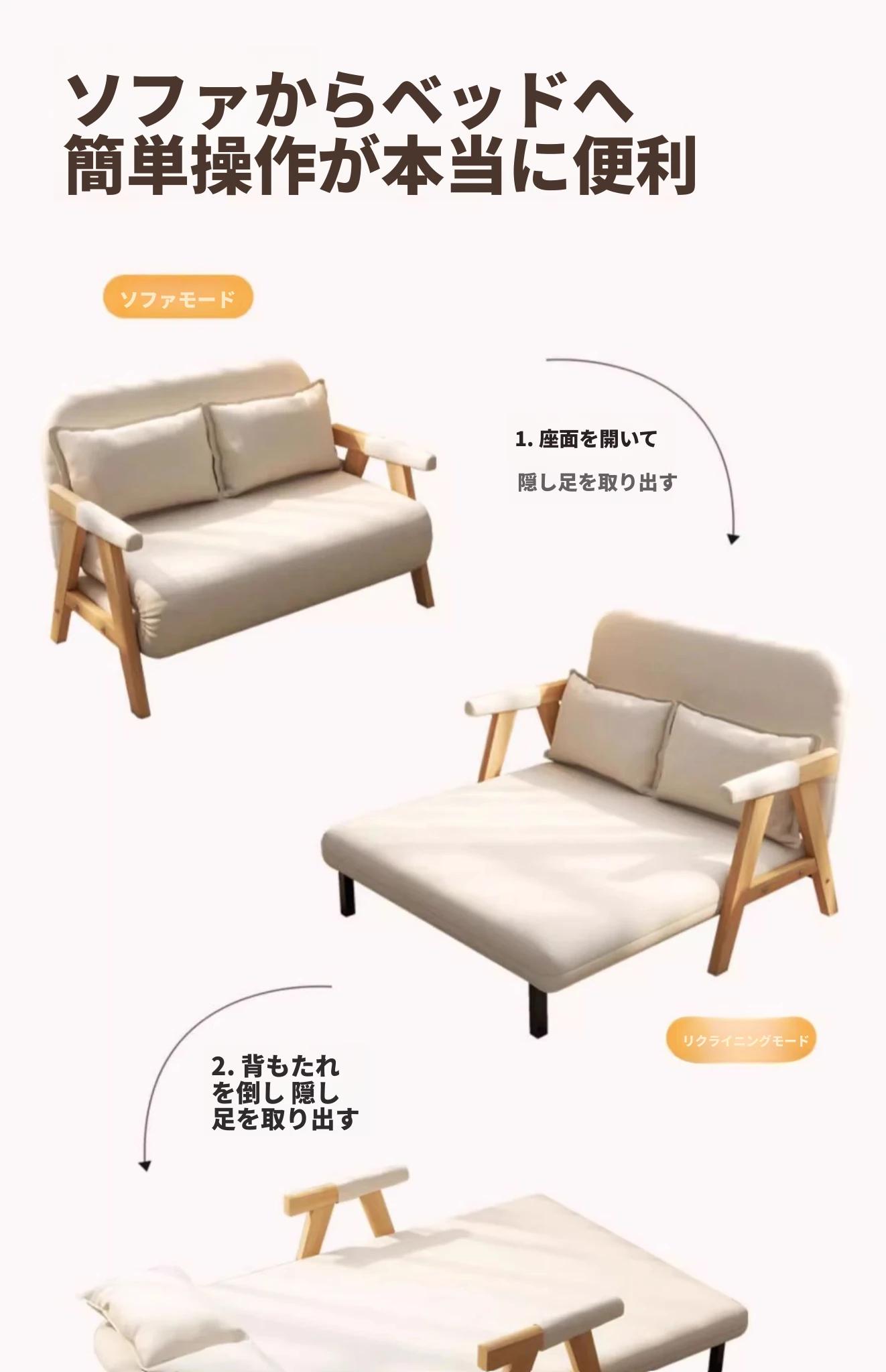 折りたたみ2Wayソファベッド - 小型住宅に最適!楽々折りたたみ可能なシングル&ダブルサイズ、リビングルームにぴったりの快適な空間を提供します。あなたのライフスタイルに合わせた柔軟な使い方が魅力!
