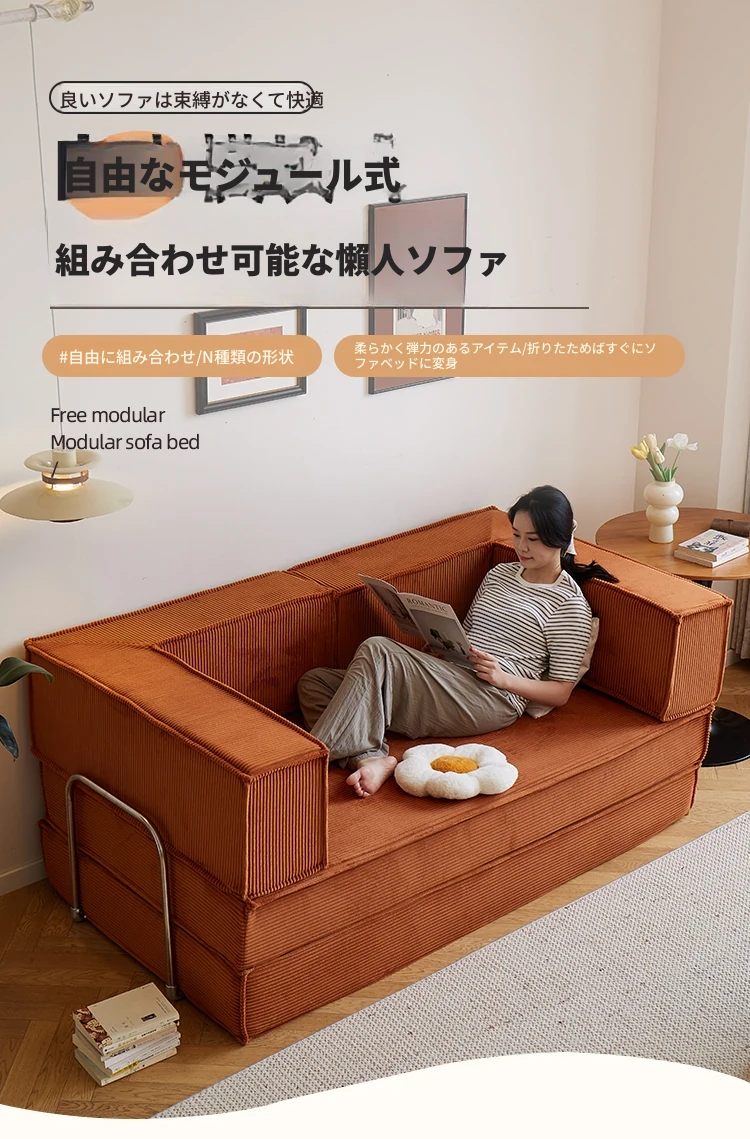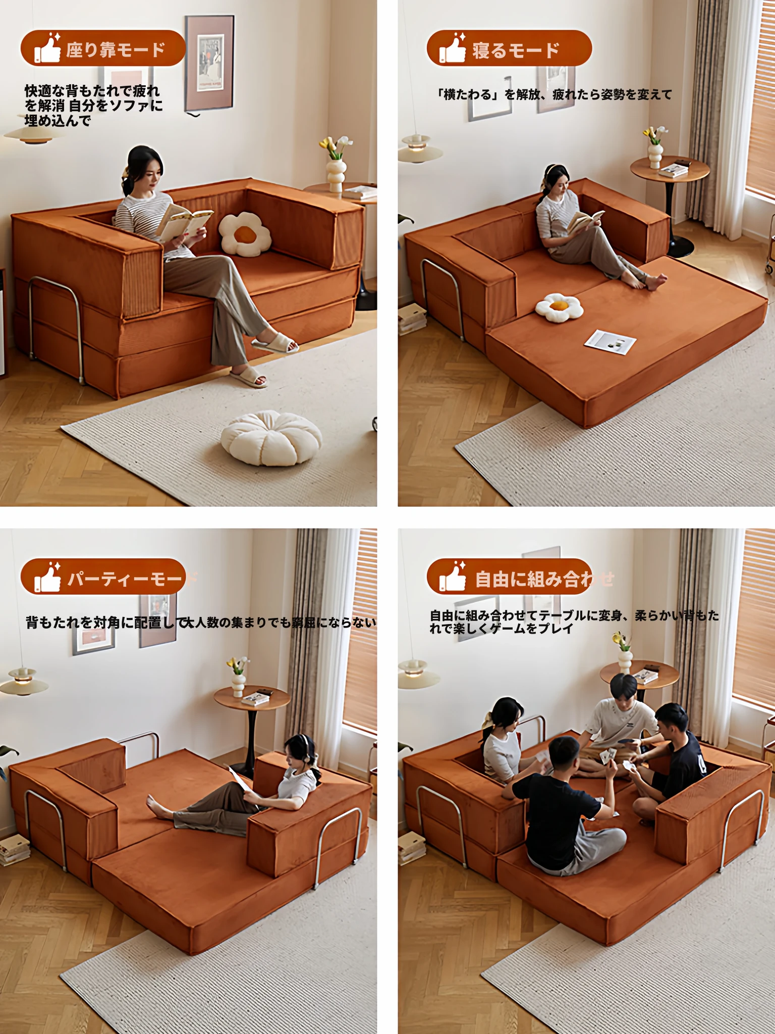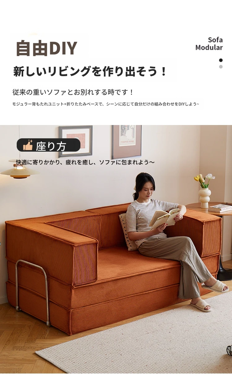 リラックスソファ|寝転びやすくて快適な小型住宅向け|リビングや畳スペースにぴったり!自由に組み合わせ可能なモジュール式ファブリックソファで、自分だけの癒し空間を創造しよう!