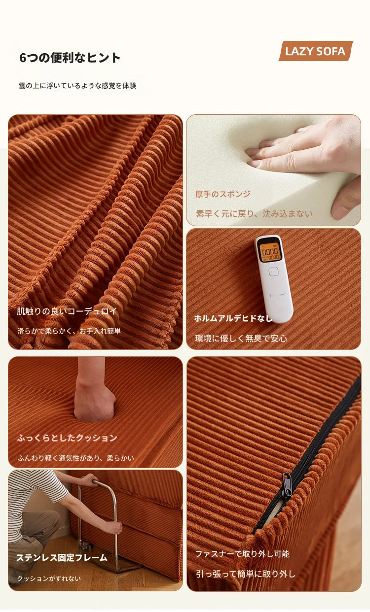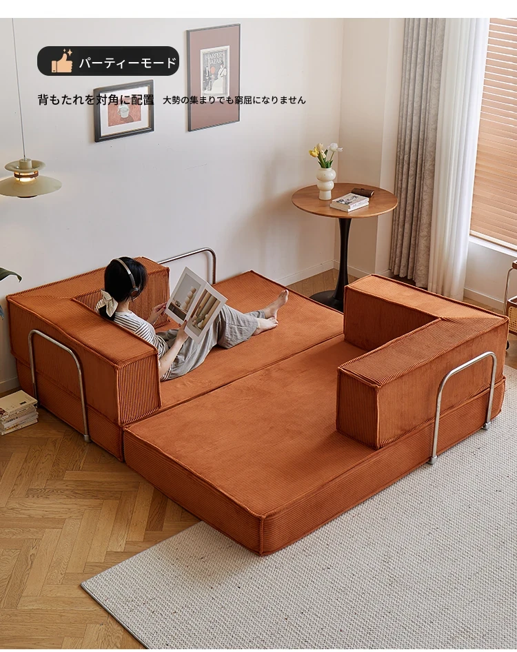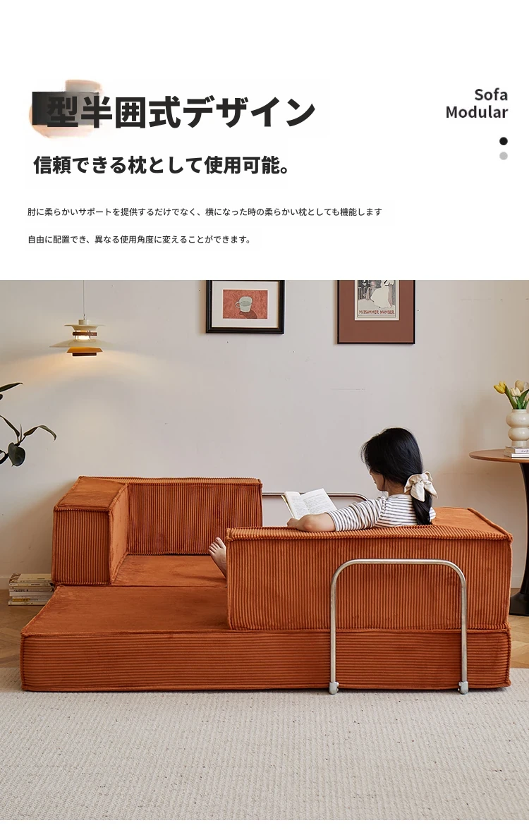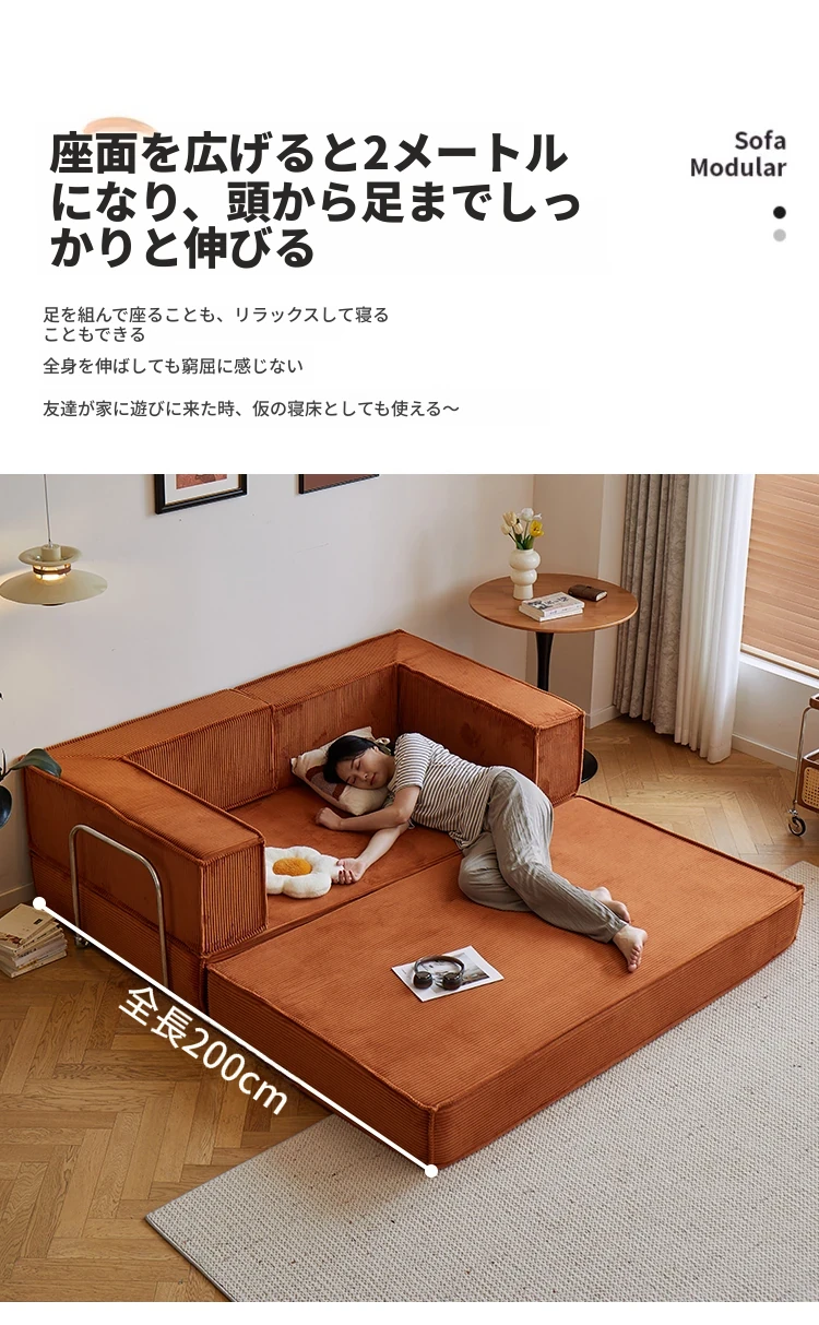 リラックスソファ|寝転びやすくて快適な小型住宅向け|リビングや畳スペースにぴったり!自由に組み合わせ可能なモジュール式ファブリックソファで、自分だけの癒し空間を創造しよう!