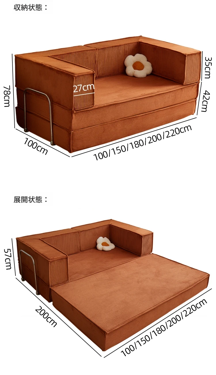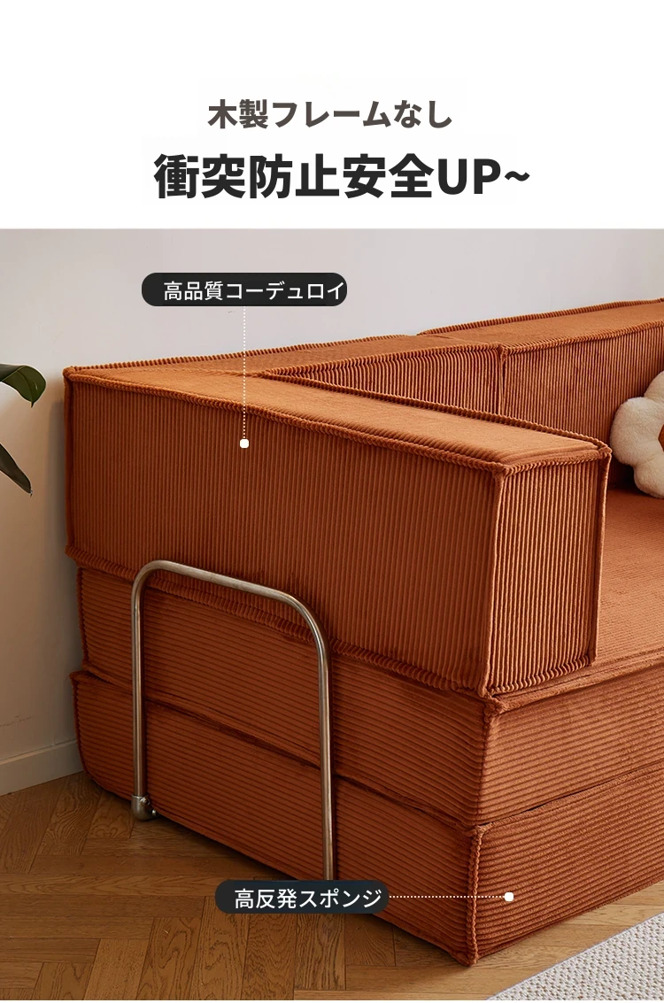 1.8m⭐ジンジャー色⭐肌触りの良いコーデュロイ【55D高弾性スポンジタイプ+304ステンレス】