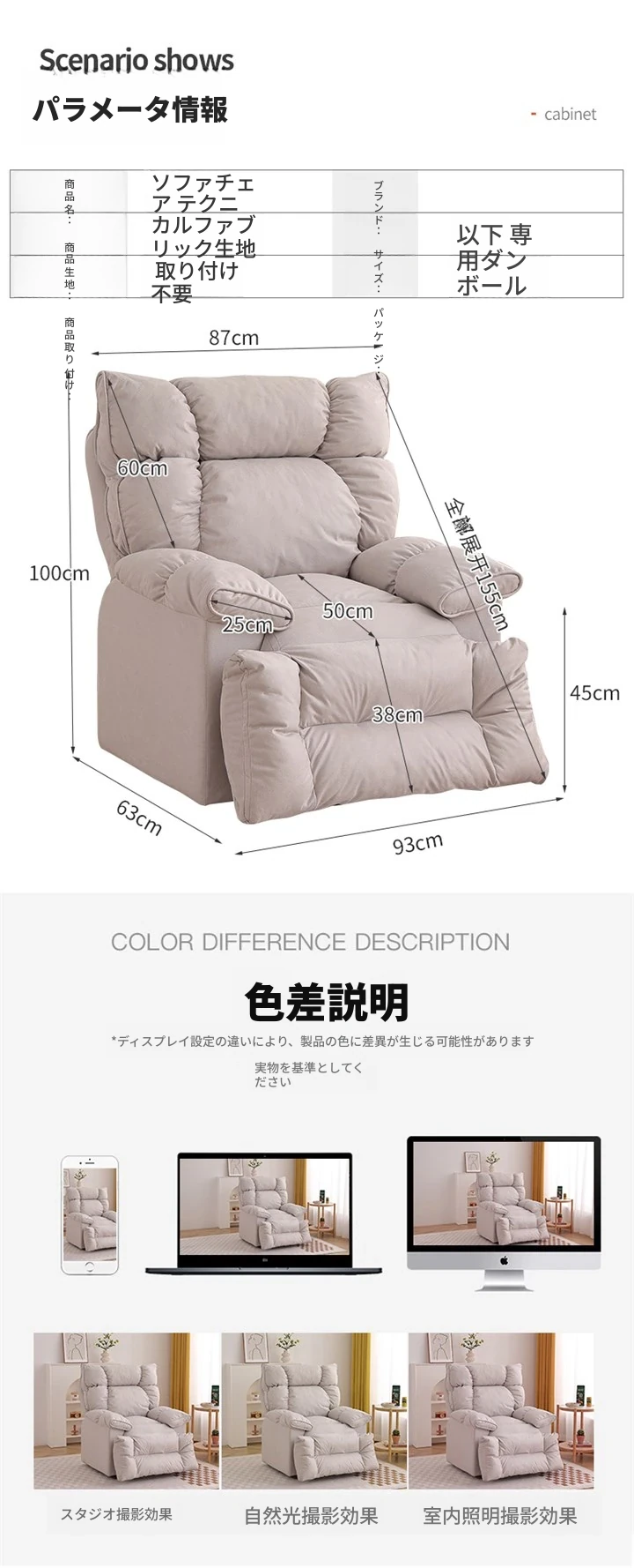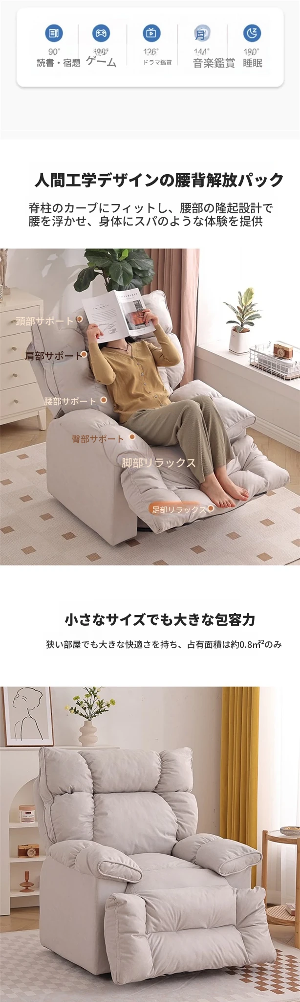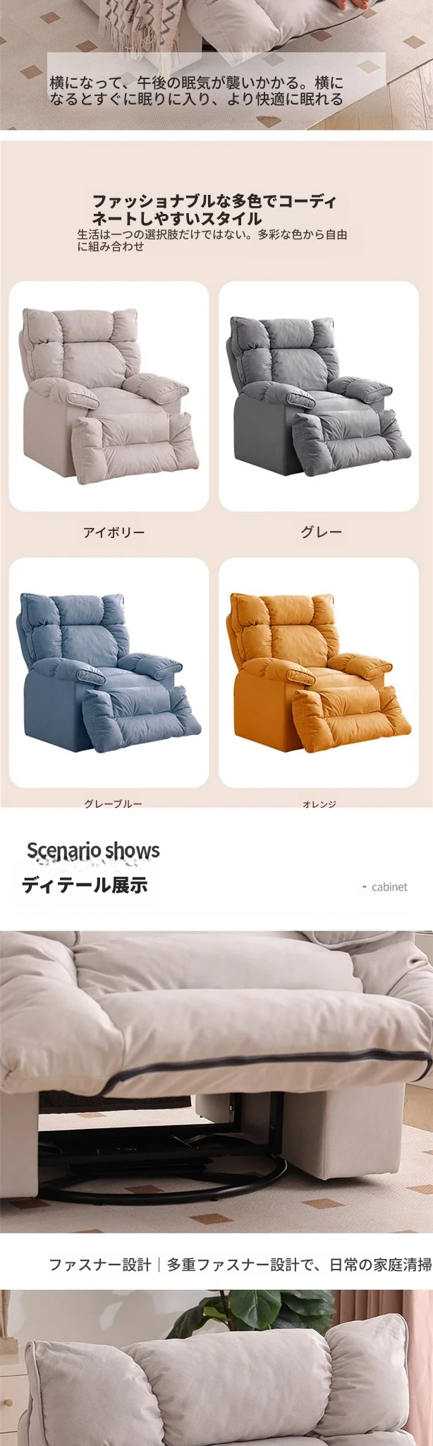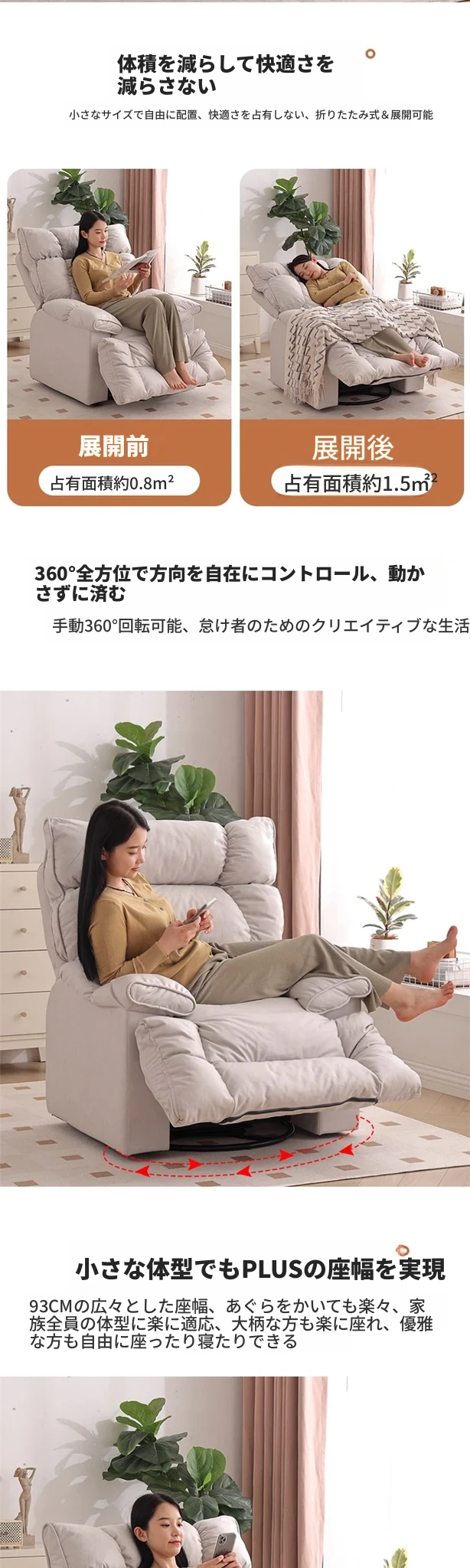 多機能リラックスソファ|寝る・くつろぐ・回転可能!|1人用小型ソファ|寝室・リビングに最適な休息空間を提供!
