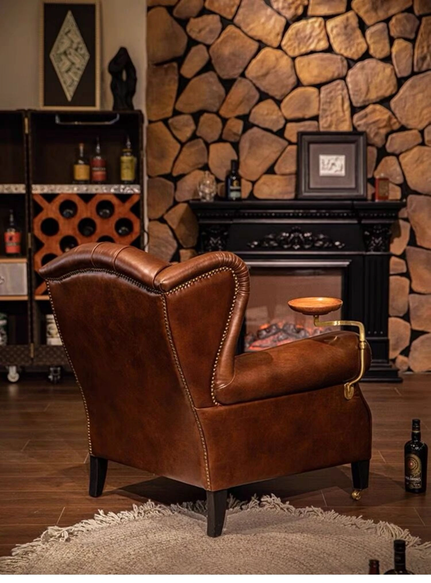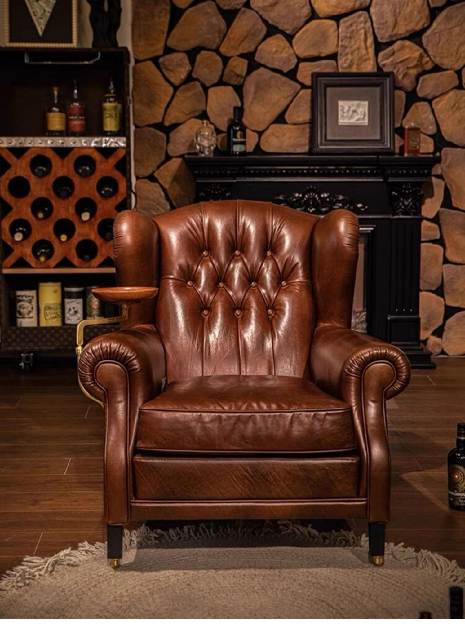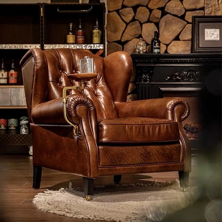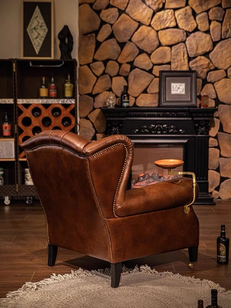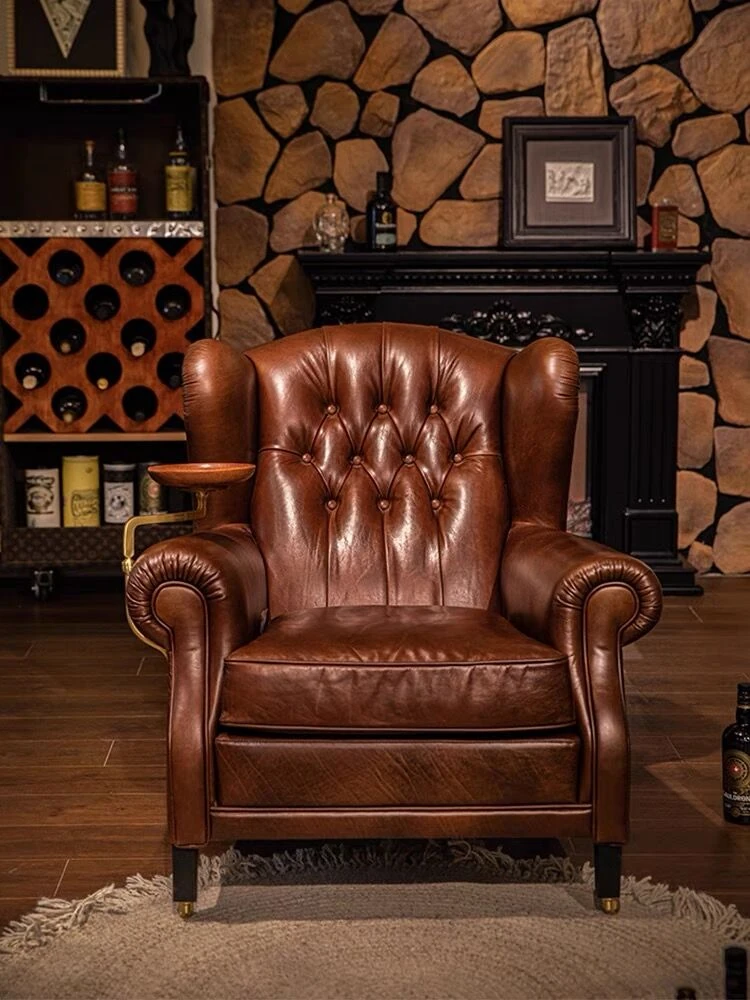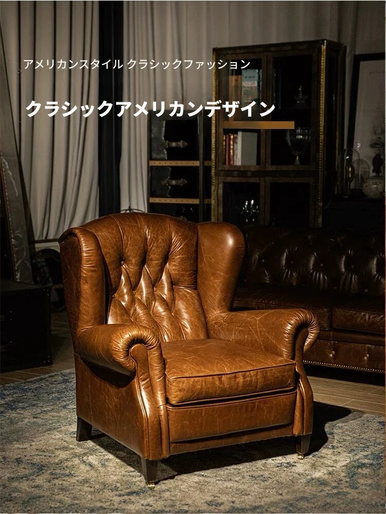 1919年風のヴィンテージシガーチェア - オイルワックスレザー製アメリカンレトロ虎の椅子!教父スタイルのリラックス一人用ソファで、シガーバーにぴったり。大人の贅沢な時間を演出します!