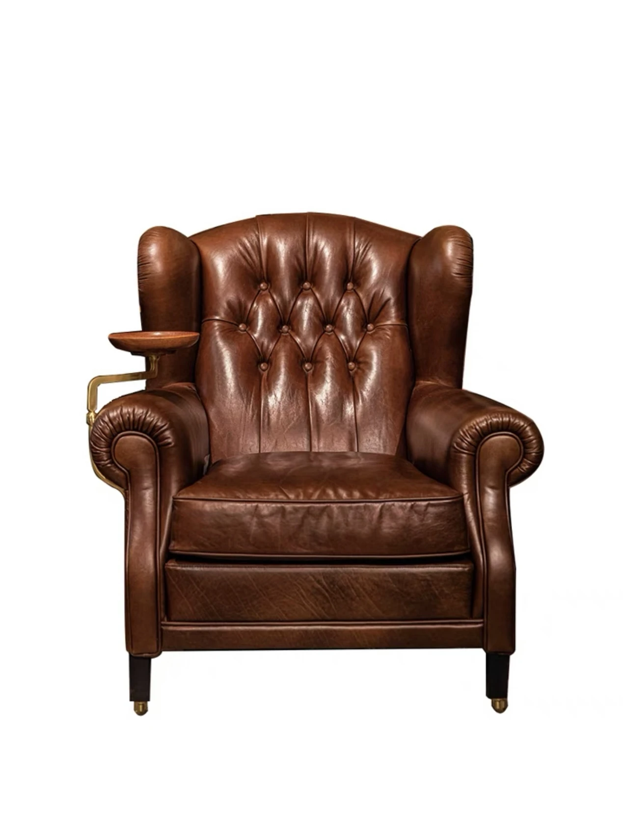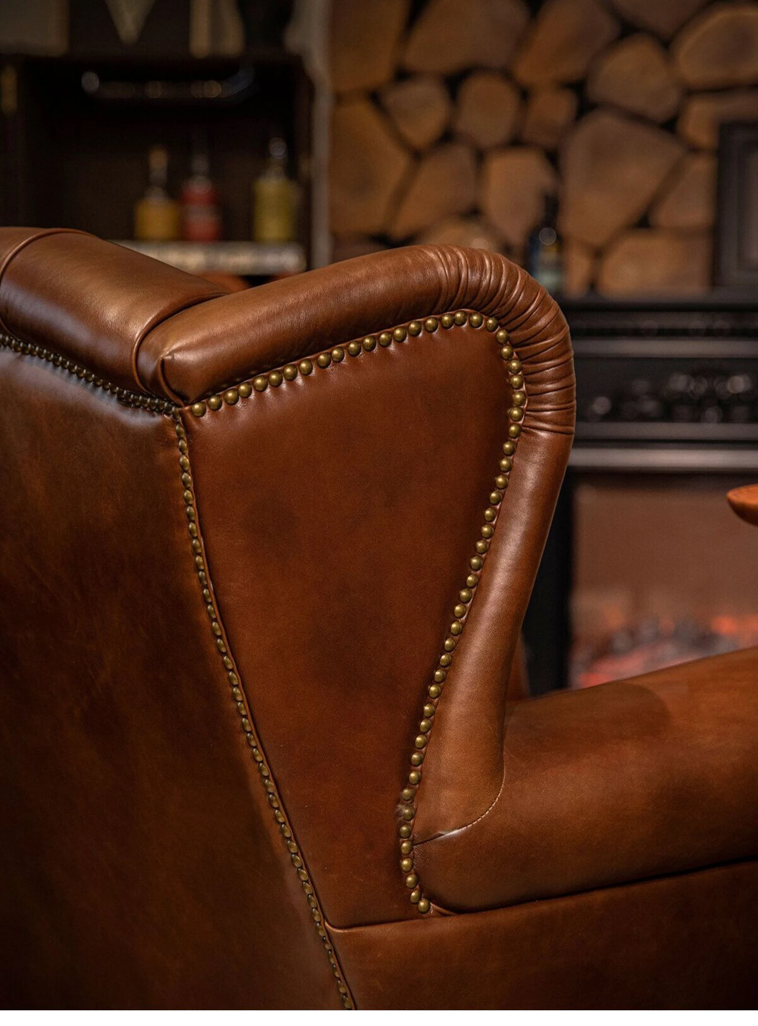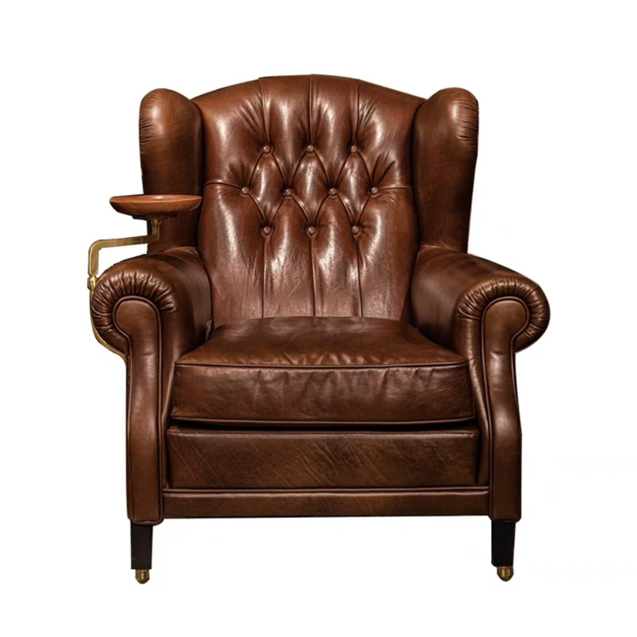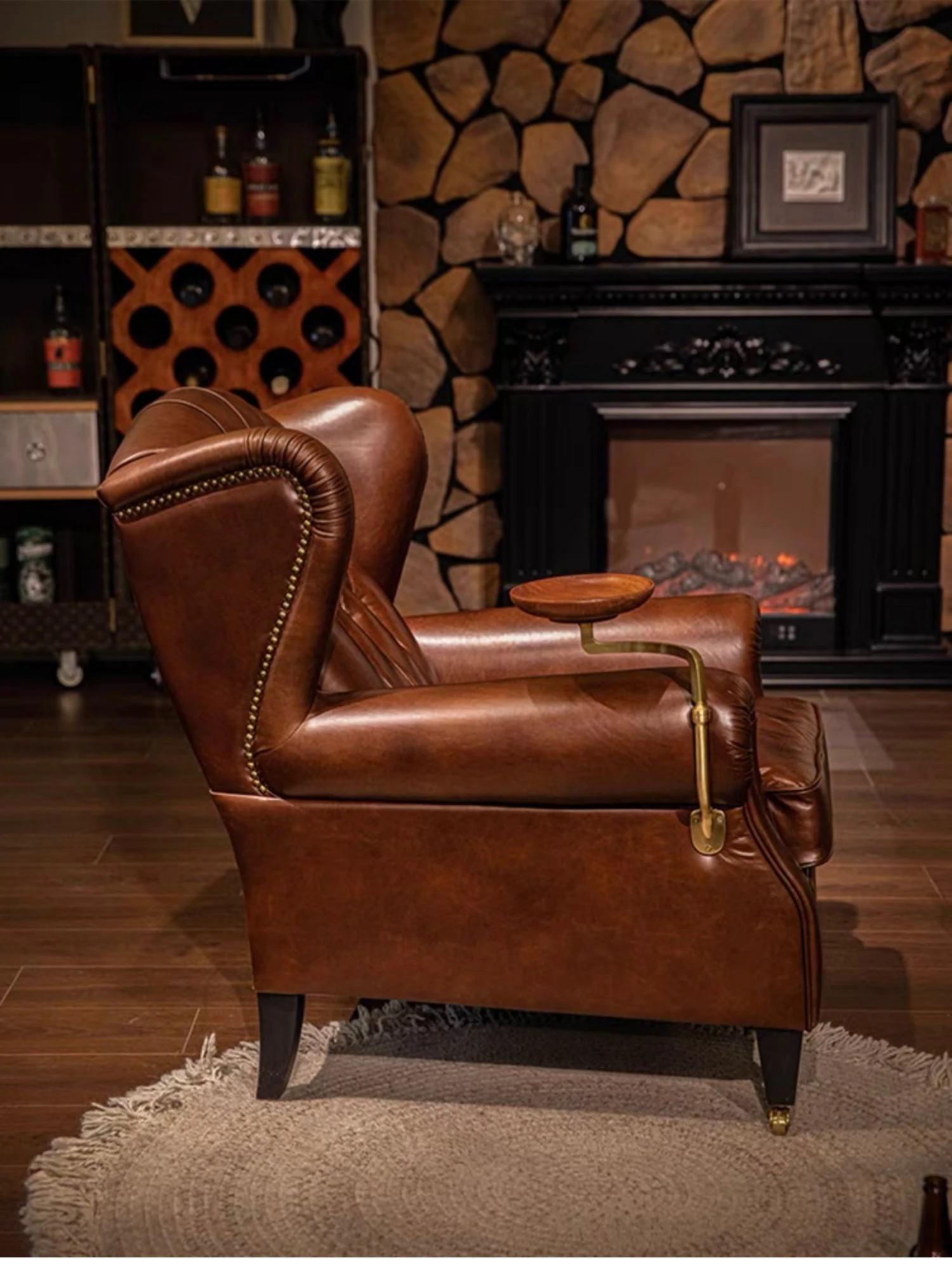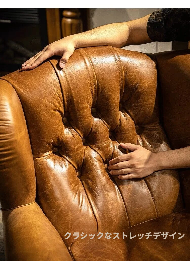 1919年風のヴィンテージシガーチェア - オイルワックスレザー製アメリカンレトロ虎の椅子!教父スタイルのリラックス一人用ソファで、シガーバーにぴったり。大人の贅沢な時間を演出します!