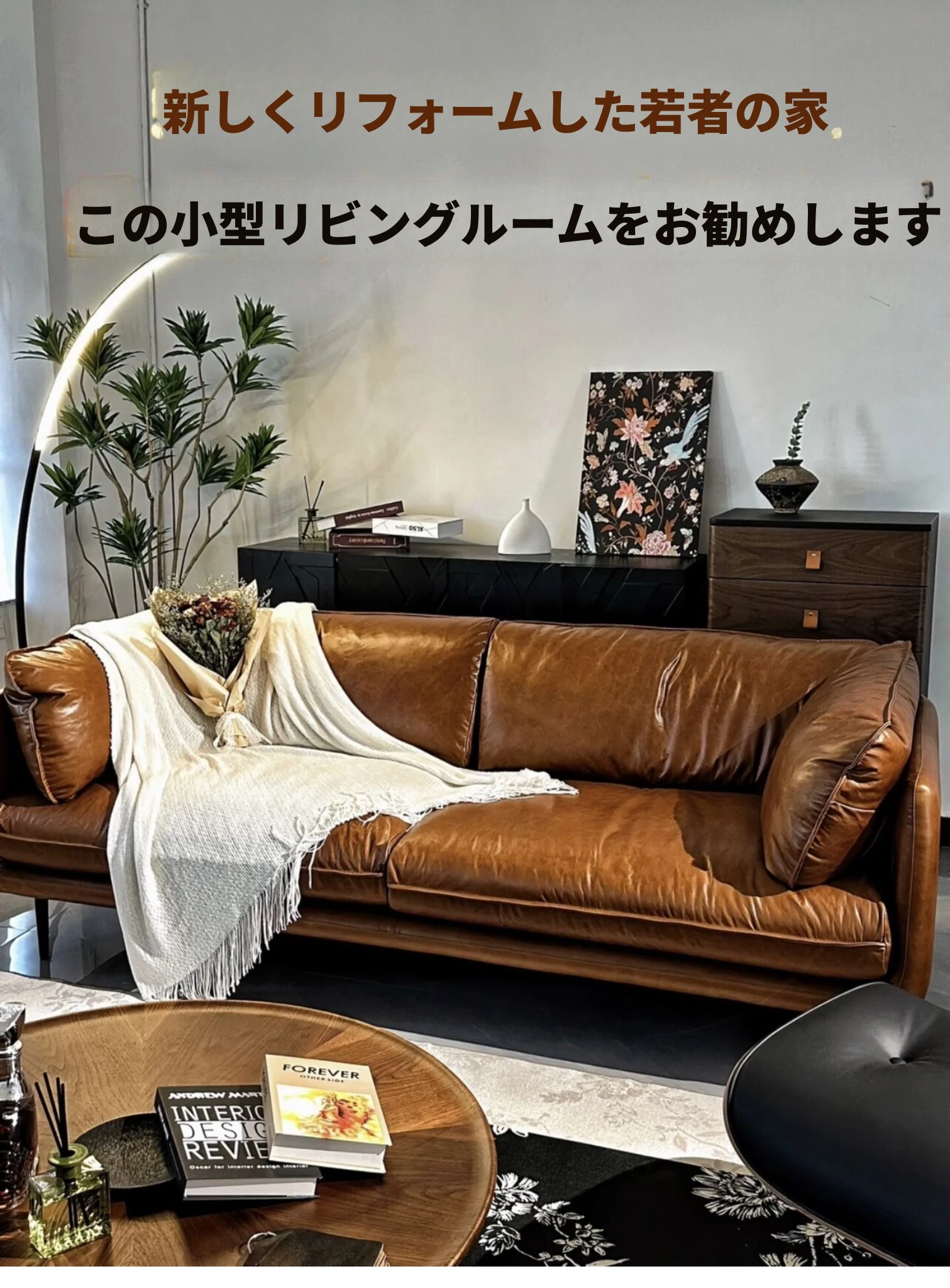 本革製ヴィンテージ風ブラックフレンチスタイルオイルワックスレザーソファー - モダンアメリカンデザイン、コンパクトな小部屋にも最適!優雅な雰囲気でお部屋を彩ります。