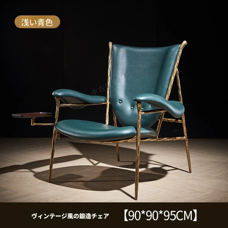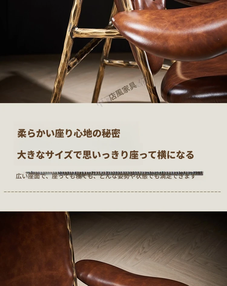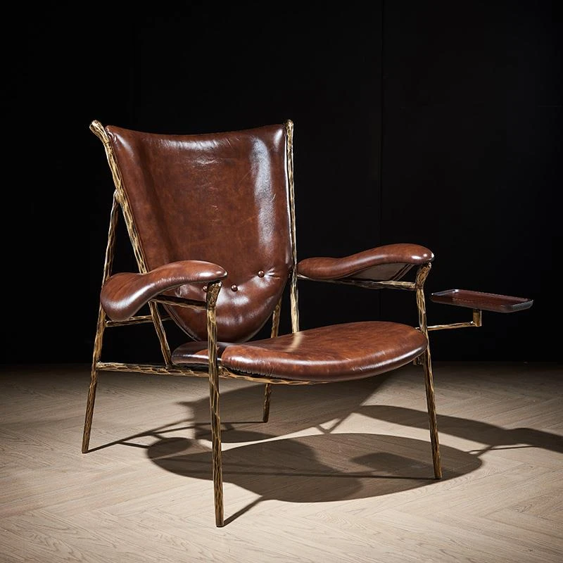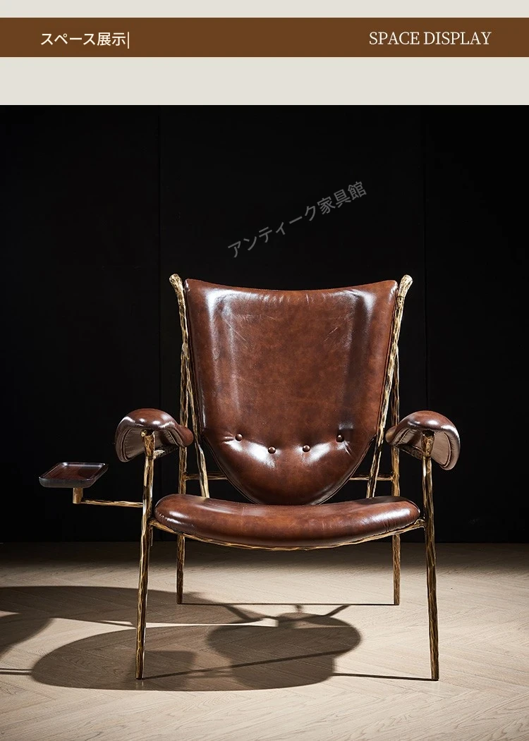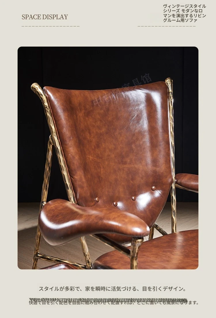 ヴィンテージ風のチーフチェア - デザイナーによる高級アメリカンスタイルのレトロなシガーバー用オイルレザーとアイアン製の一人掛けソファ。洗練されたデザインで、贅沢なひとときを演出します。