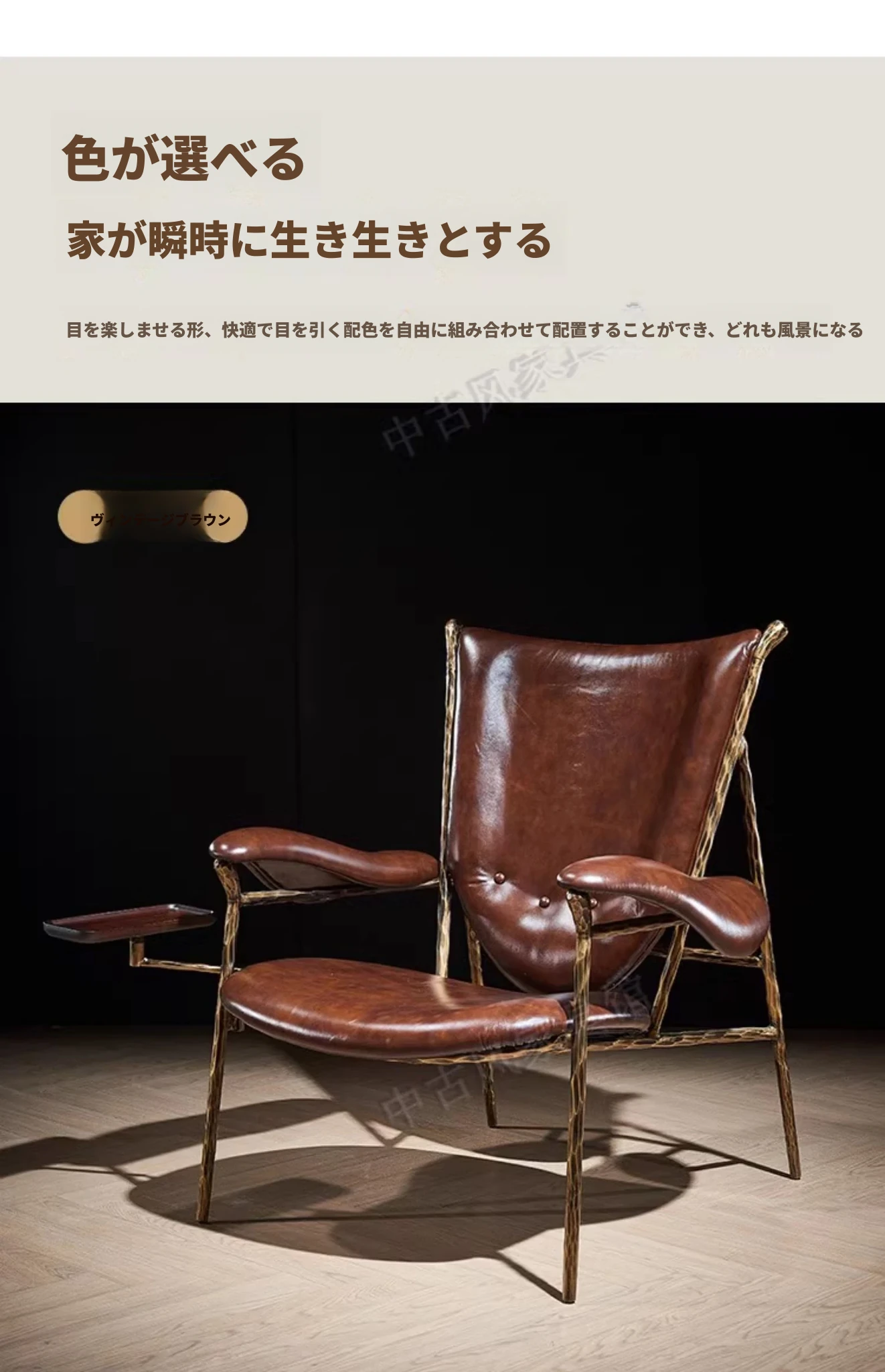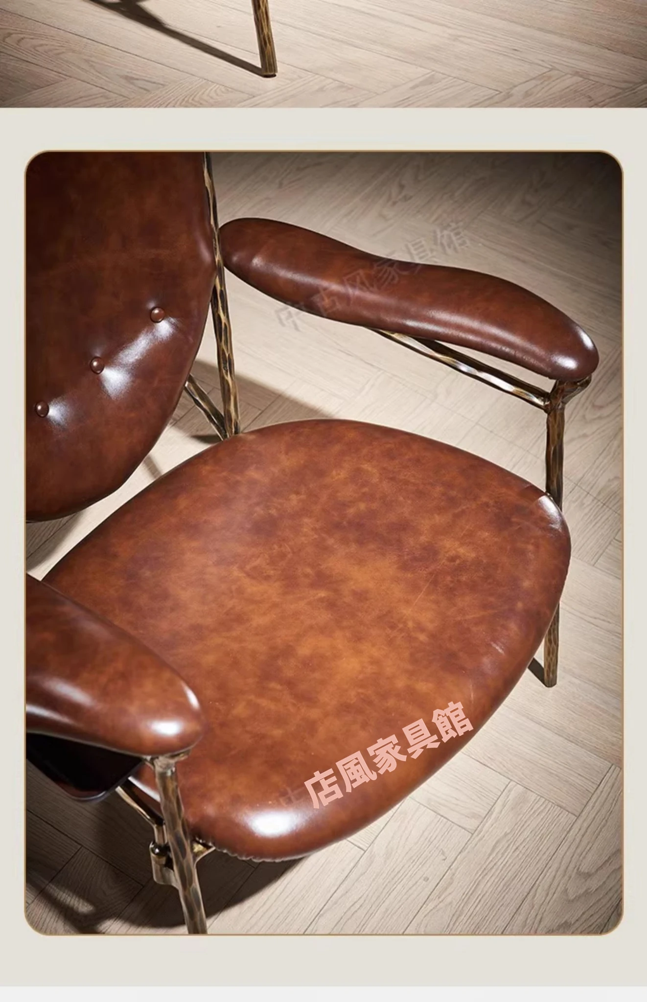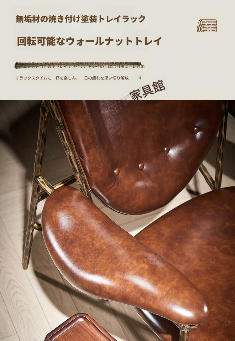 ヴィンテージ風のチーフチェア - デザイナーによる高級アメリカンスタイルのレトロなシガーバー用オイルレザーとアイアン製の一人掛けソファ。洗練されたデザインで、贅沢なひとときを演出します。