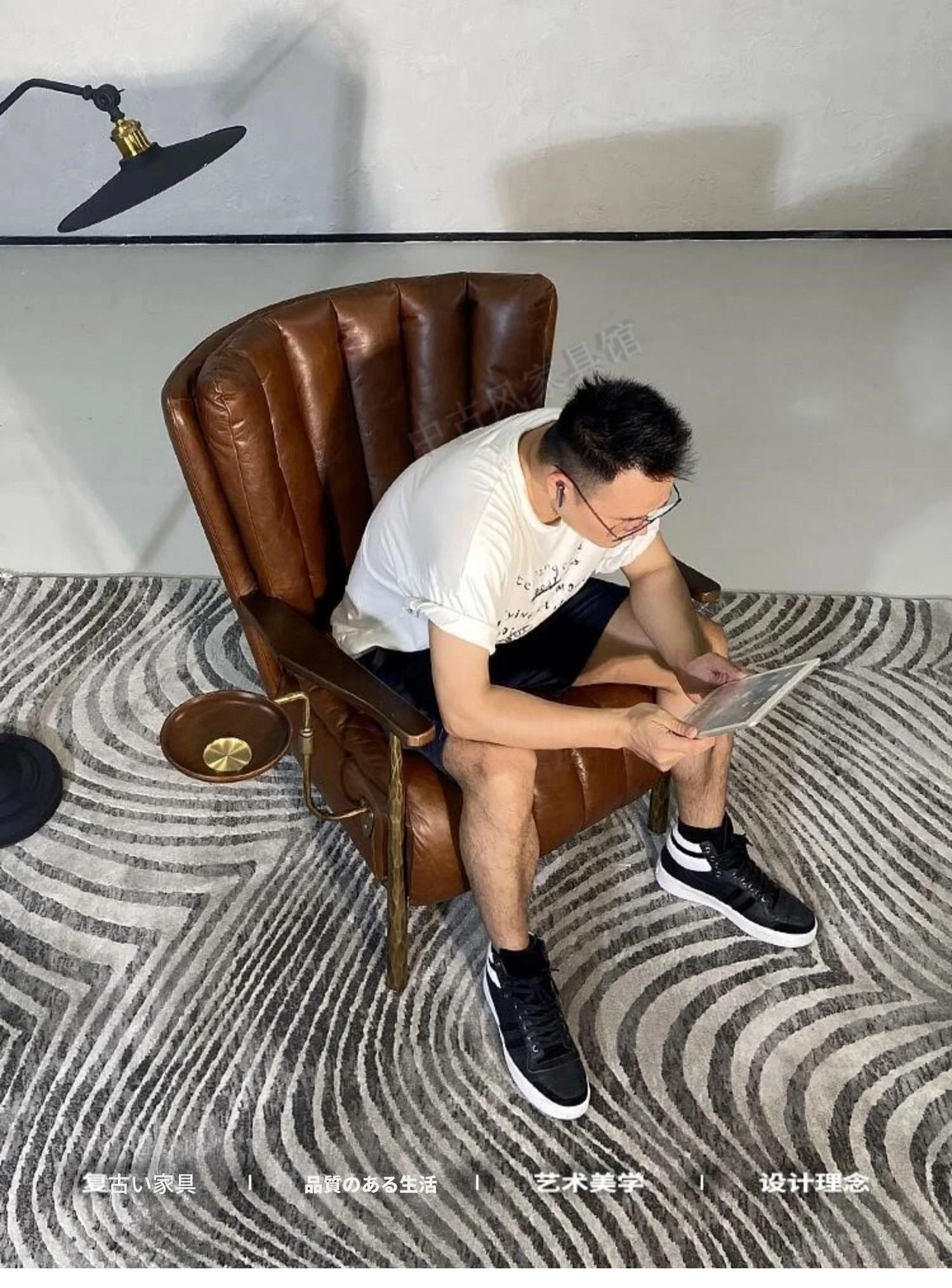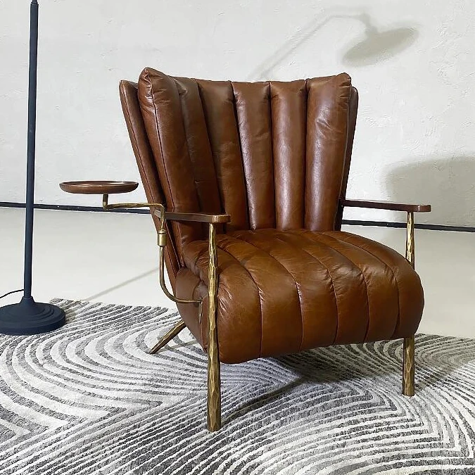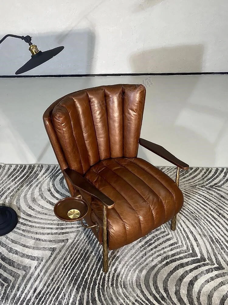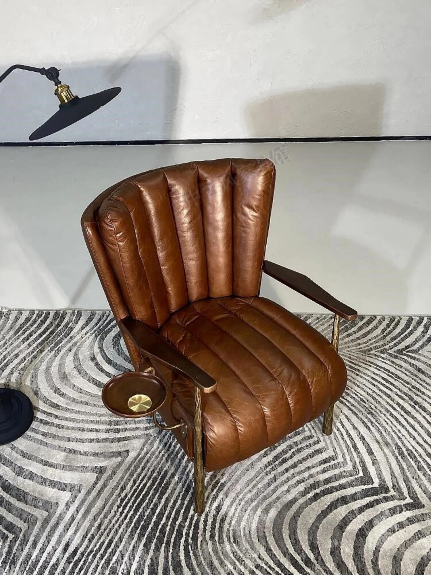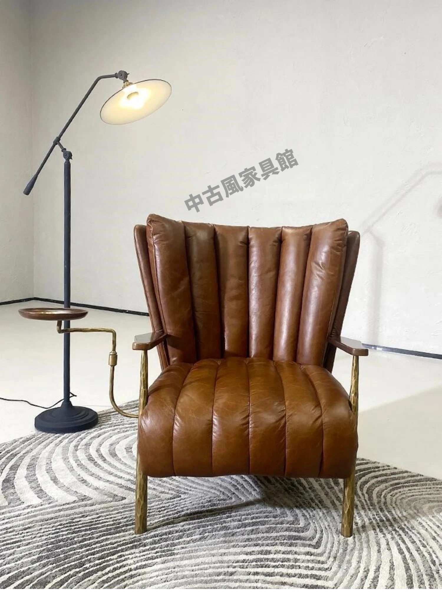 アンティーク風の鍛造シガーチェア、古色蒼然としたブラウンアイアンのトラチェア、レトロなオイルワックスレザーのゴッドファーザー椅子、ウイスキーとシガーを楽しむための完璧な相棒!