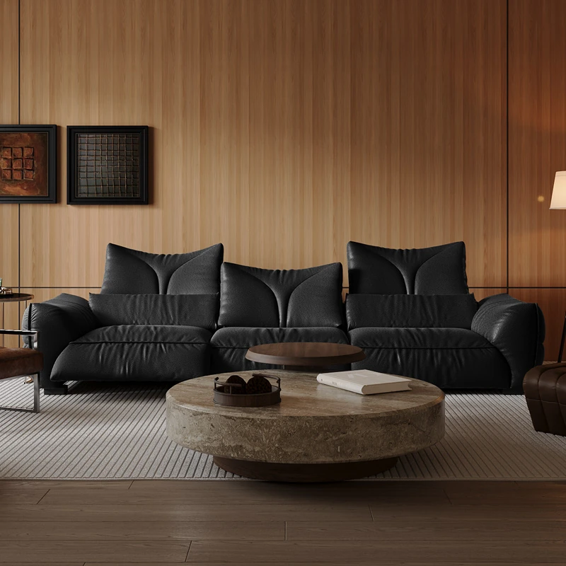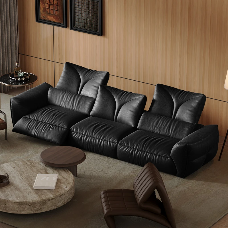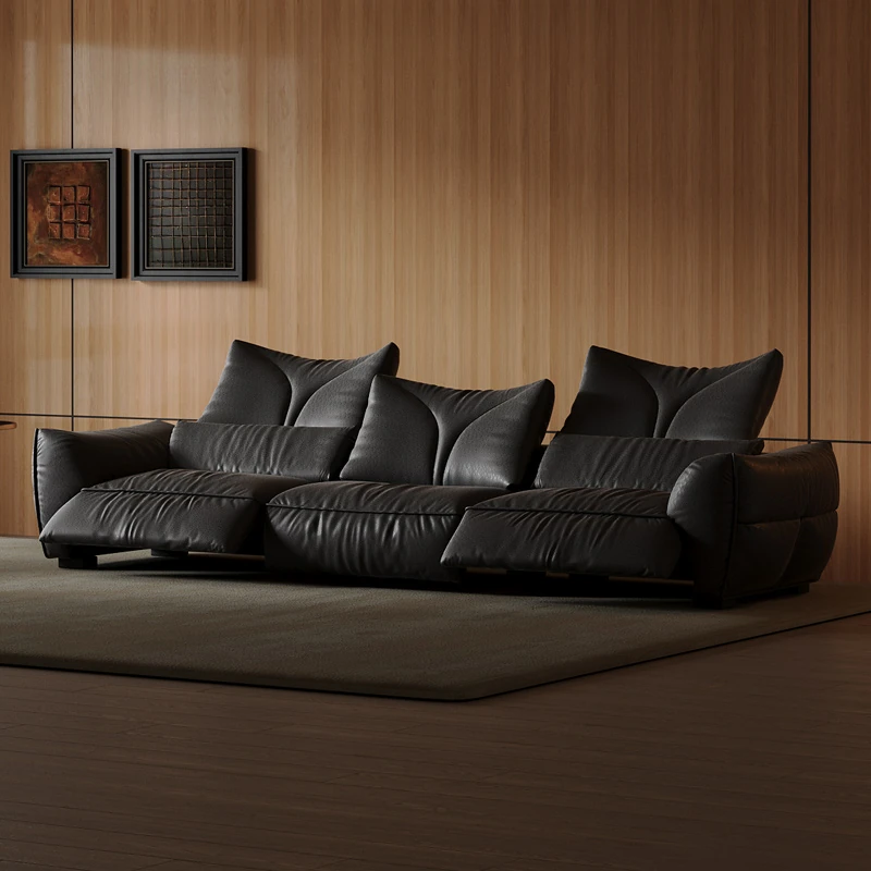 Vintage French-Style Leather Sofa for Small Spaces - Adjustable Electric Recliner in Genuine Top-Grain Black Leather, Perfect for Modern Living Rooms