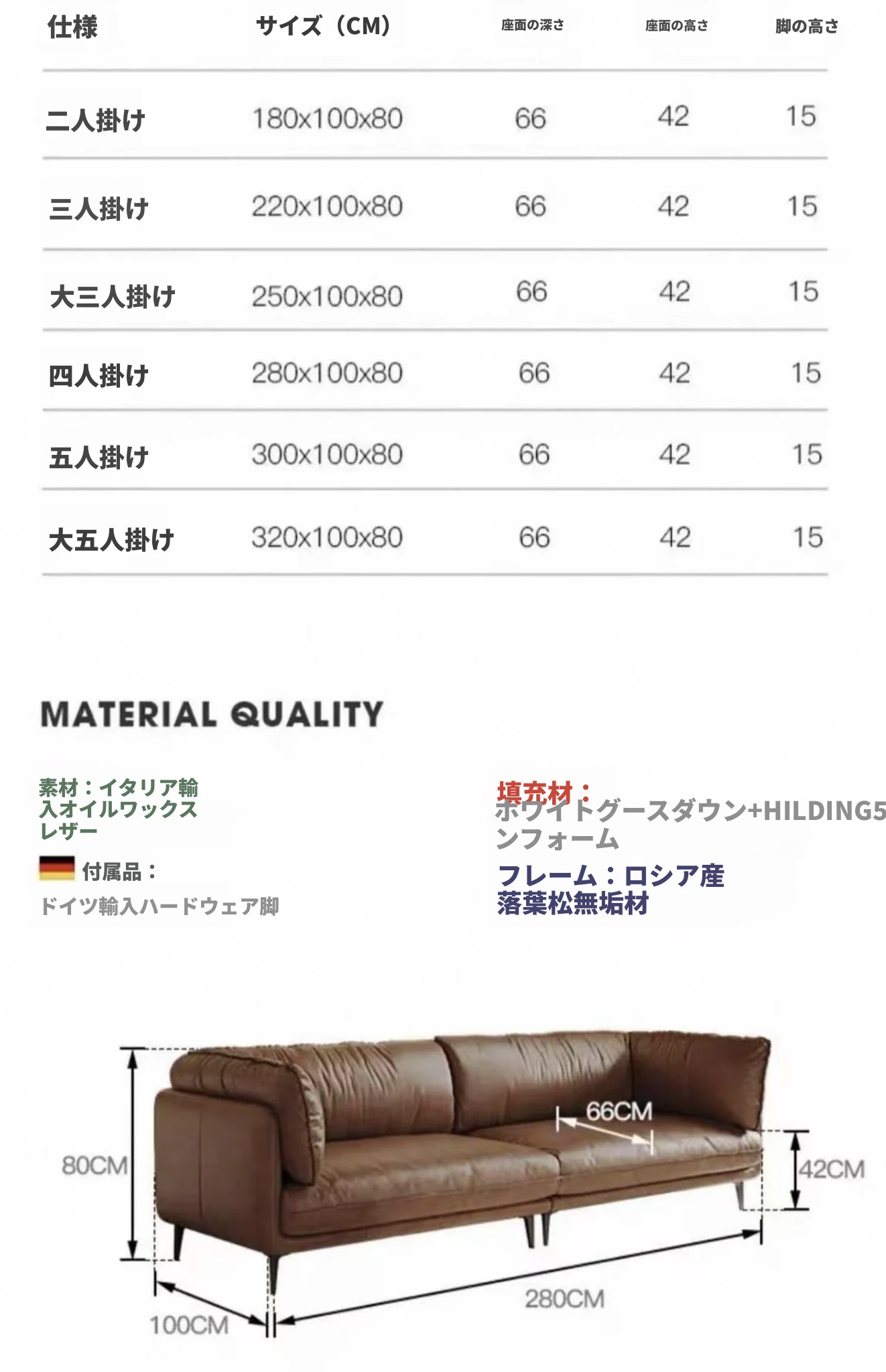 4人用 2.8メートル【全真皮】/輸出版品質/S+級 レザー