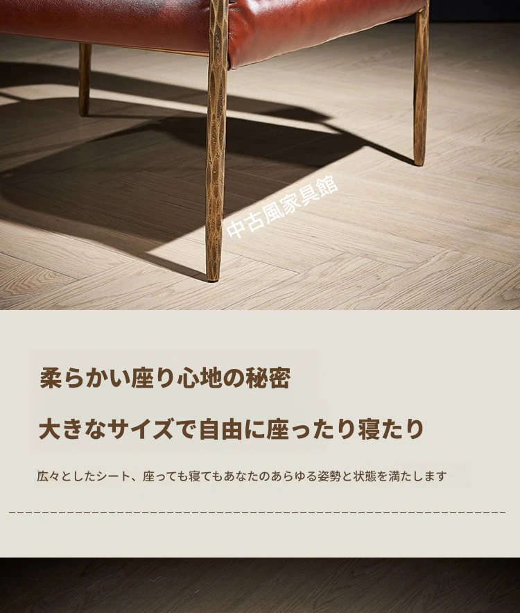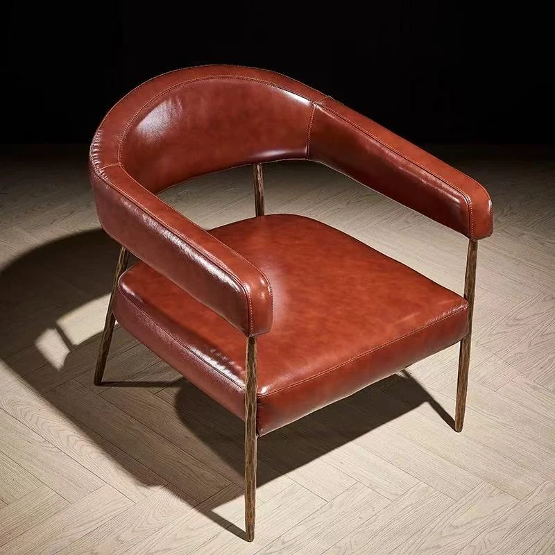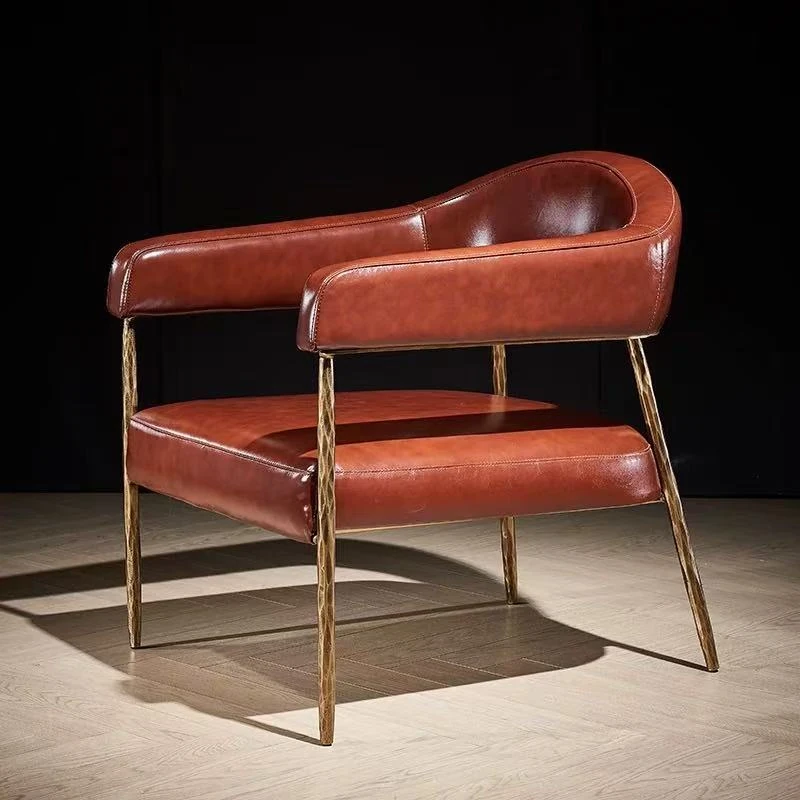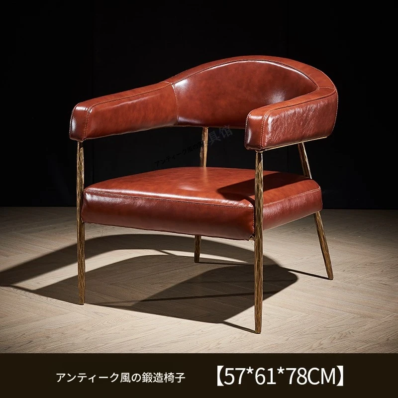 中古風アイアン一人掛け椅子 - リビングやバルコニーに最適なフレンチスタイルの高級シガーバーソファ椅子。デザイナーによる金属アームレスト付きで、洗練された雰囲気を演出します。おしゃれで快適な空間を演出するアイテムです!