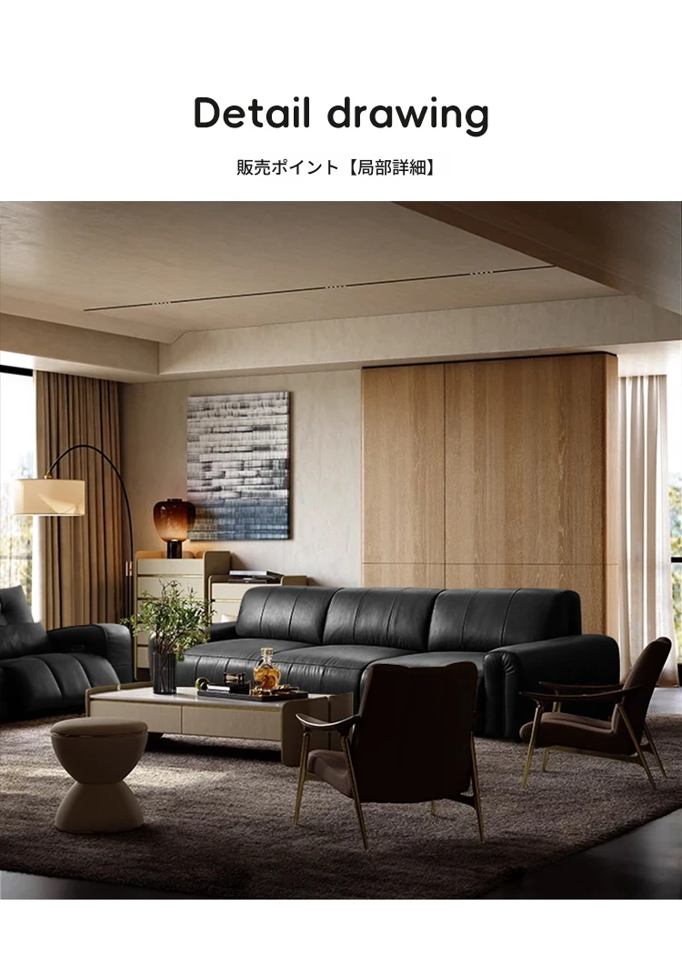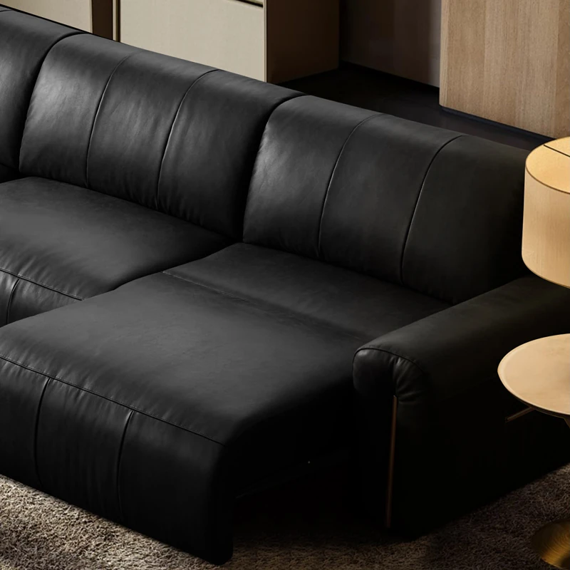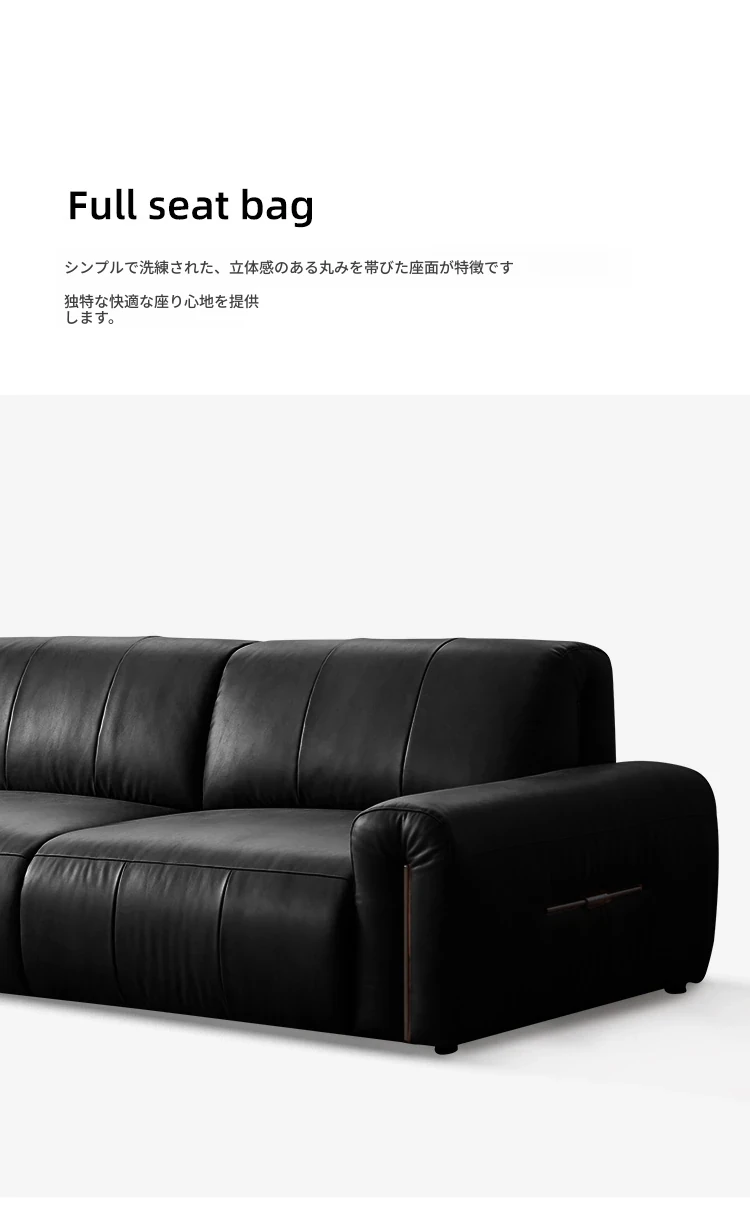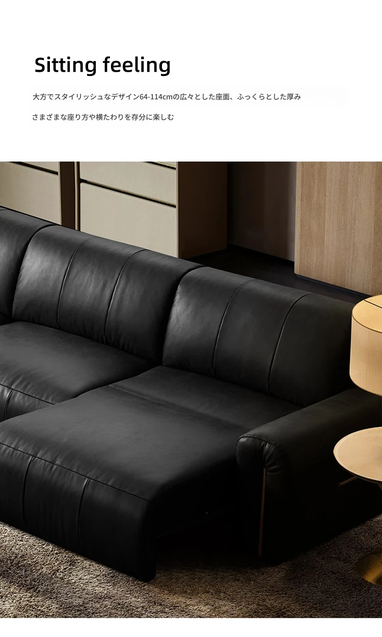 機能的な真皮ソファ 小型スペース向け 電動調整可能なフレンチヴィンテージスタイル 高級牛革 ブラックレザーソファで、快適さとスタイルを両立!